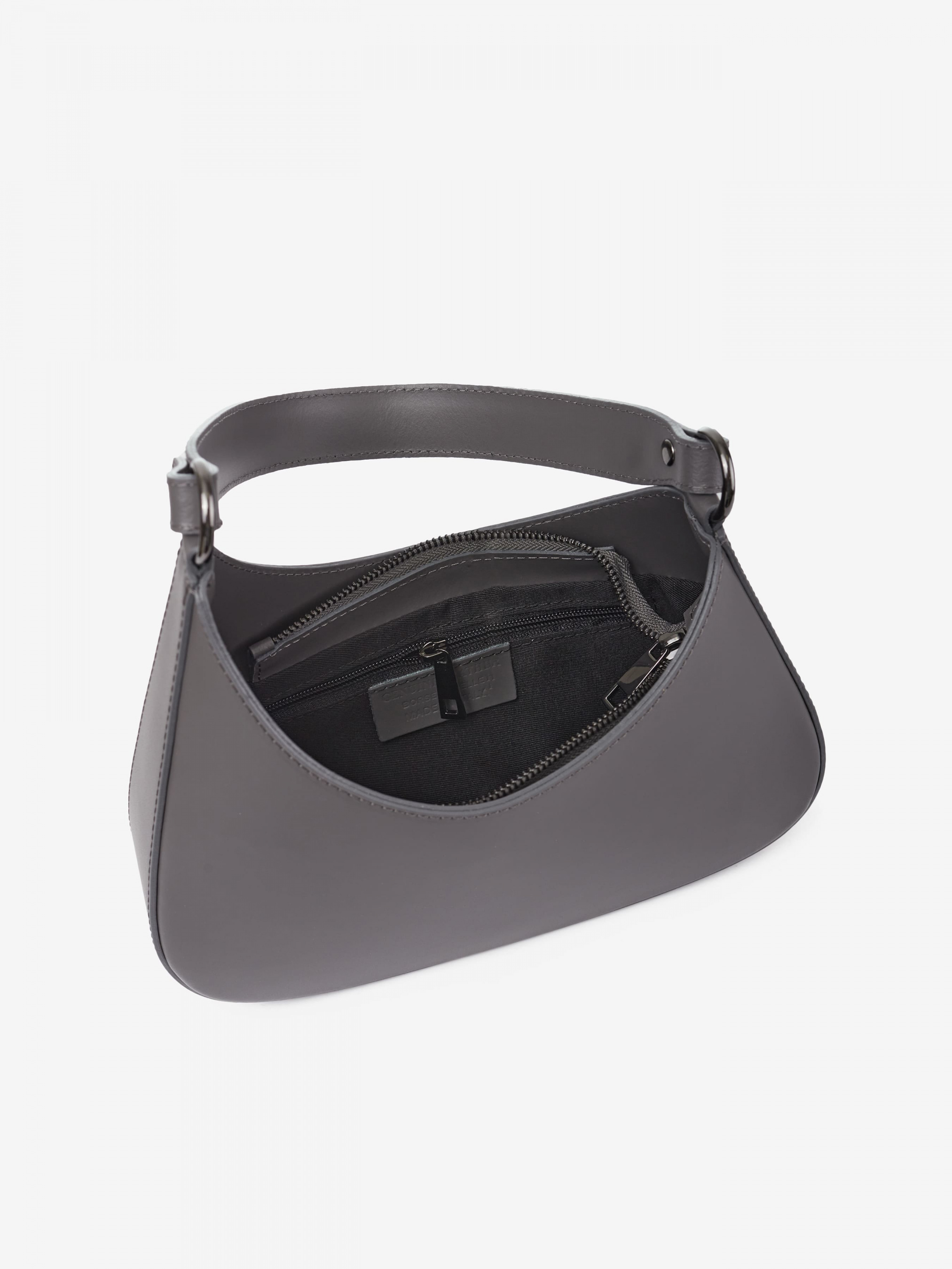 Детали: Материал: 100% натуральная кожа Кожа гладкая Фурнитура черного цвета Размеры (Ш x В x Г) - 28 x 14 x 7 см Внутри 1 отделение и 1 карманчик для мелочей на молнии Подкладка: 100% хлопок Застежка: молния Ремешок съемный на карабинах не регулируется, длина 120 см Высота ручки 26 см