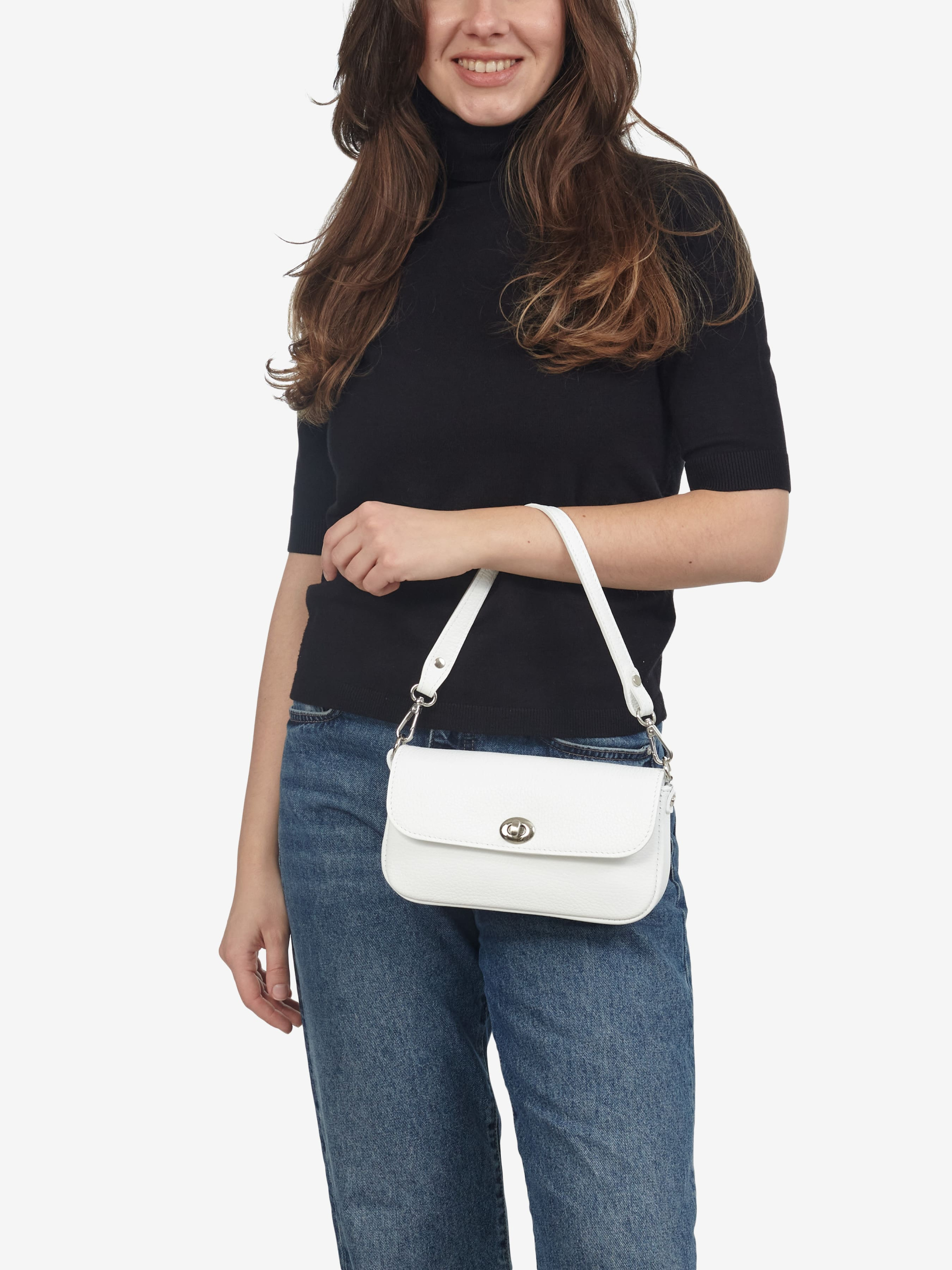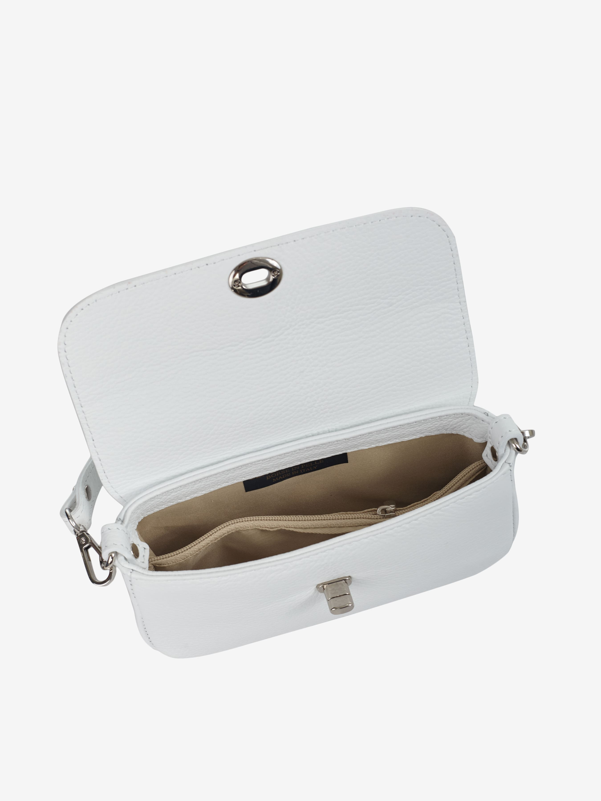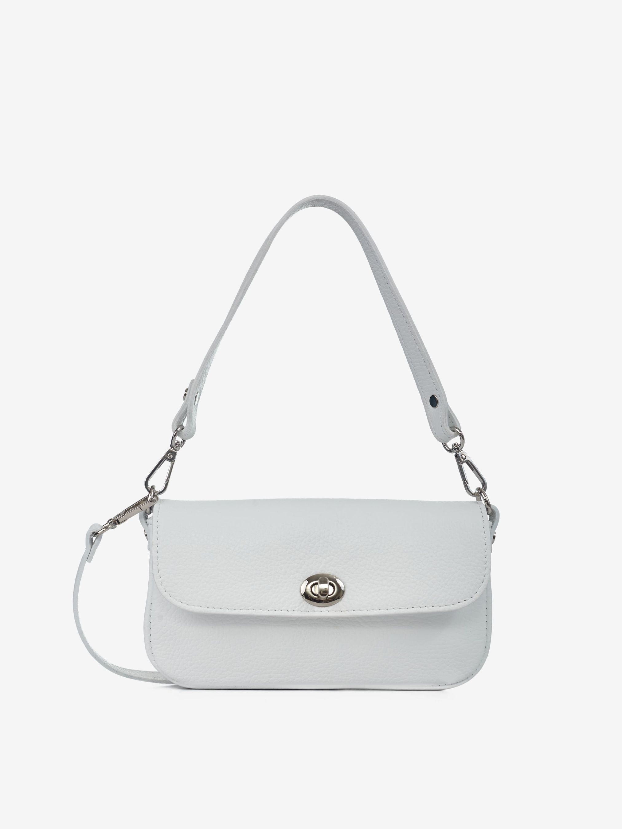 Детали: Материал: 100% натуральная кожа флотар Фурнитура серебристого цвета Размеры (Ш x В x Г) - 21 x 11 x 5 см Внутри 2 отделения, разделены карманом на молнии Подкладка: 100% хлопок Застежка: клапан на поворотном замке Ремешок кожаный, регулируется, съемный, максимальная длина 120 см Ручка съемная, высота 20 см