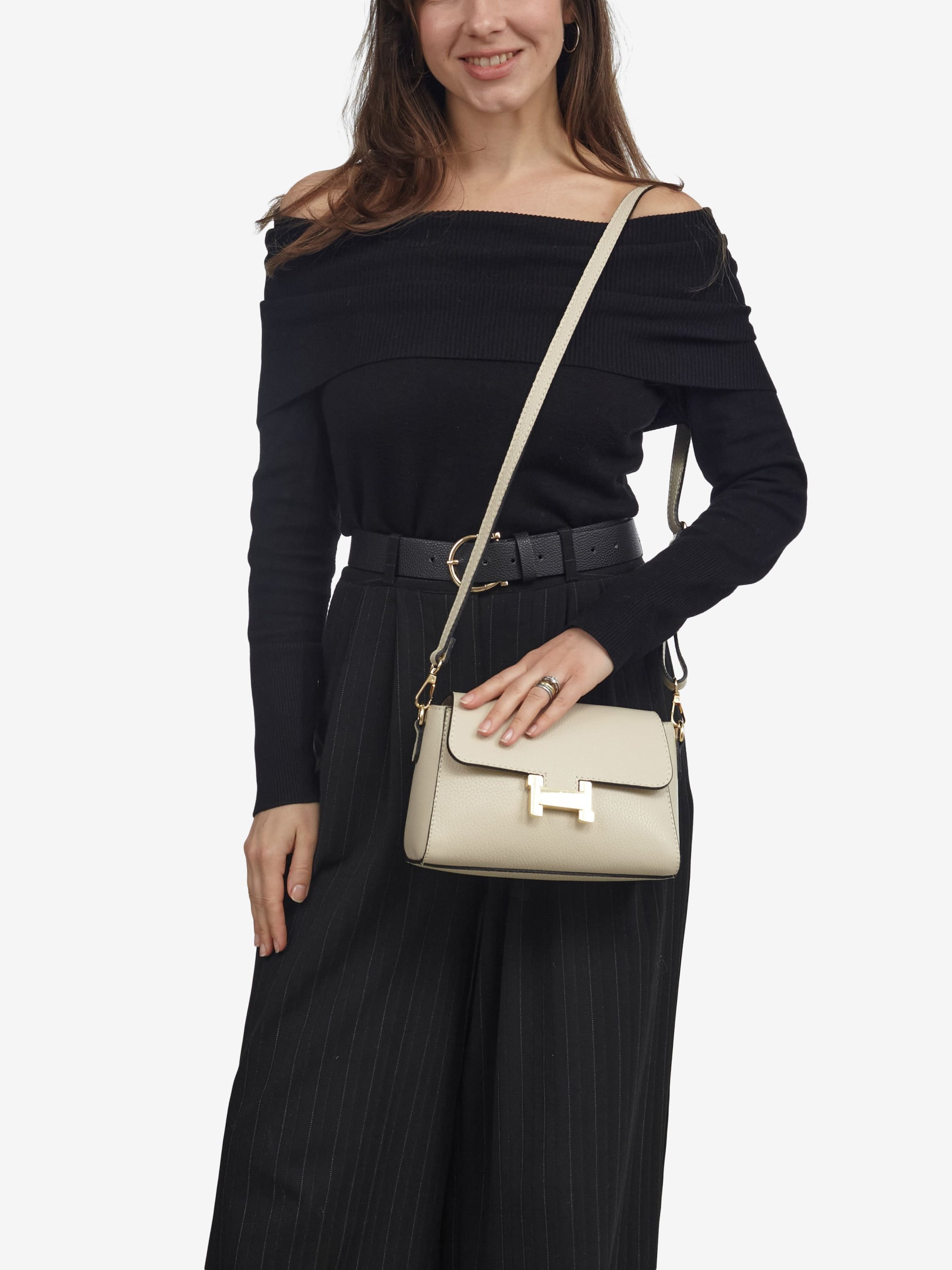 Детали: Материал: 100% натуральная кожа флотар Фурнитура золотистого цвета Размеры (Ш x В x Г) - 22 х 14 х 9 см Внутри 1 отделение и карманчик на молнии Подкладка: хлопок Застежка: молния, клапан на магните Ремешок кожаный, регулируется, съемный, максимальная длина 120 см