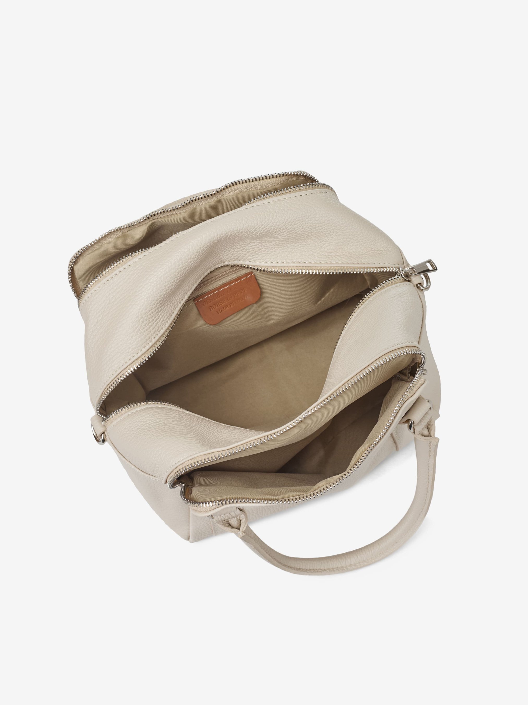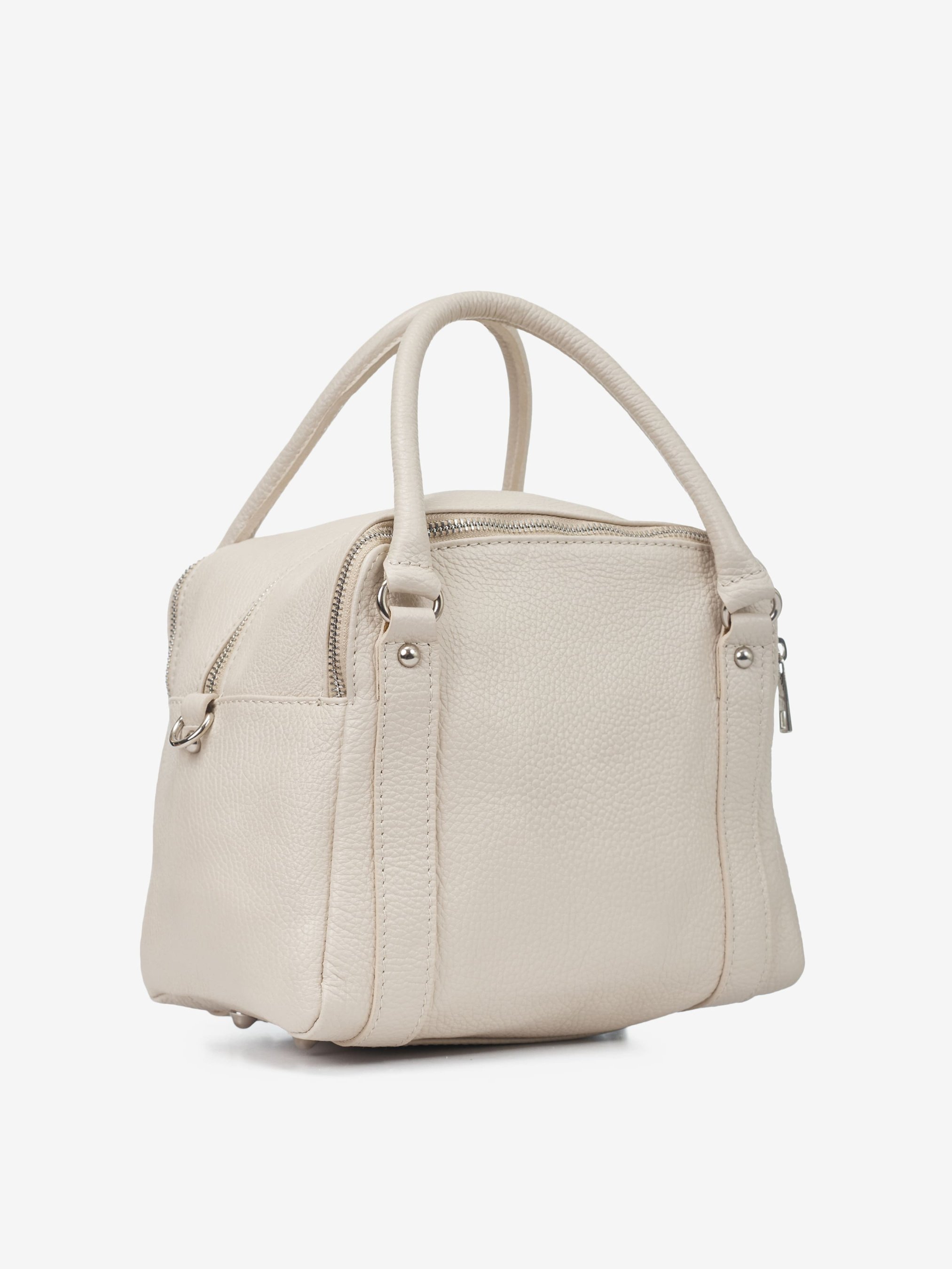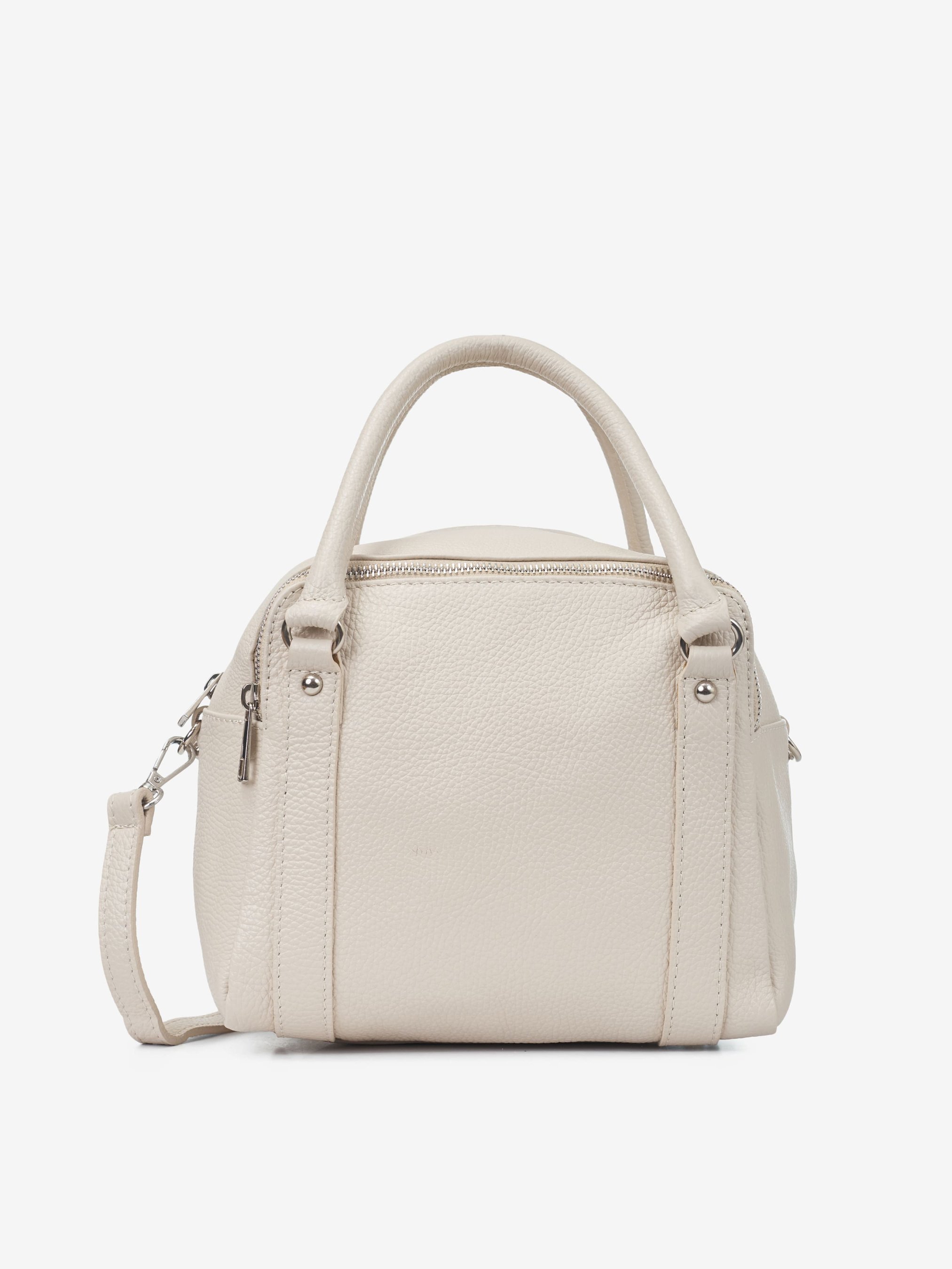 Детали: Материал: 100% натуральная кожа Кожа имеет фактуру флотар Фурнитура серебристого цвета Размеры (Ш x В x Г) - 25 x 20 x 16 см Внутри 3 раздельных отделения и 1 карманчик для мелочей на молнии Подкладка: 100% хлопок Застежка: молния В комплекте ремешок для ношения на плече