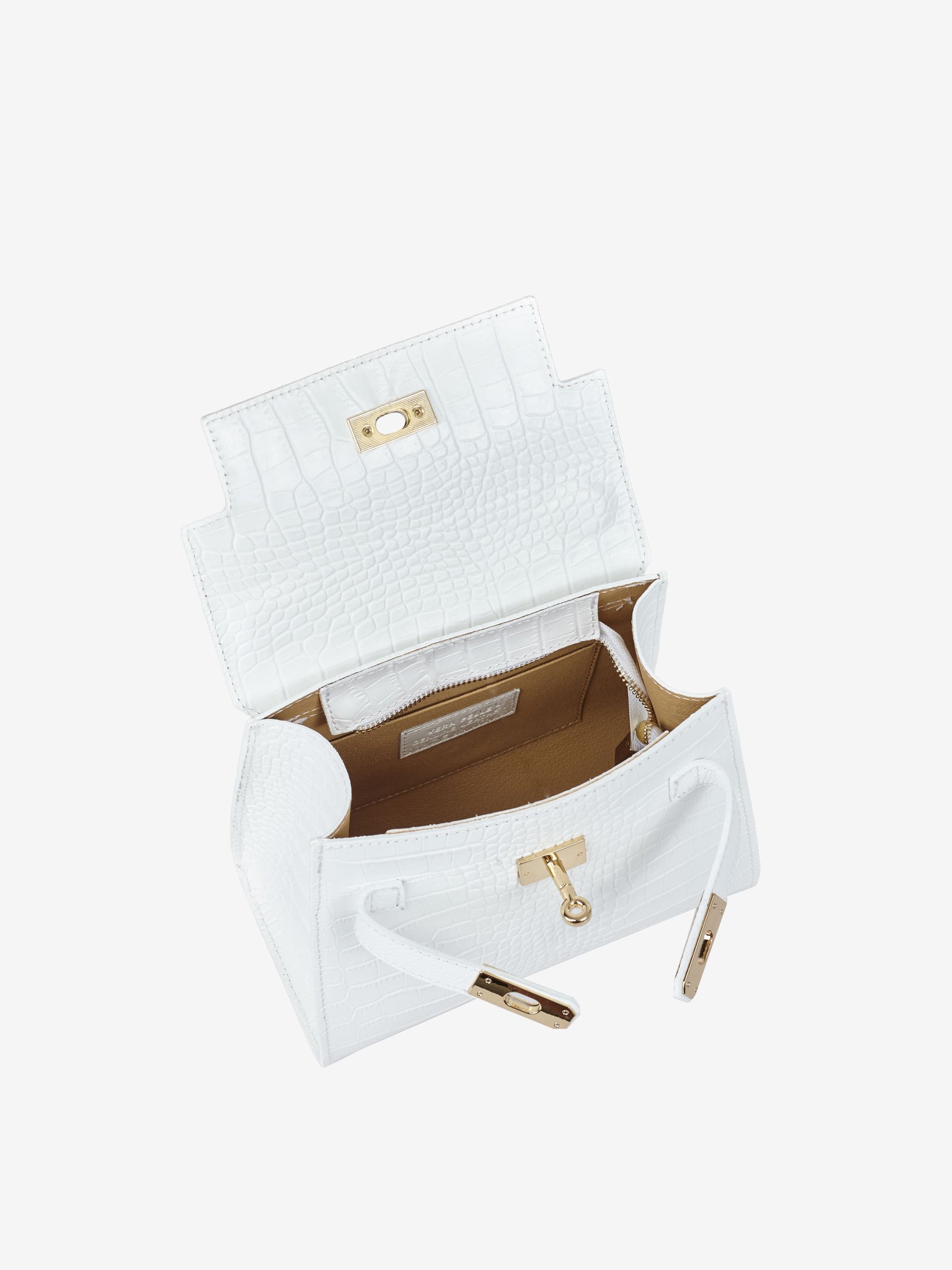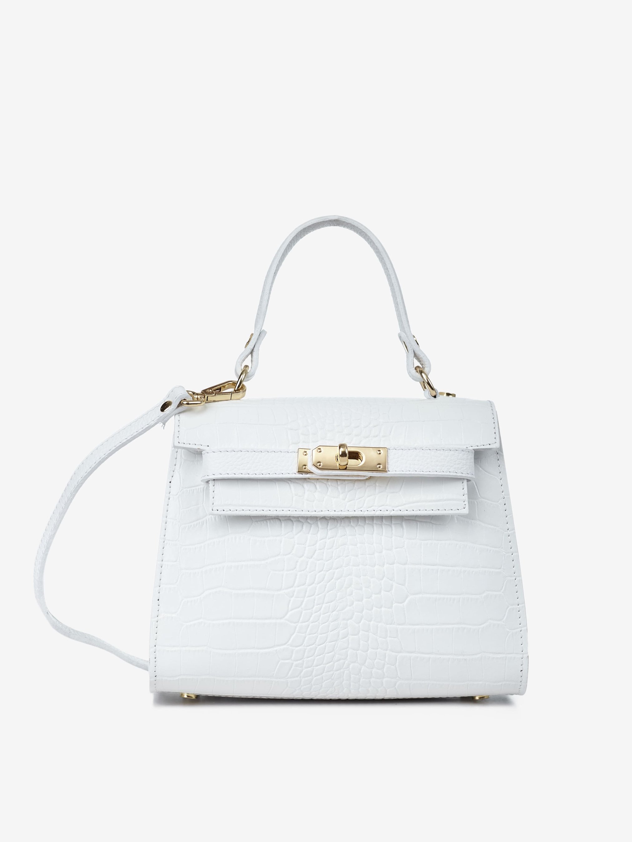 Детали: Материал: 100% натуральная кожа с тиснением Крокодил Фурнитура золотистого цвета Размеры (Ш x В x Г) - 22 x 18 x 12 см Внутри 1 отделение и карманчик без застежки Подкладка: отсутствует Застежка: клапан на поворотном замке Ремешок кожаный, регулируется, съемный, максимальная длина 120 см Высота ручки 12 см