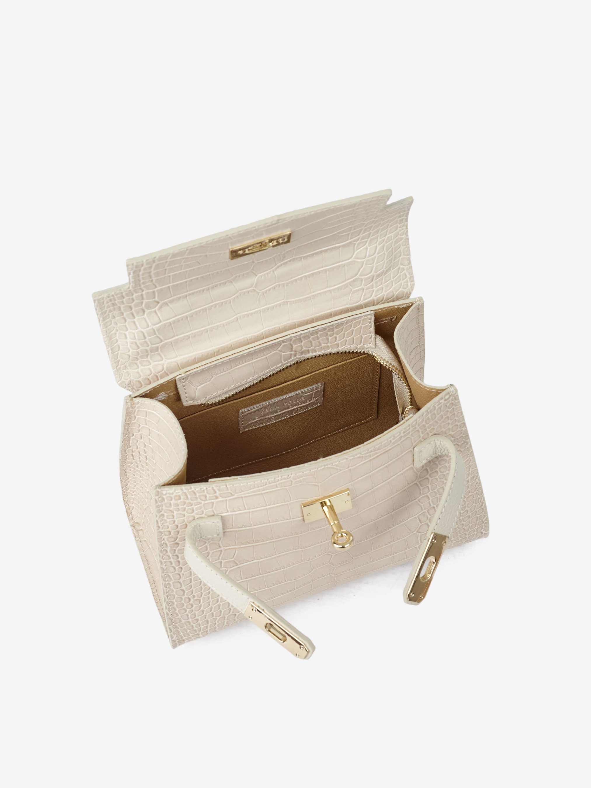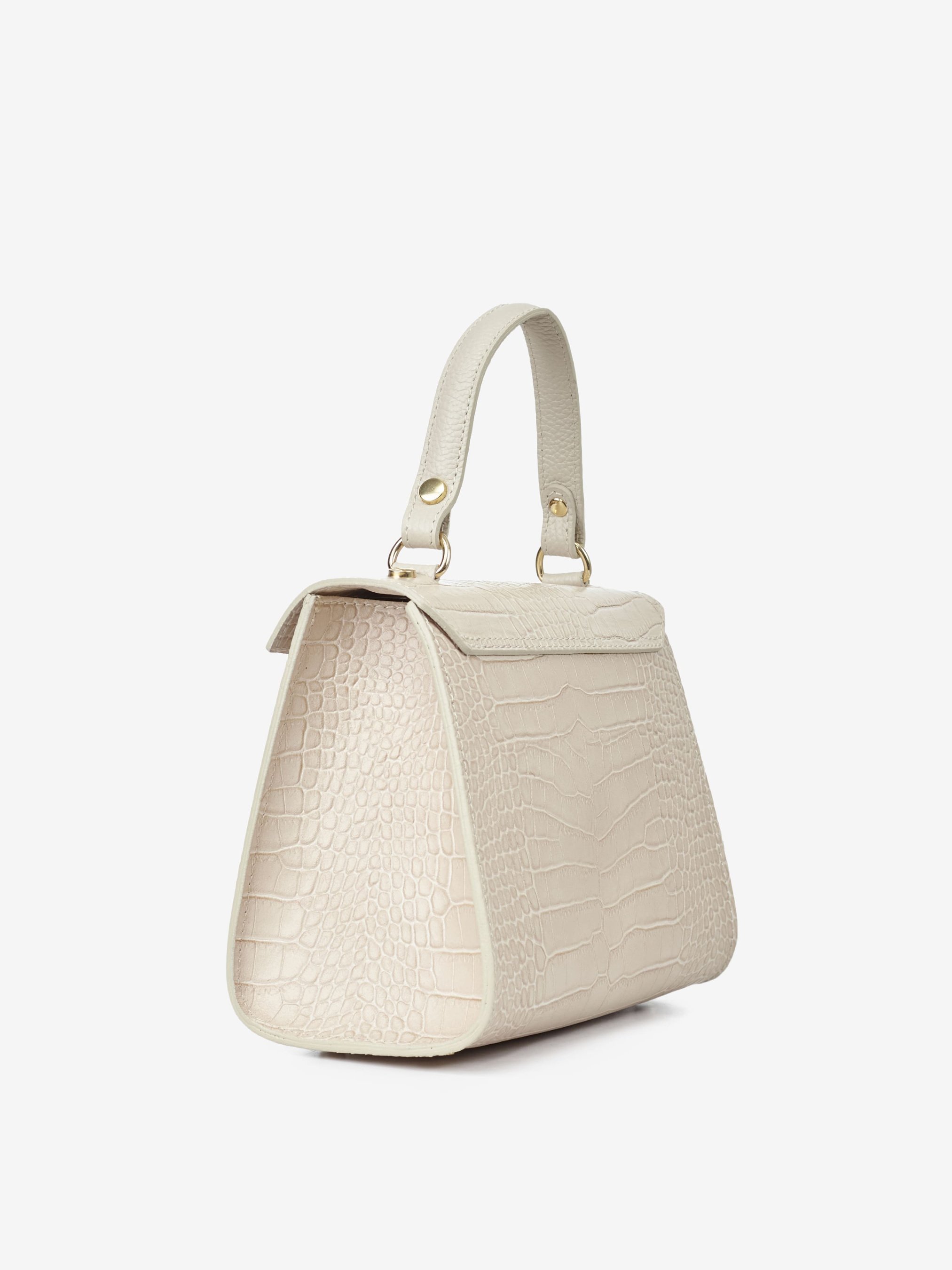 Детали: Материал: 100% натуральная кожа с тиснением Крокодил Фурнитура золотистого цвета Размеры (Ш x В x Г) - 22 x 18 x 12 см Внутри 1 отделение и карманчик без застежки Подкладка: отсутствует Застежка: клапан на поворотном замке Ремешок кожаный, регулируется, съемный, максимальная длина 120 см Высота ручки 12 см