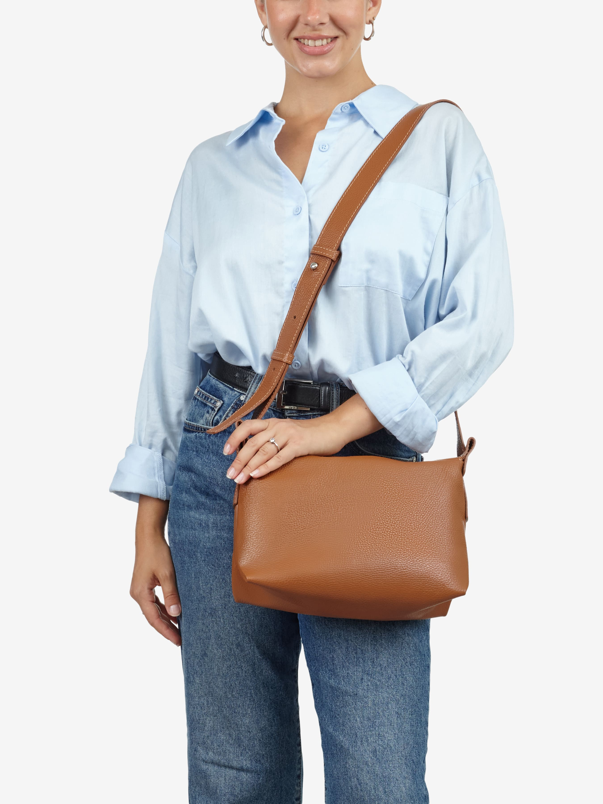 Детали: Материал: 100% натуральная кожа флотар Фурнитура серебристого цвета Размеры (Ш x В x Г) - 28 х 18 х 12 см Внутри 1 отделение и карманчик для мелочей на молнии Подкладка: хлопок Застежка: молния Ремешок кожаный, несъемный, регулируется, максимальная длина 110 см