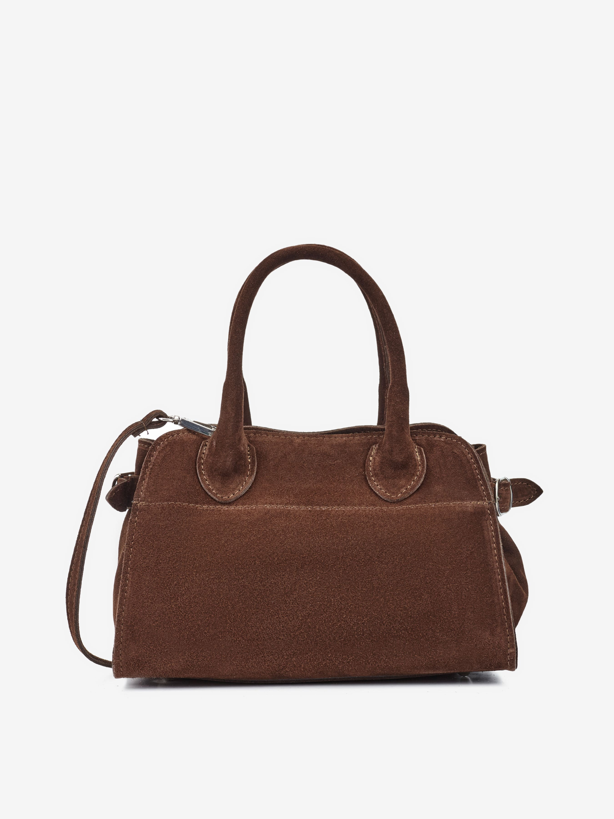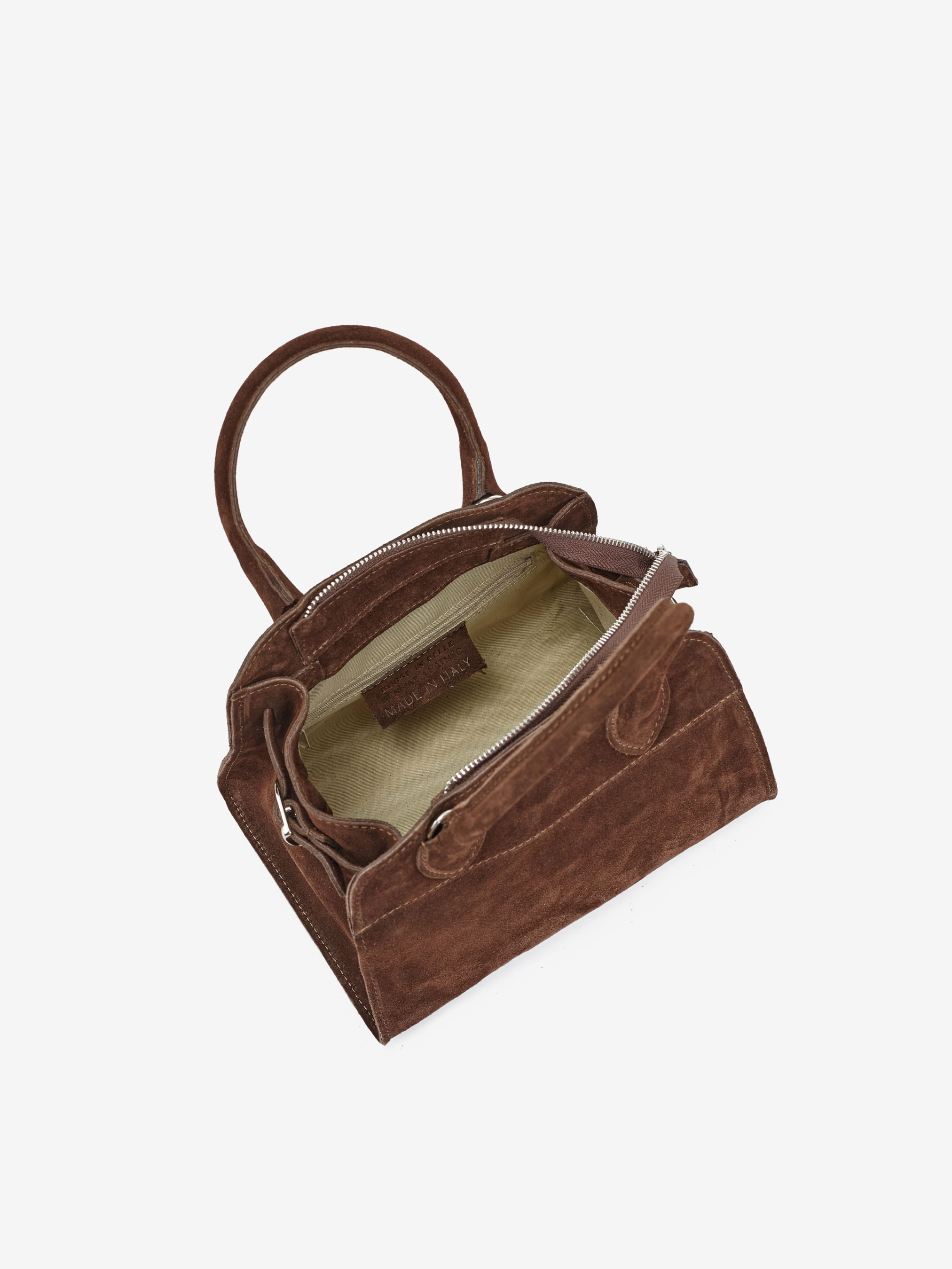 Детали: Материал: 100% натуральная замша Фурнитура серебристого цвета Размеры (Ш x В x Г) - 24 x 20 x 17 см Внутри 1 отделение и 1 карманчик для мелочей на молнии Подкладка: хлопок Застежка: молния Ремешок замшевый, съемный, регулируется, максимальная длина 125 см Высота ручек 13 см