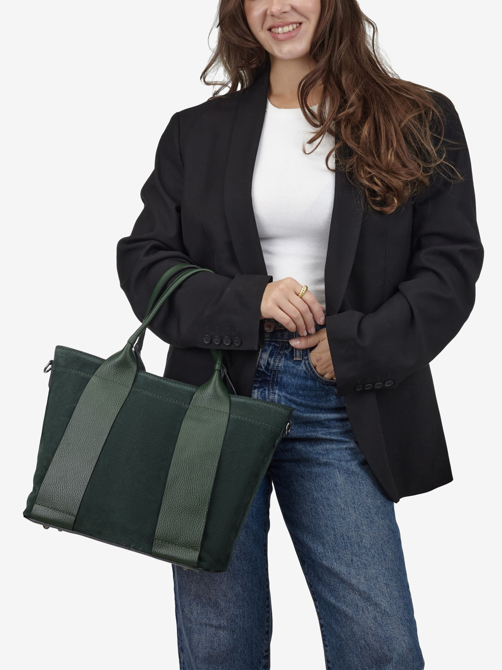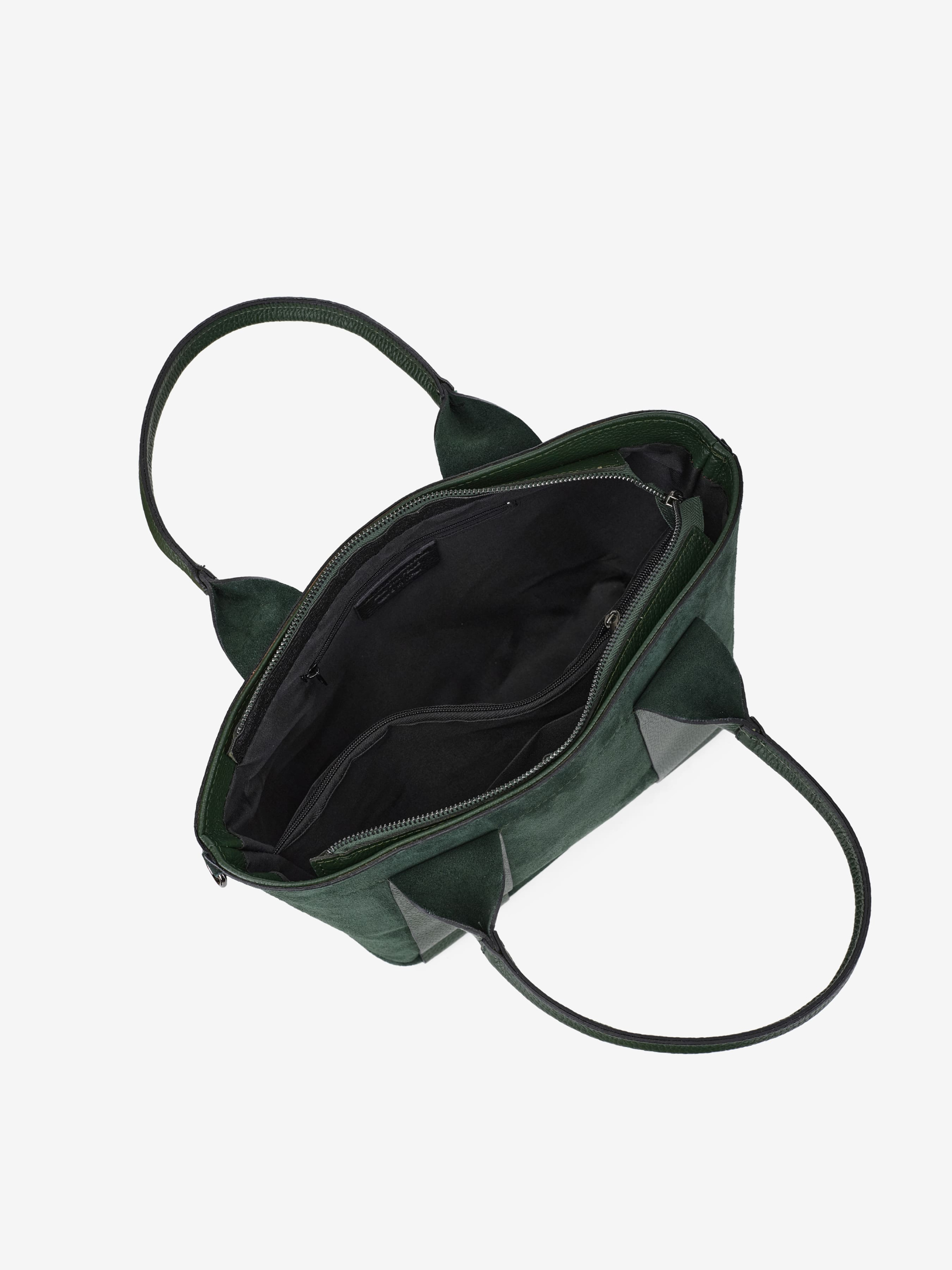 Детали: Материал: 100% натуральная замша и кожа флотар Фурнитура черного цвета Размеры (Ш x В x Г) - 35 x 27 x 13 см Внутри 2 отделения разделены карманом на молнии и 2 карманчика, один из них на молнии Подкладка: хлопок Застежка: молния Высота ручек 18 см Ремешок кожаный, съемный, регулируется, максимальная длина 120 см