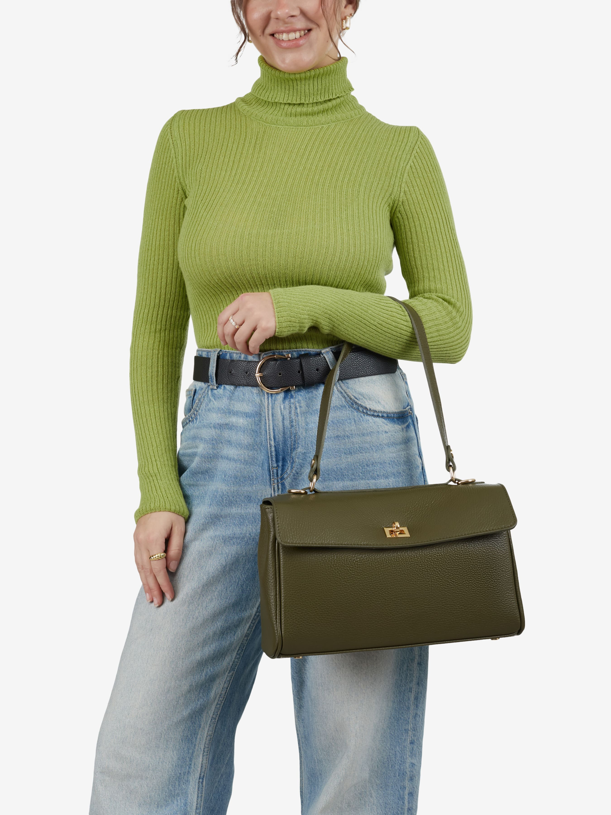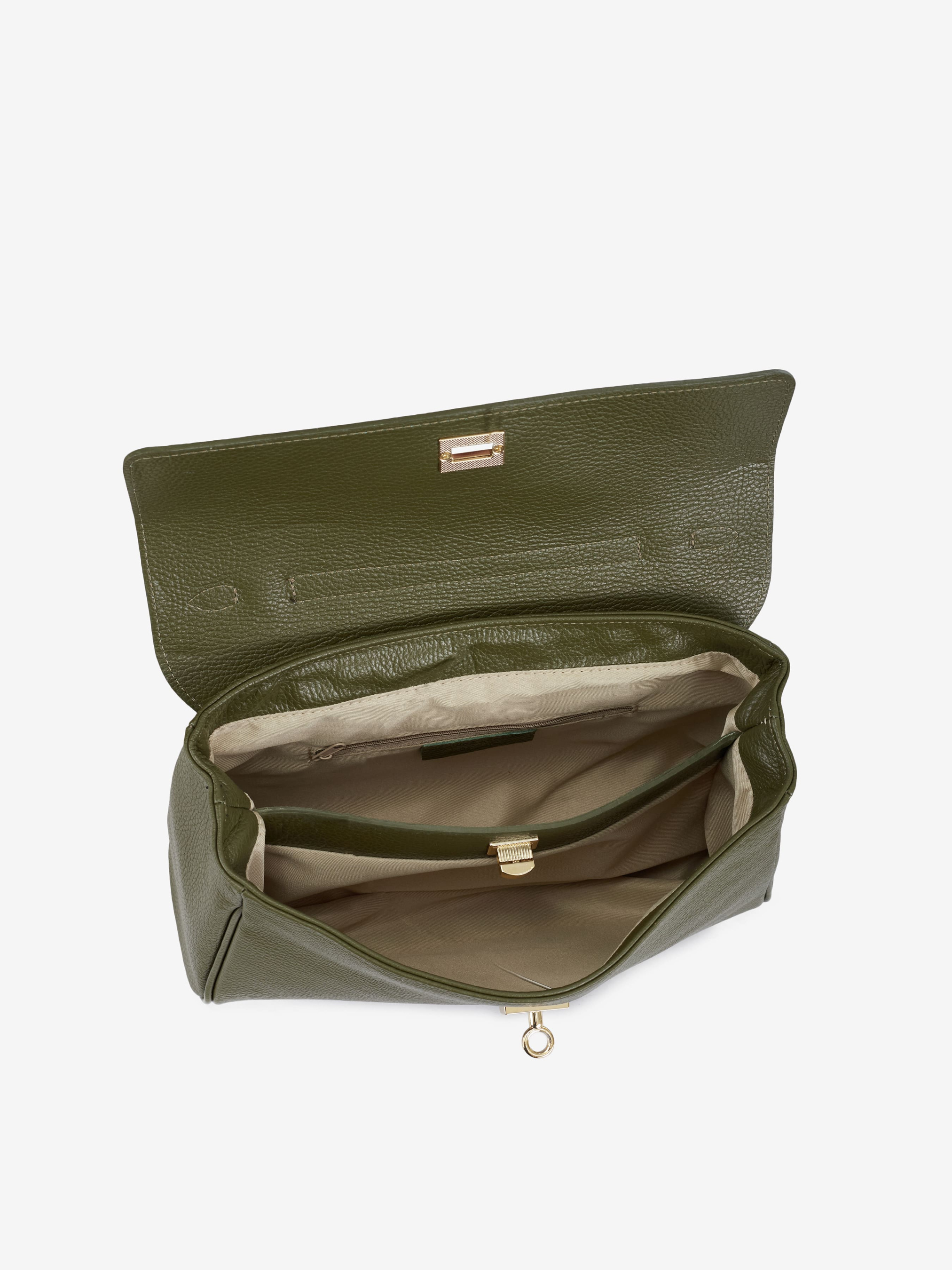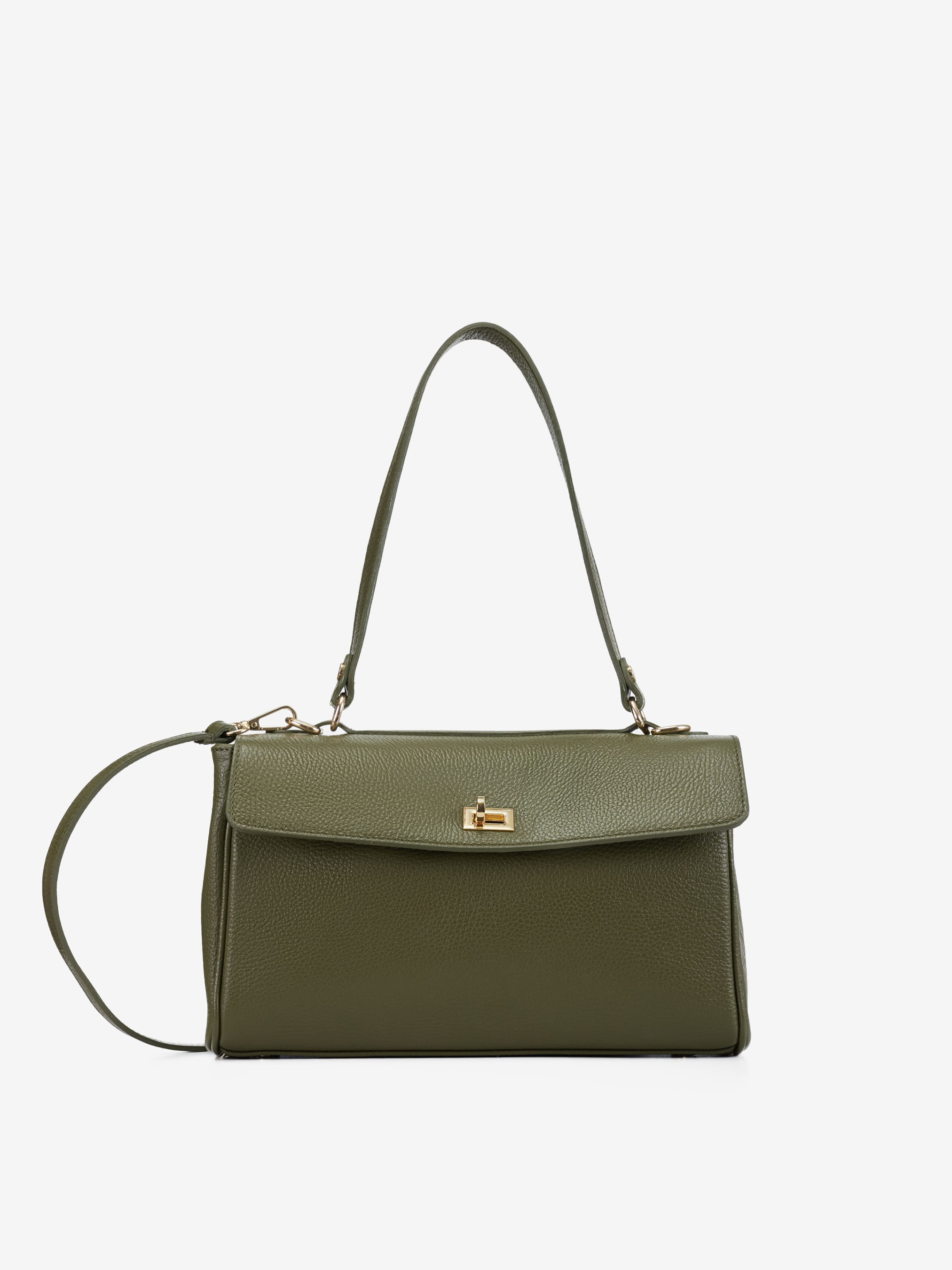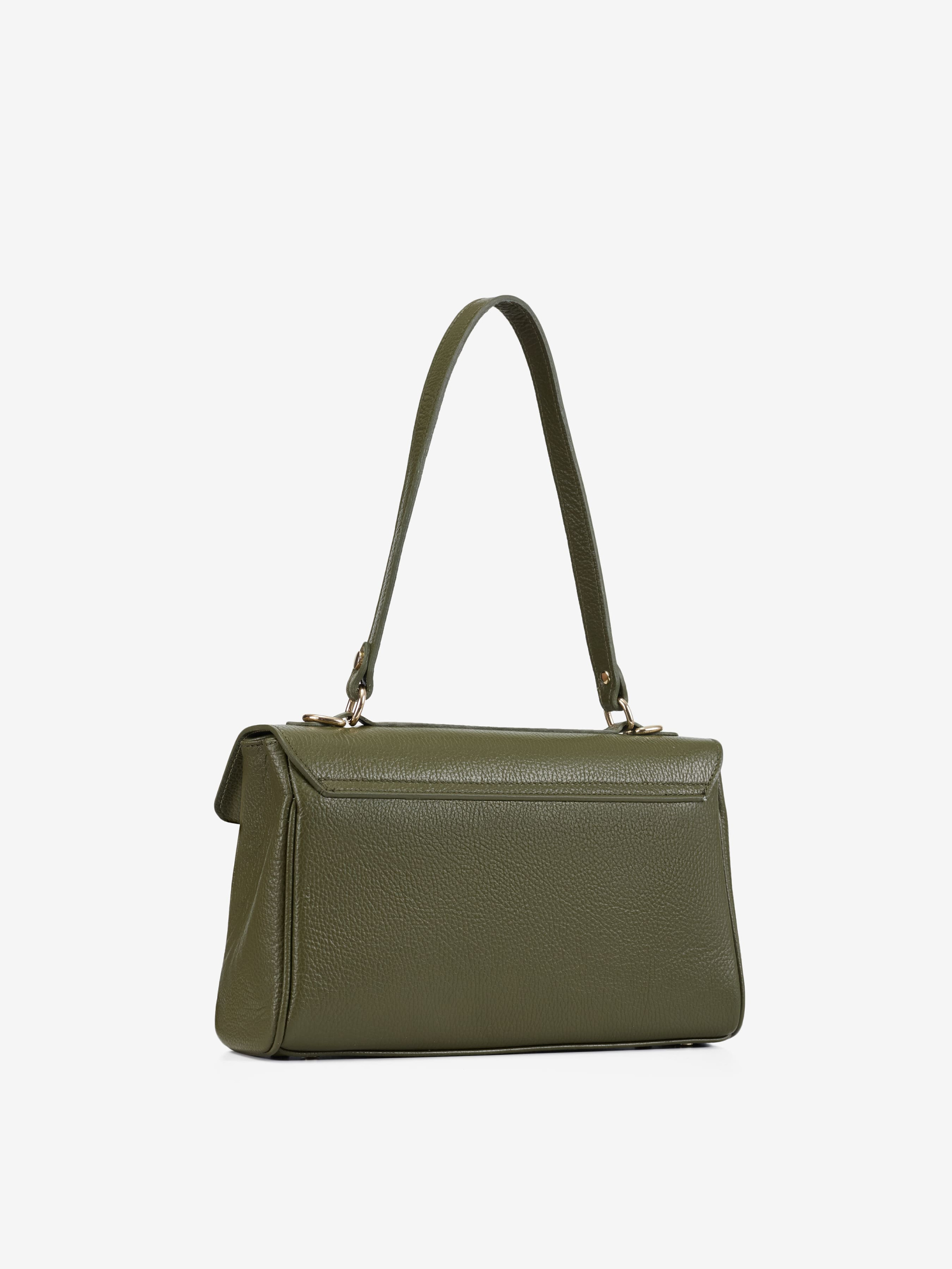 Детали: Материал: 100% натуральная кожа флотар Фурнитура золотистого цвета Размеры (Ш x В x Г) - 31 x 18 x 10 см Внутри 2 отделения и карманчик на молнии Застежка: клапан на поворотном замке Подкладка: хлопок Высота ручки 25 см Ремешок кожаный, съемный, регулируется, максимальная длина 115 см