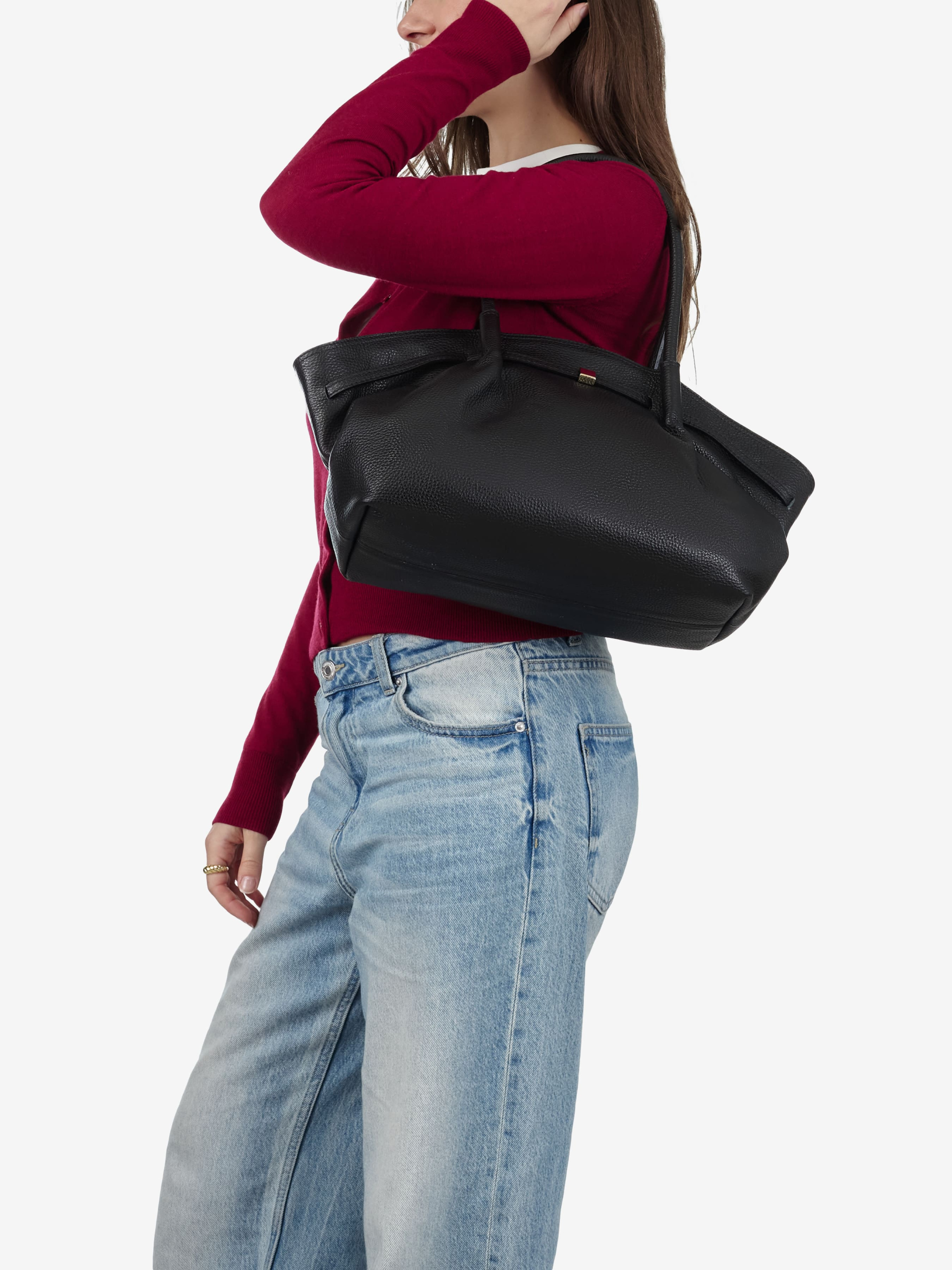 Детали: Материал: 100% натуральная кожа флотар Фурнитура золотистого цвета Размеры (Ш x В x Г) - 38 x 23 x 14 см Внутри 1 отделение и карманчик на молнии Подкладка: хлопок Застежка: молния Высота ручек 18 см Ремешок кожаный, съемный, регулируется, максимальная длина 100 см