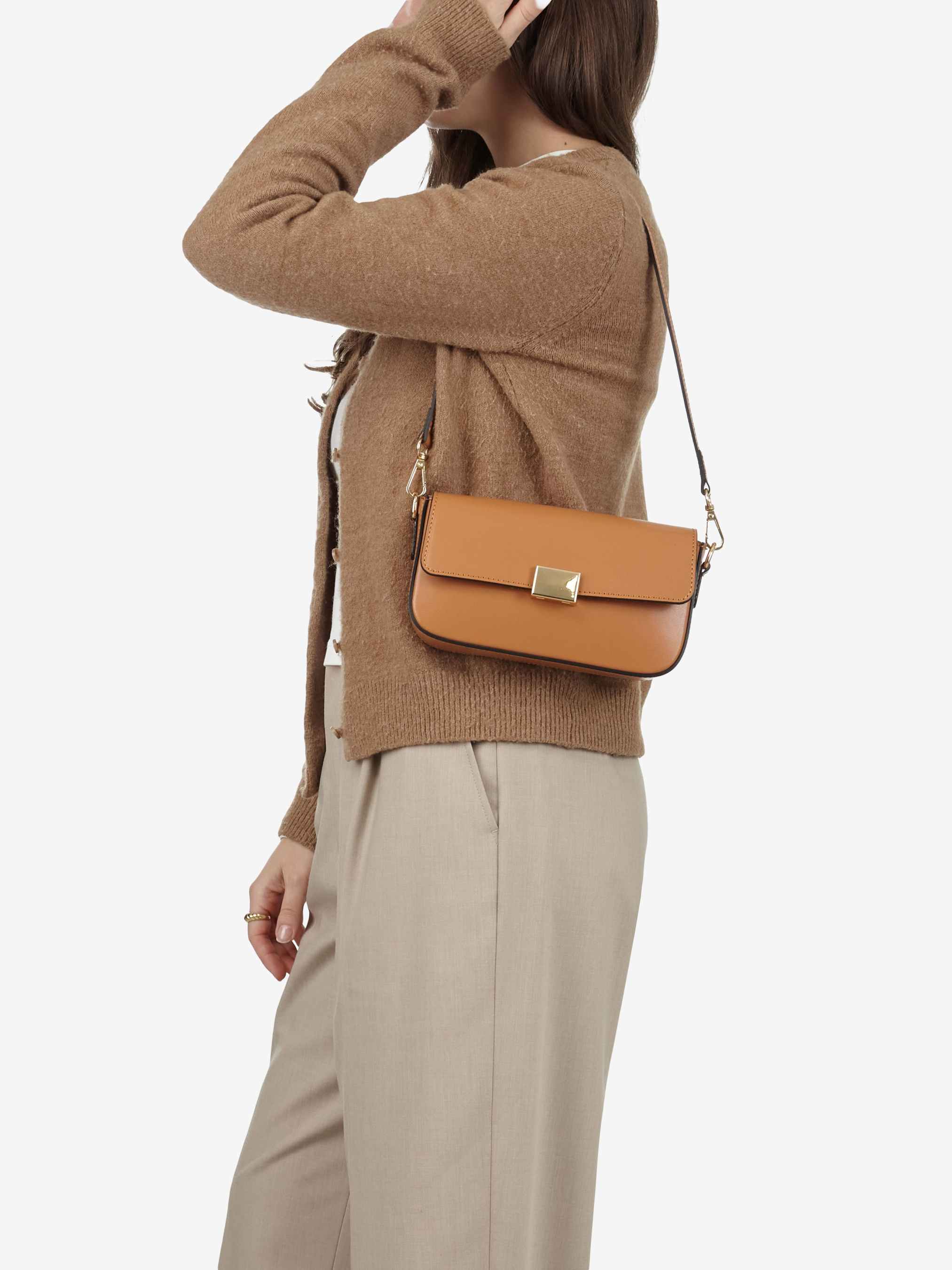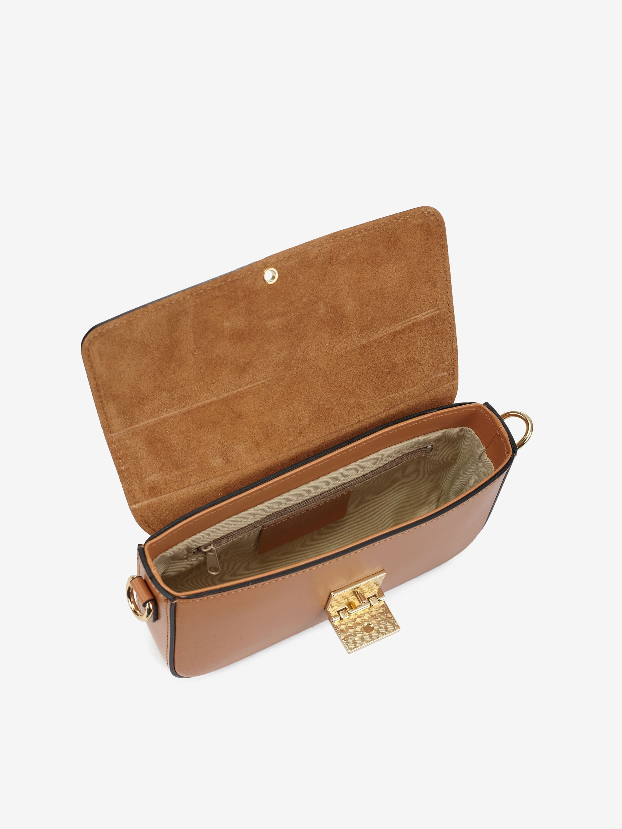 Детали: Материал: 100% натуральная кожа флотар Фурнитура золотистого цвета Размеры (Ш x В x Г) - 22 x 12 x 5 см Внутри 1 отделение и карманчик на молнии Подкладка: хлопок Застежка: клапан на откидном замке Ручка съемная, высота ручки 28 см Ремешок кожаный, съемный, регулируется, максимальная длина 110 см