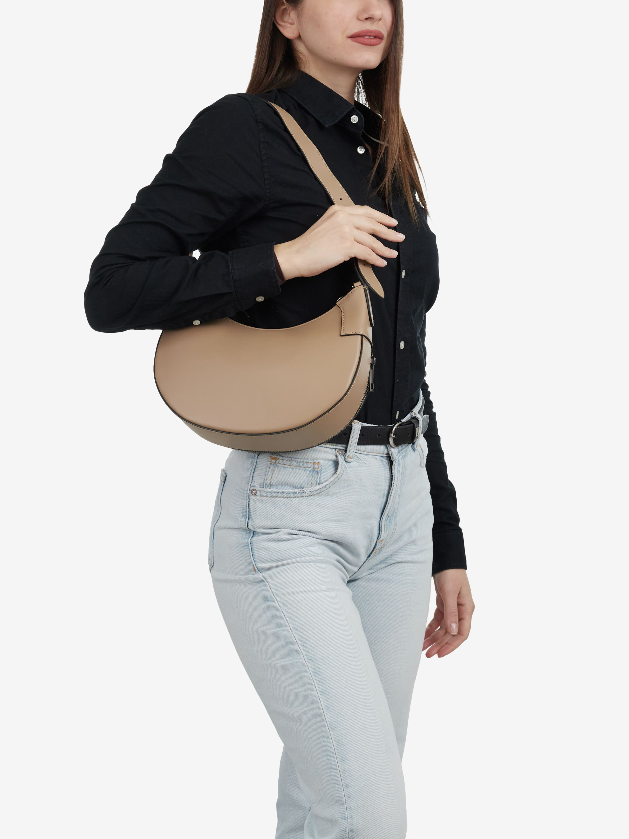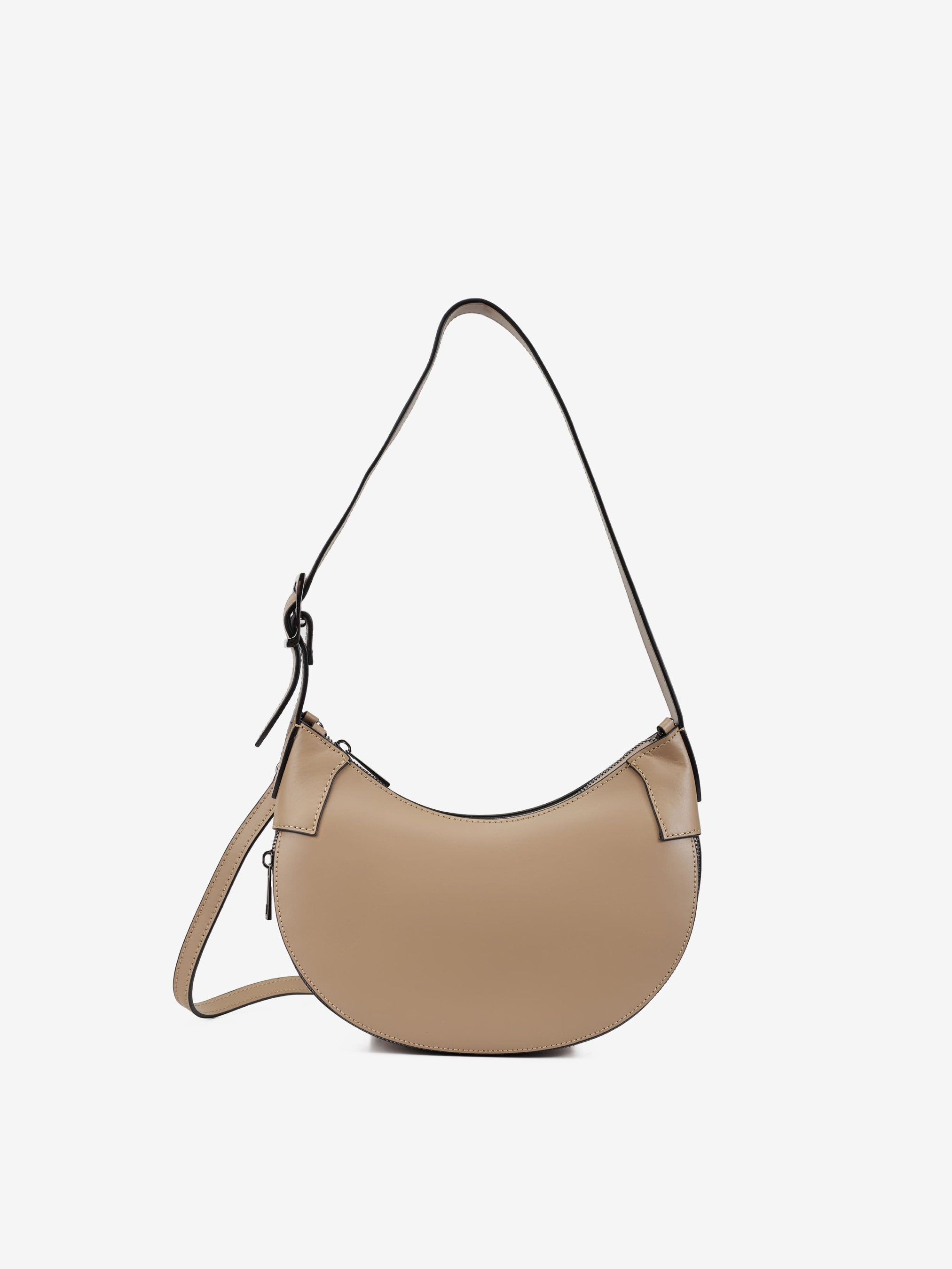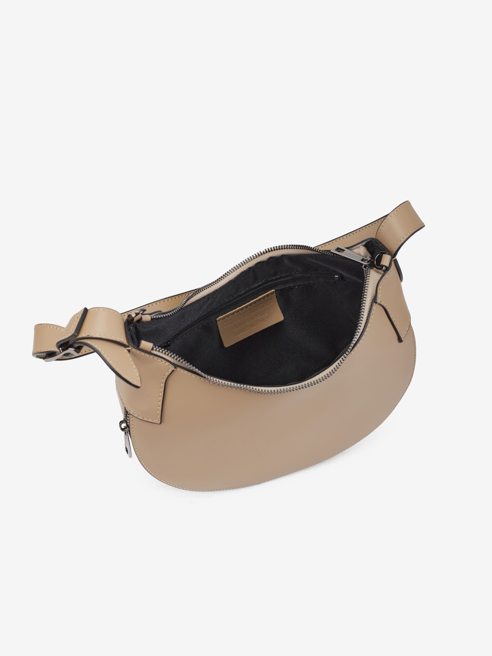 Детали: Материал: 100% натуральная гладкая кожа Фурнитура черного цвета Размеры (Ш x В x Г) - 17 x 15 x 9 см Внутри 1 отделение и карманчик на молнии Подкладка: хлопок Застежка: молния Высота ручки 32 см Ремешок кожаный, съемный, регулируется, максимальная длина 125 см