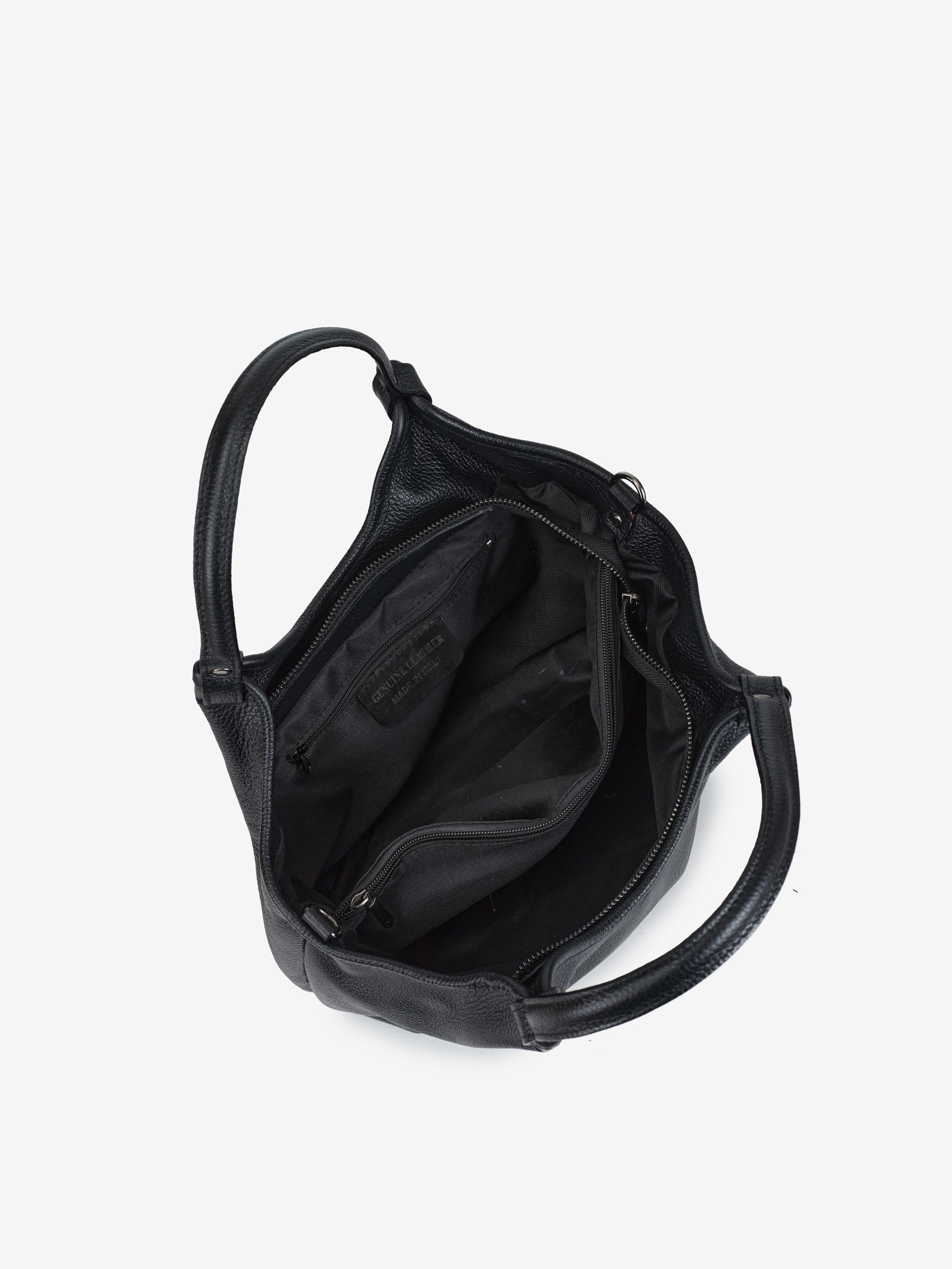 Детали: Материал: 100% натуральная кожа флотар Фурнитура черного цвета Размеры (Ш x В x Г) - 33 x 21 x 10 см Внутри 2 отделения разделены карманом на молнии и 1 карманчик на молнии Подкладка: хлопок Застежка: молния Высота ручек 20 см Ремешок кожаный, съемный, регулируется, максимальная длина 110 см