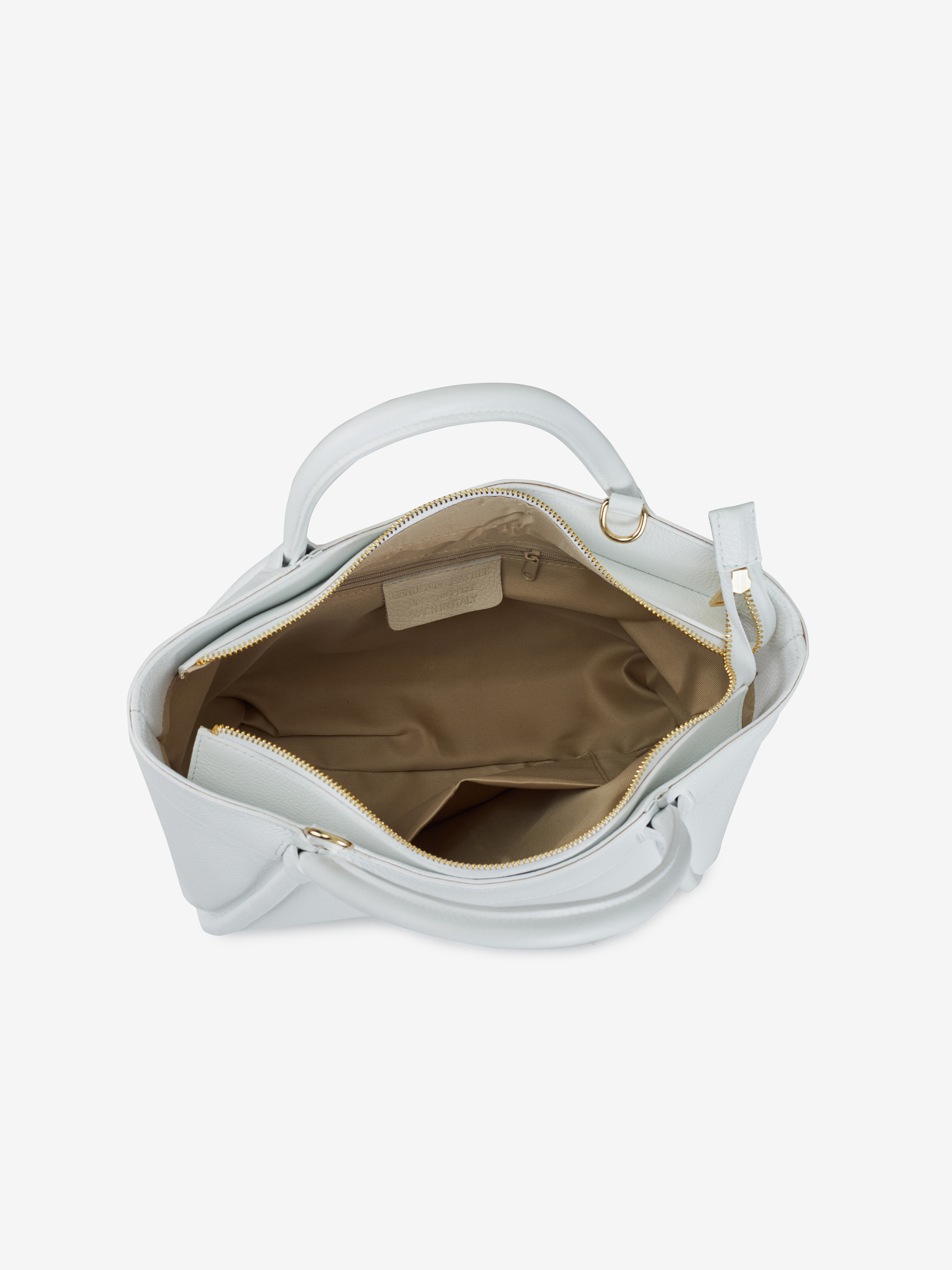 Детали: Материал: 100% натуральная кожа флотар Фурнитура золотистого цвета Размеры (Ш x В x Г) - 35 x 22 x 12 см Внутри 1 отделение и 1 карманчик на молнии Подкладка: хлопок Застежка: молния Высота ручек 14 см Ремешок кожаный, съемный, регулируется, максимальная длина 120 см