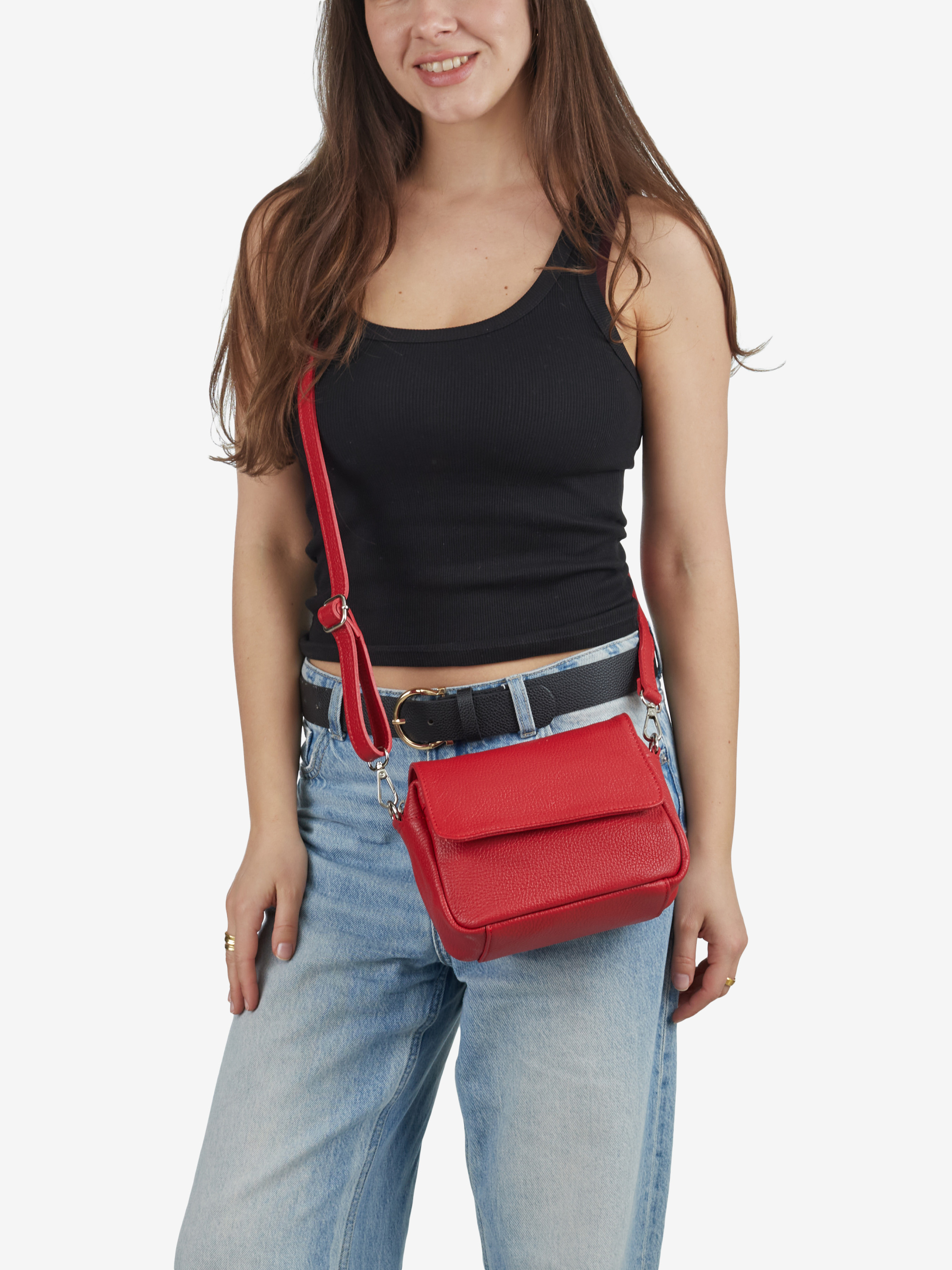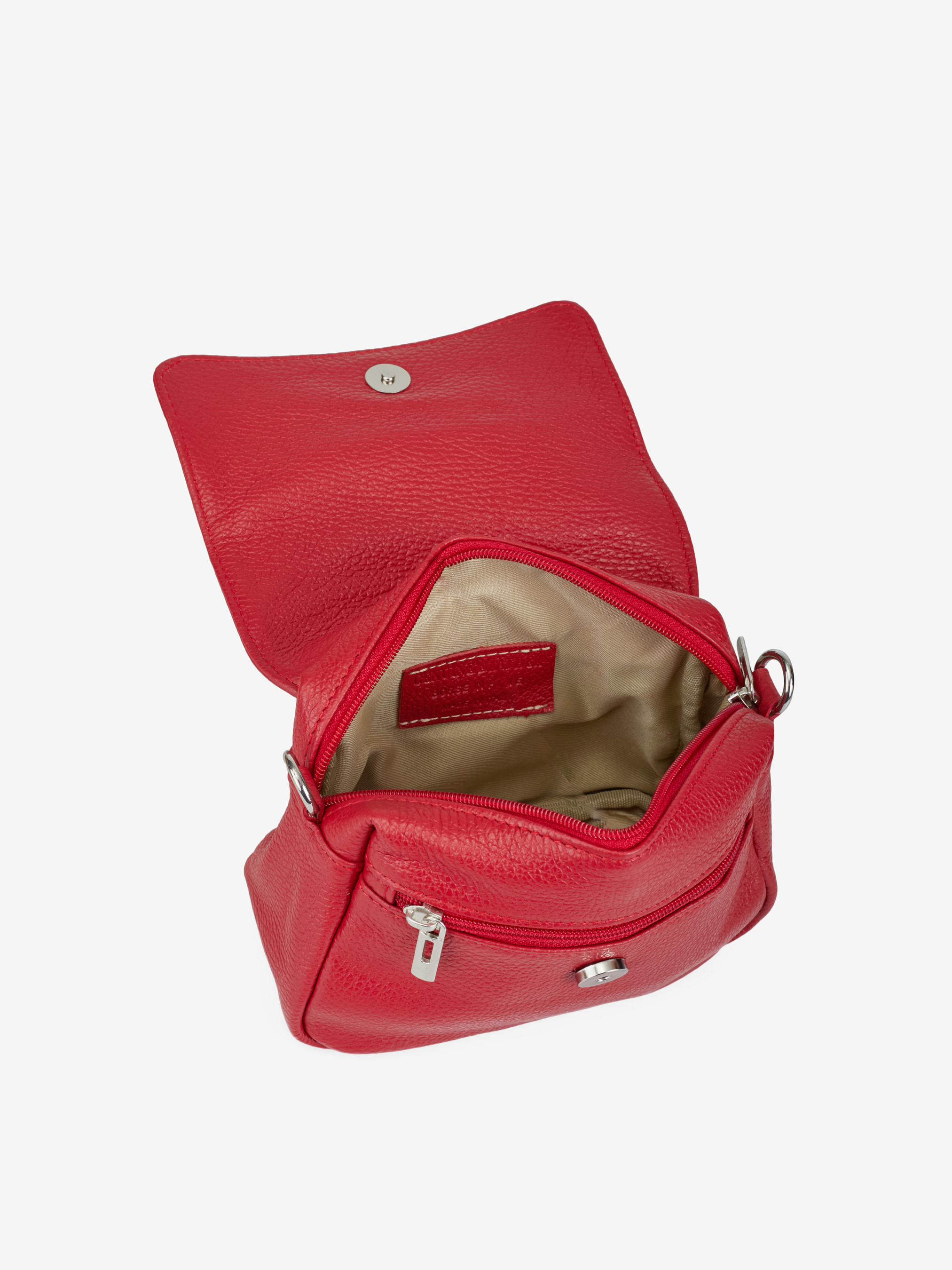 Детали: Материал: 100% натуральная кожа флотар Фурнитура серебристого цвета Размеры (Ш x В x Г) - 20 x 15 x 10 см Внутри 1 отделение, сзади и спереди карманчики на молнии Подкладка: хлопок Застежка: молния, клапан на магните Ремешок кожаный, съемный, регулируется, максимальная длина 120 см