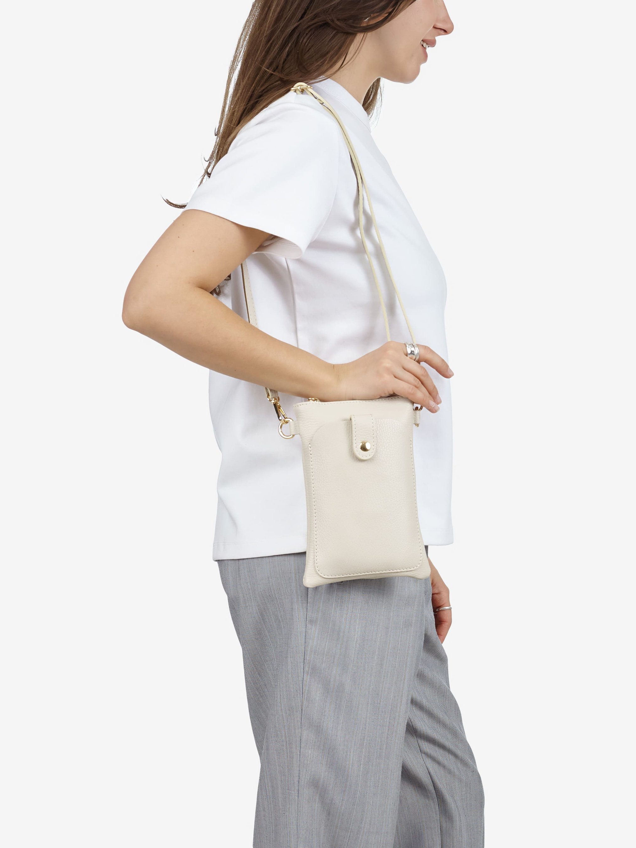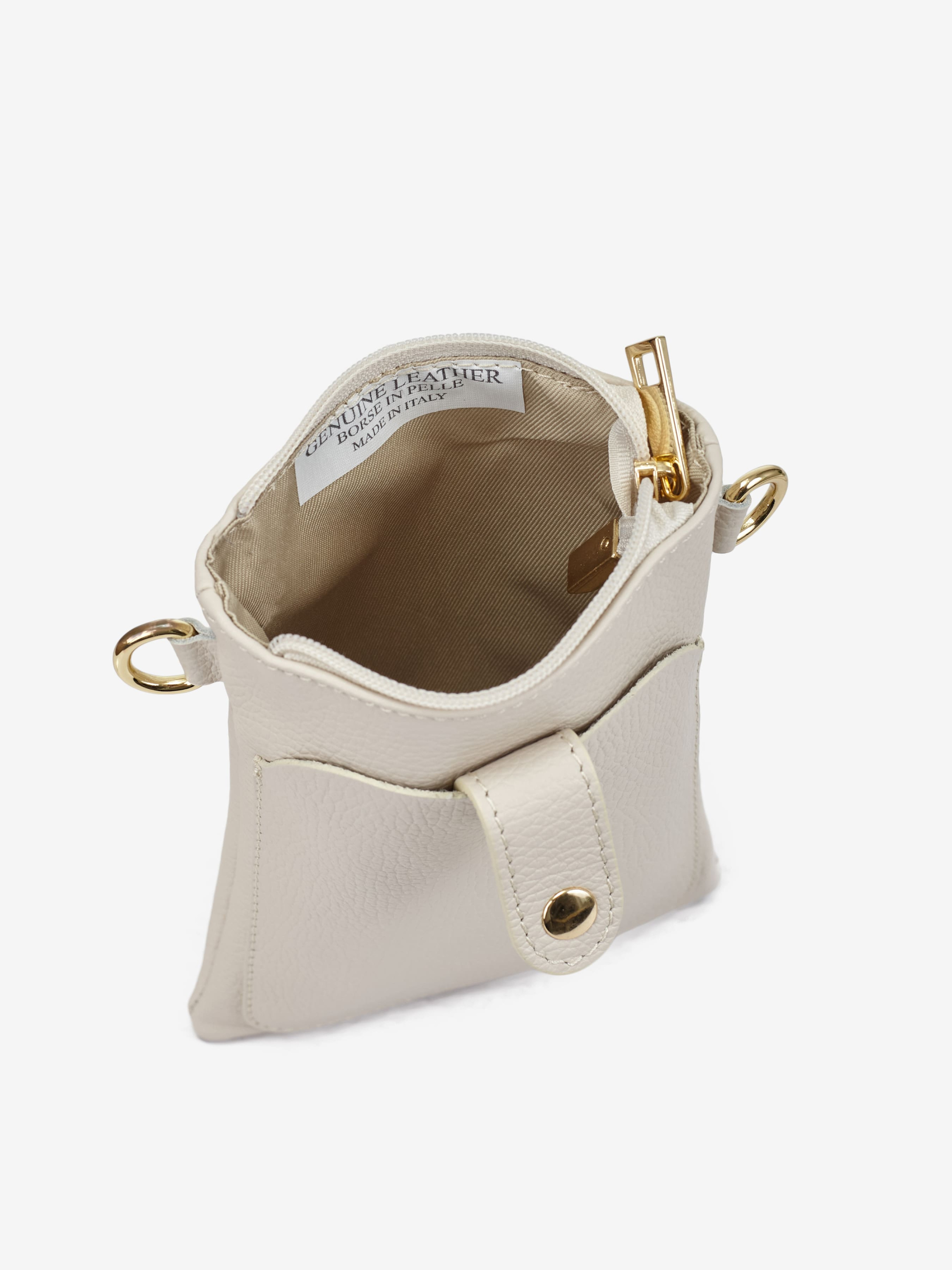 Детали: Материал: 100% натуральная кожа флотар Фурнитура золотистого цвета Размеры (Ш x В x Г) - 13 x 20 x 4 см Внутри 1 отделение Спереди карманчик на магните Подкладка: хлопок Застежка: молния Ремешок кожаный, съемный, регулируется, максимальная длина 115 см