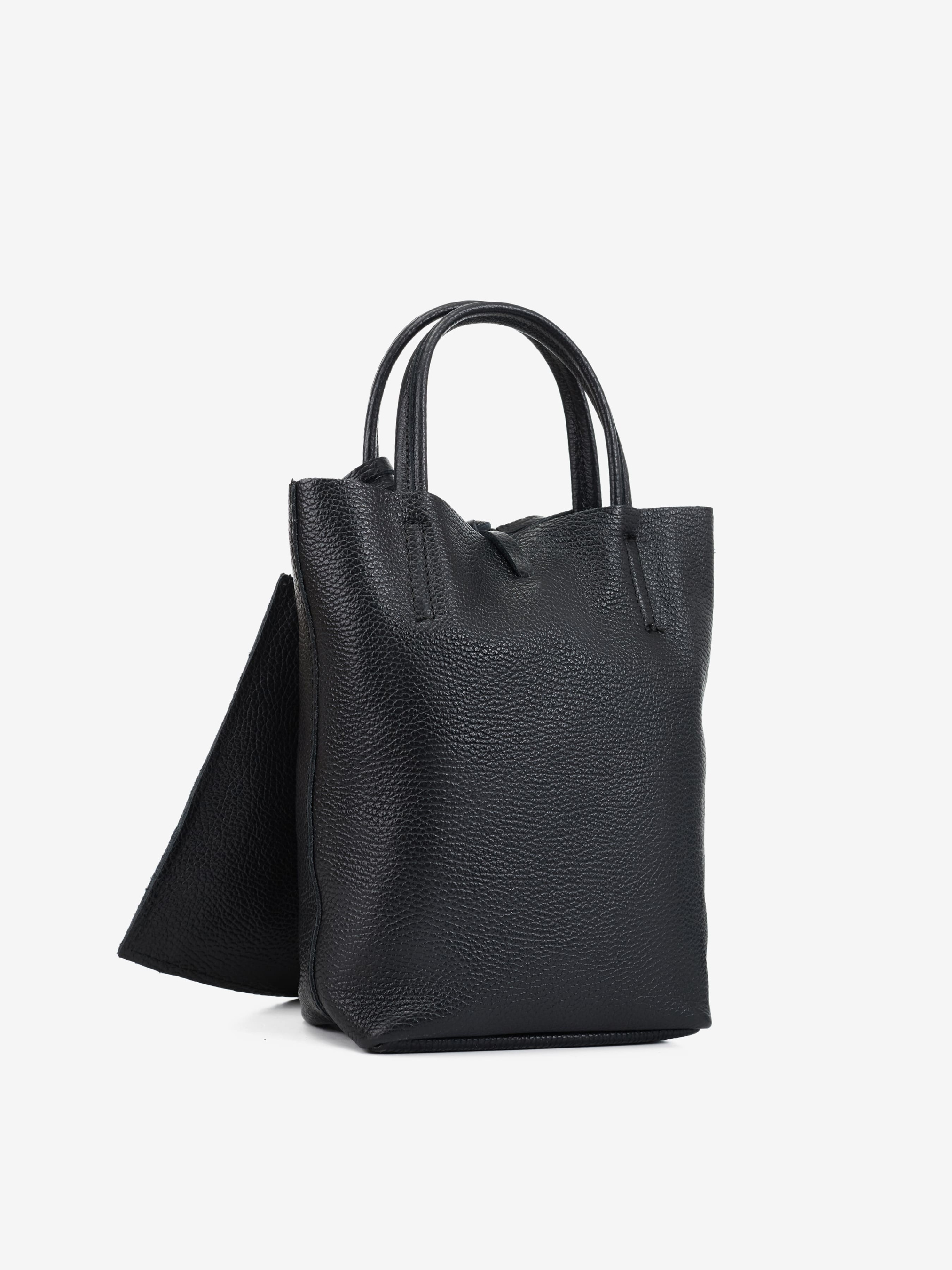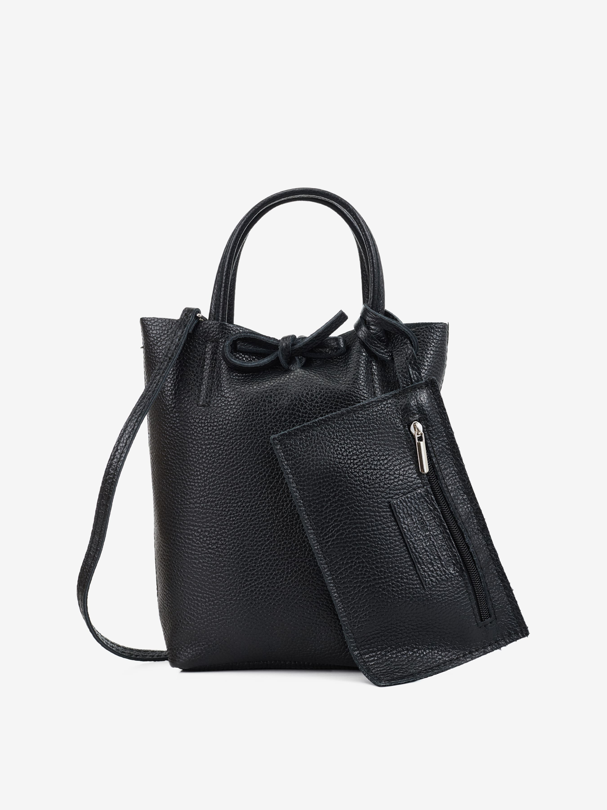 Детали: Материал: 100% натуральная кожа флотар Фурнитура серебристого цвета Размеры (Ш x В x Г) - 20 x 23 x 8 см Внутри 1 отделение и косметичка на молнии Подкладка: отсутствует Застежка: завязки Высота ручек 10 см Ремешок кожаный, съемный, не регулируется, максимальная длина 110 см