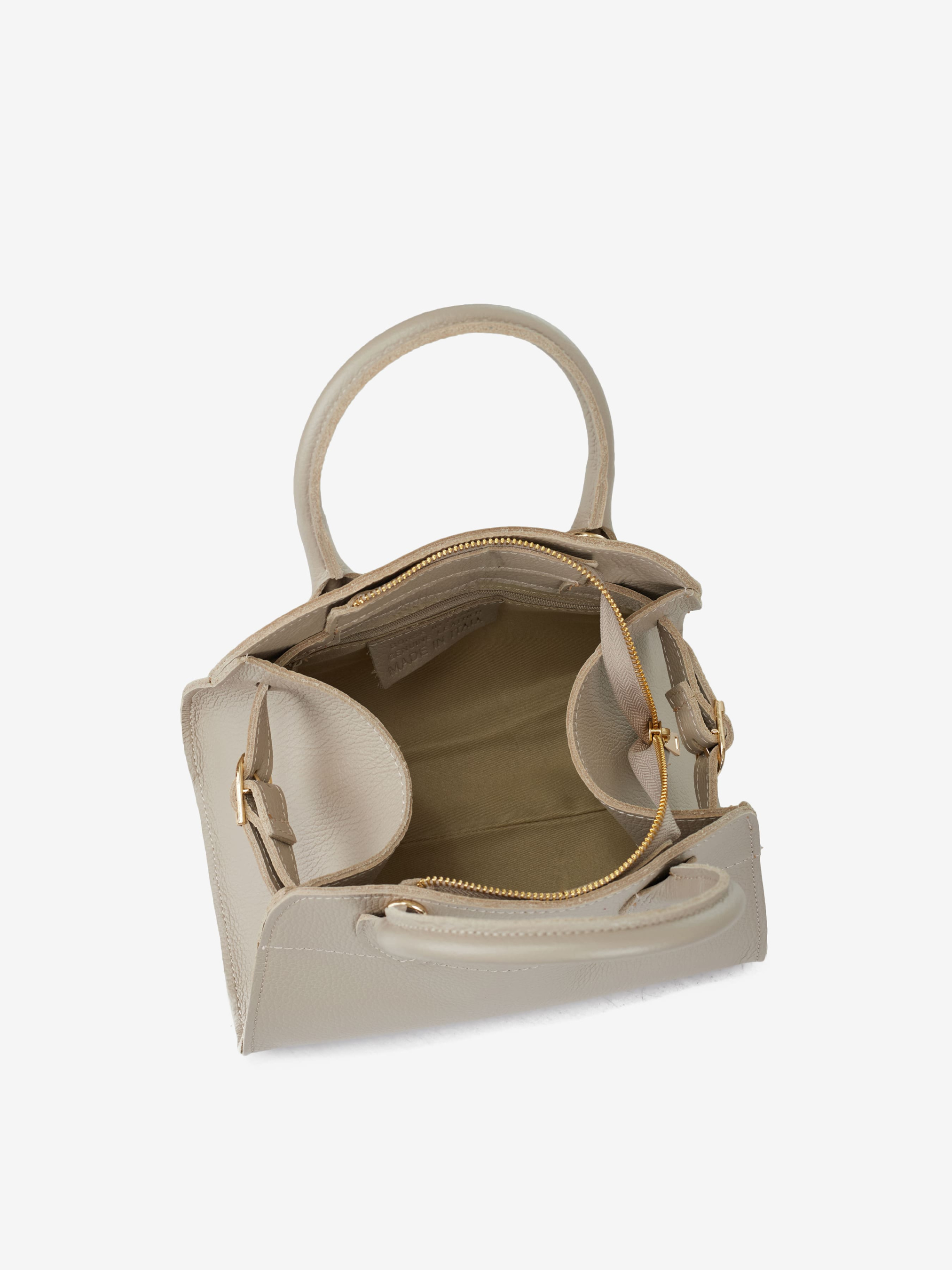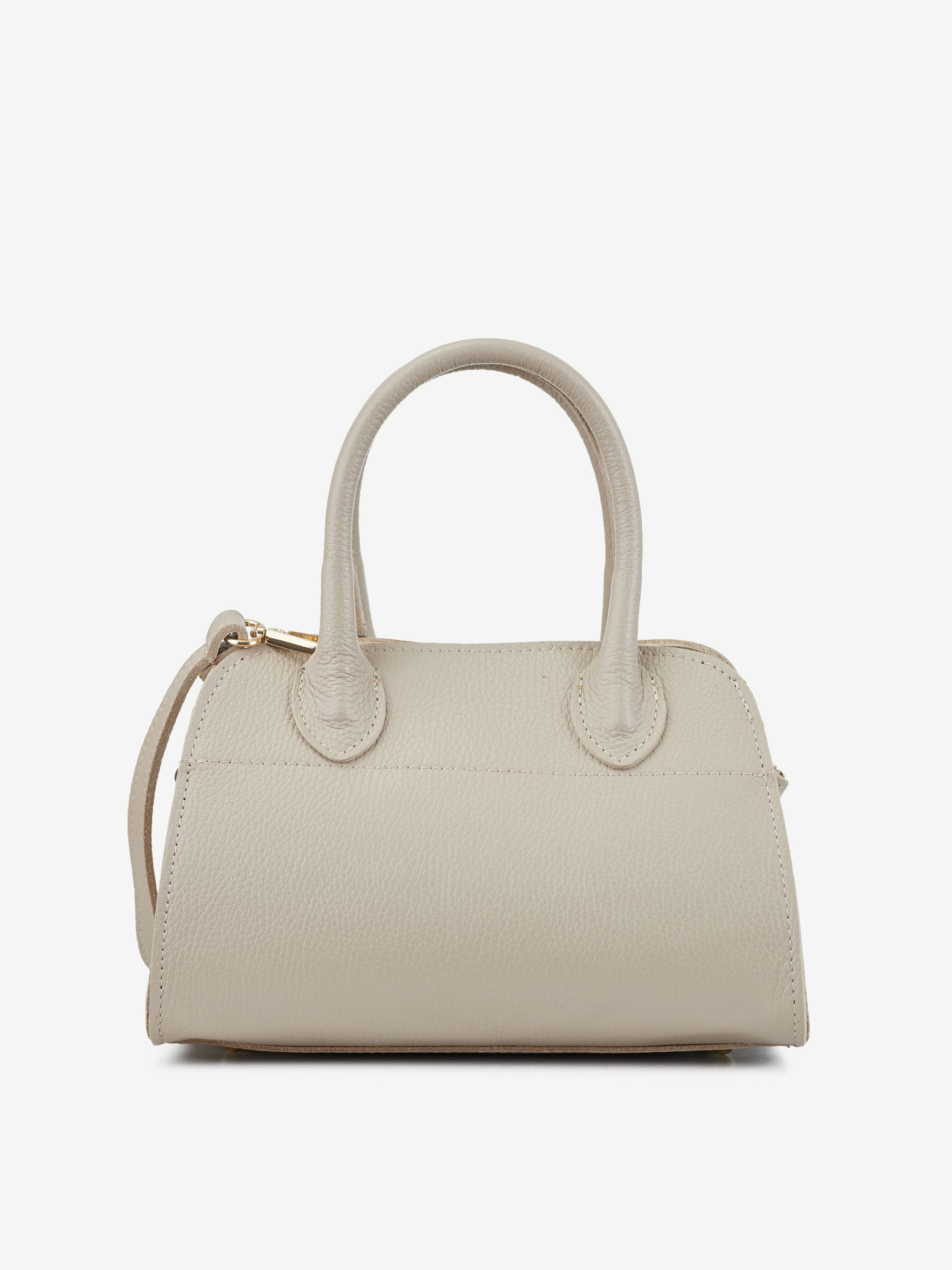 Детали: Материал: 100% натуральная кожа флотар Фурнитура золотистого цвета Размеры (Ш x В x Г) - 24 x 19 x 13 см Внутри 1 отделение и 1 карманчик на молнии Подкладка: хлопок Застежка: молния Высота ручек 11 см Ремешок кожаный, съемный, регулируется, максимальная длина 120 см