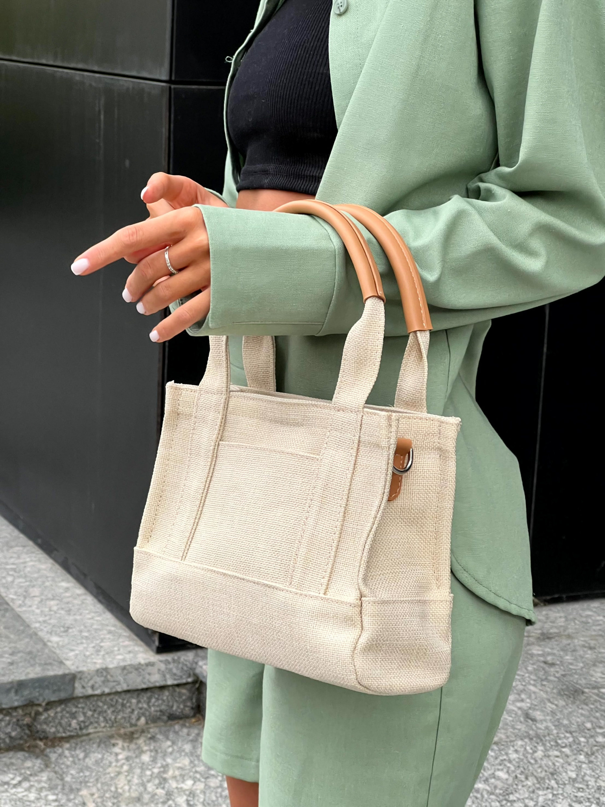 Текстильная универсальная сумка. Внутри есть тканевая подкладка и небольшой карман на молнии. Модель вместительная. Дополняется вставками из экокожи. В комплекте есть ремешок, который можно регулировать. Сумка застегивается на кнопку. Отлично подойдет под образы разных стилей. Высота 18,5 см Высота с ручкой 31 см Высота ручек 12,5 см Ширина 23 см Глубина 9 см Длина ремешка минимальная 60,5 см Длинна ремешка максимальная 105 см