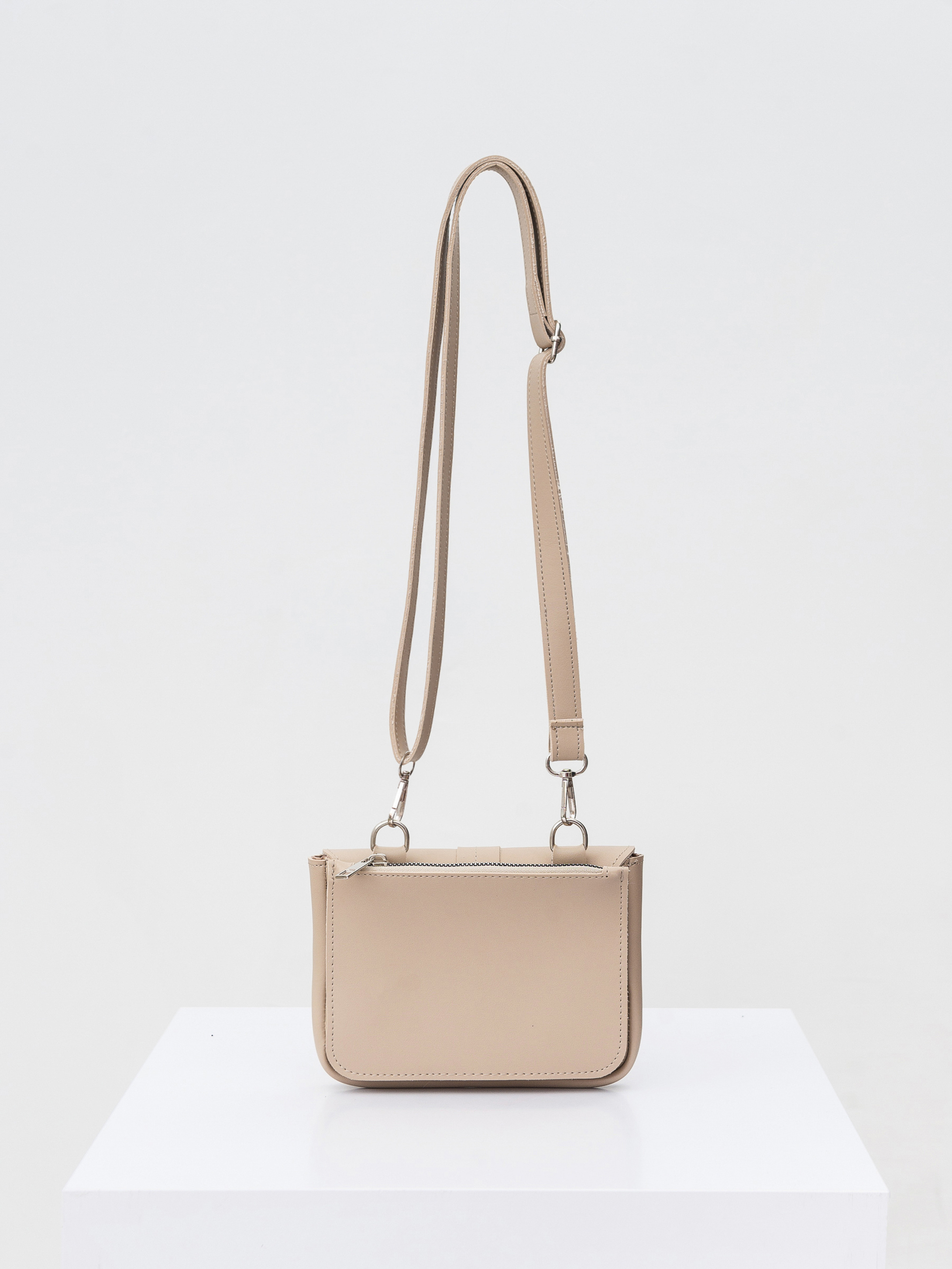 Клатч-конверт прямоугольной формы на длинном ремешке. Средний размер максимально удобный для повседневной носки негабаритных вещей. Спереди застёгивается на кнопку-магнит. На спинке отдельный кармашек на молнии. Длинный ремешок с регулятором. Длина : 12 см Ширина : 18 см Ширина снизу : 6 см