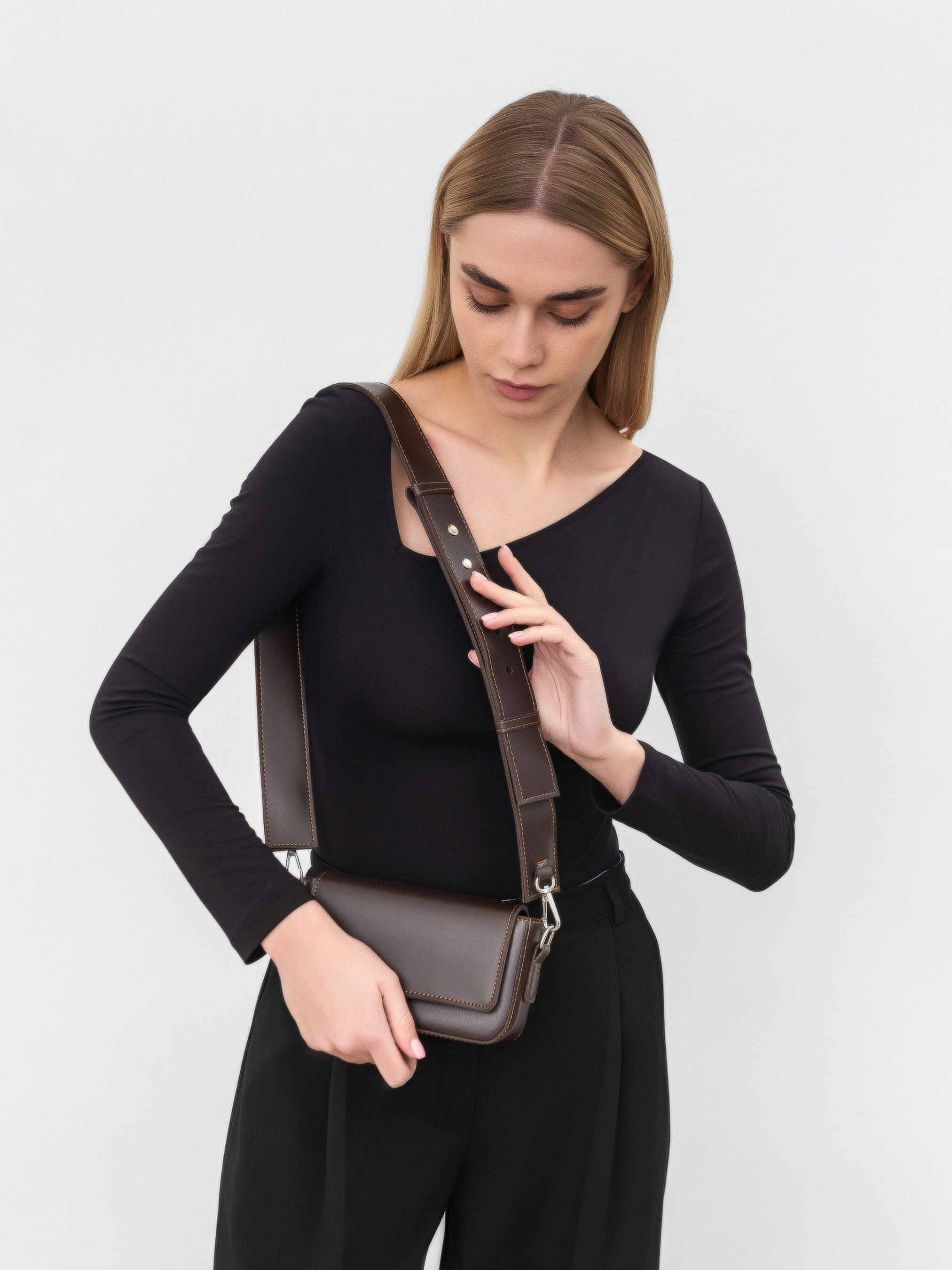 Компактный клатч прямоугольной формы. Застегивается на кнопку-магнит. В комплект идет длинный широкий ремешок с регулятором. Внутри тканевая подкладка и кармашек. Высота аксессуара: 11 см Длина аксессуара: 18 см Ширина аксессуара: 4,5 см