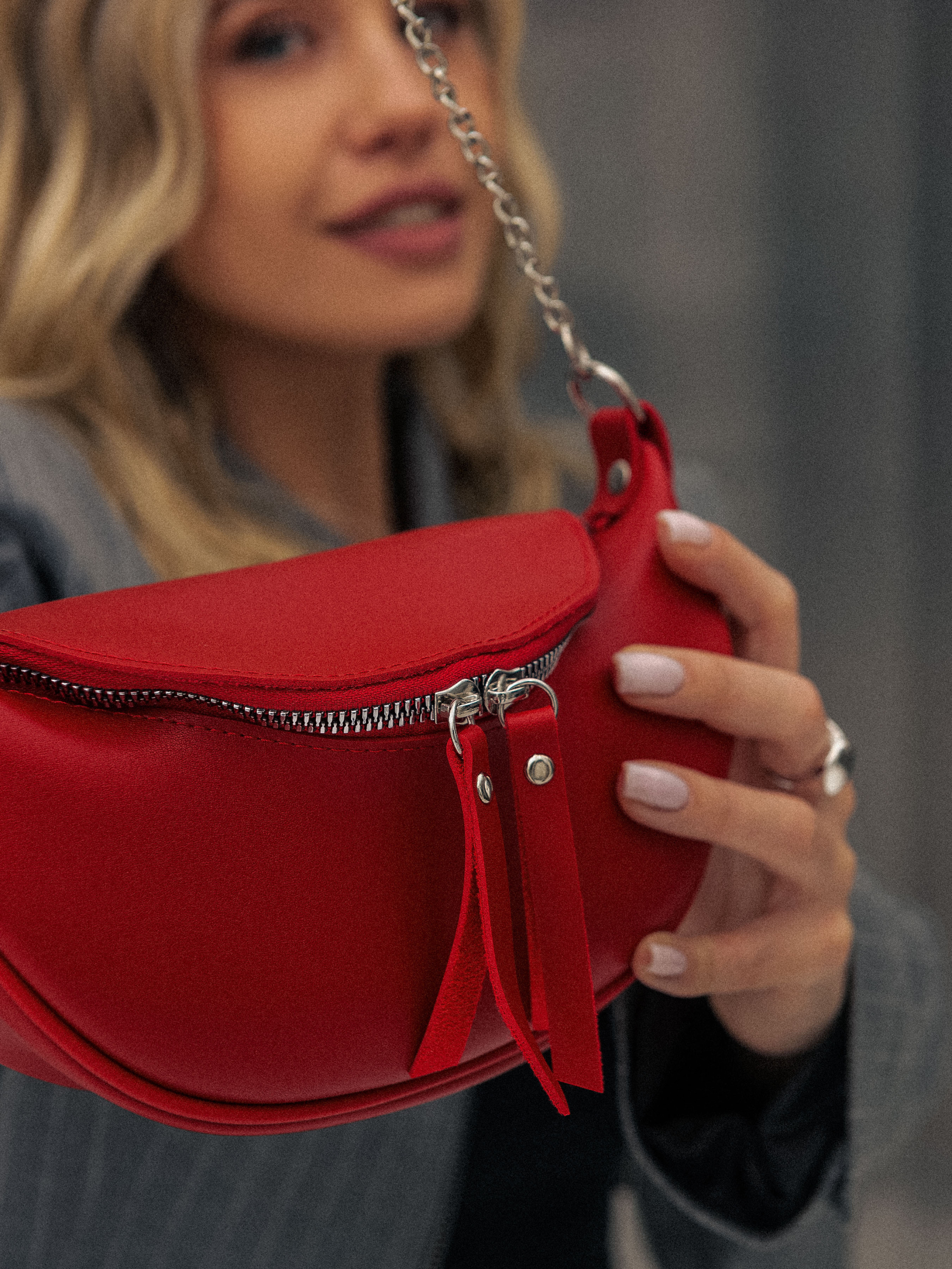 Бананка "Саманта" полукруглой формы ROMASHKA. Отличный вариант для повседневной носки, чтобы взять все самое необходимое. Будет отличным завершающим этапом образа со спортивным костюмом или джинсами . Внутри один кармашек. Длина ремешка регулируется. При желании, его можно отстегнуть. Бананка дополнена цепью снаружи. Одна из самых удобных и актуальных моделей сумки на предстоящие сезоны. Длина 22-23 см, высота 14 см, ширина 7 см