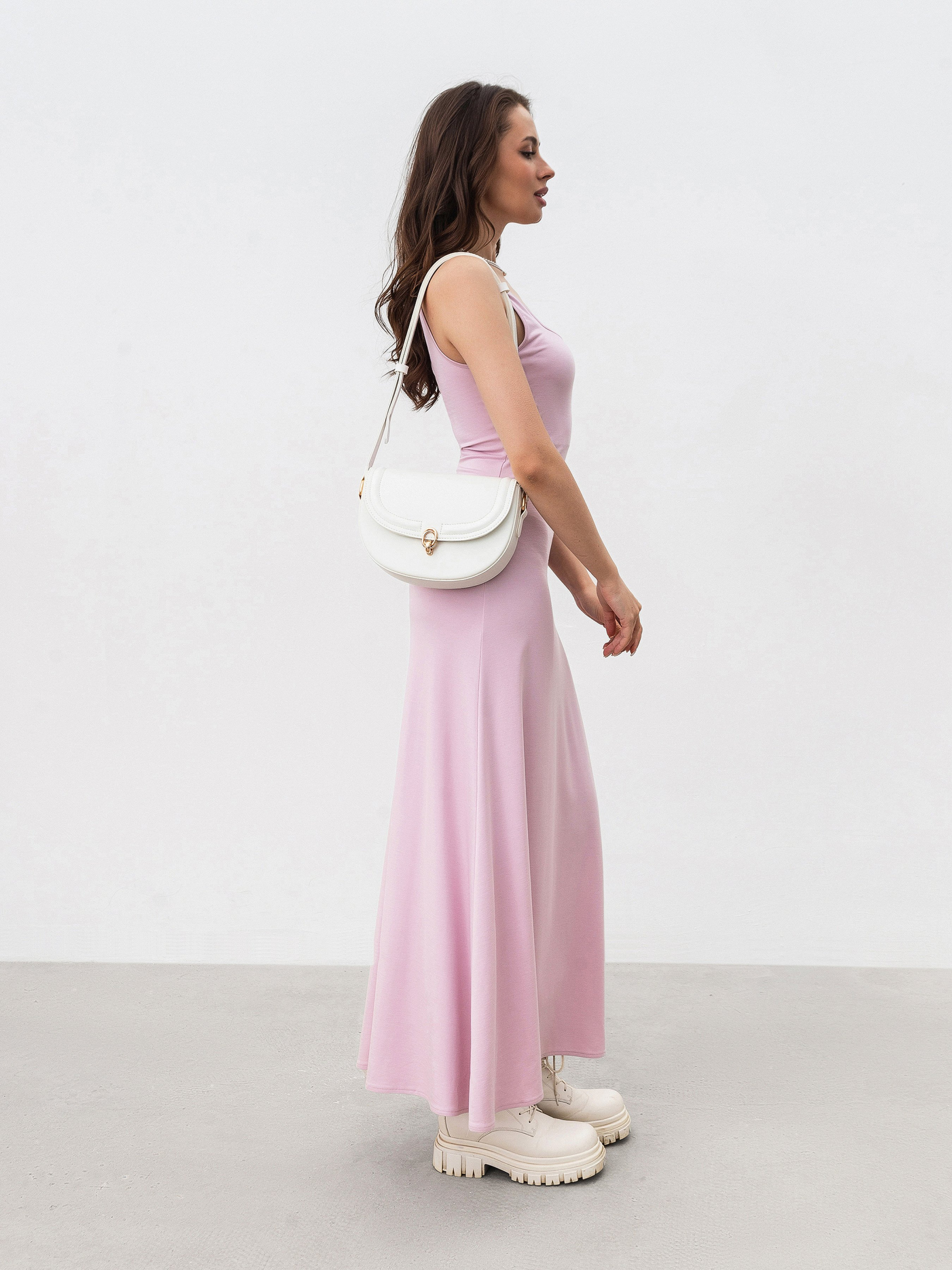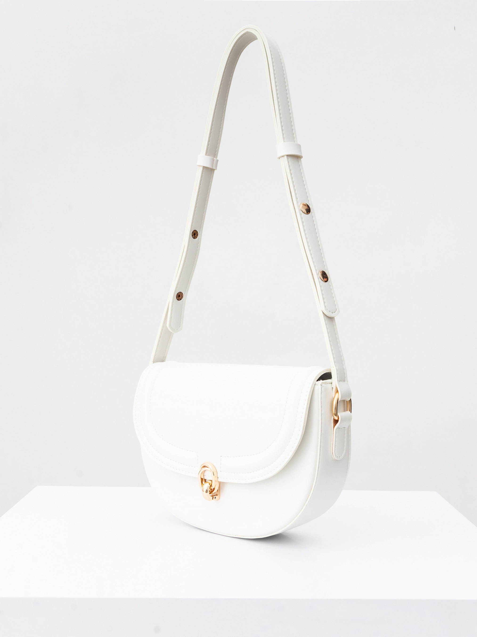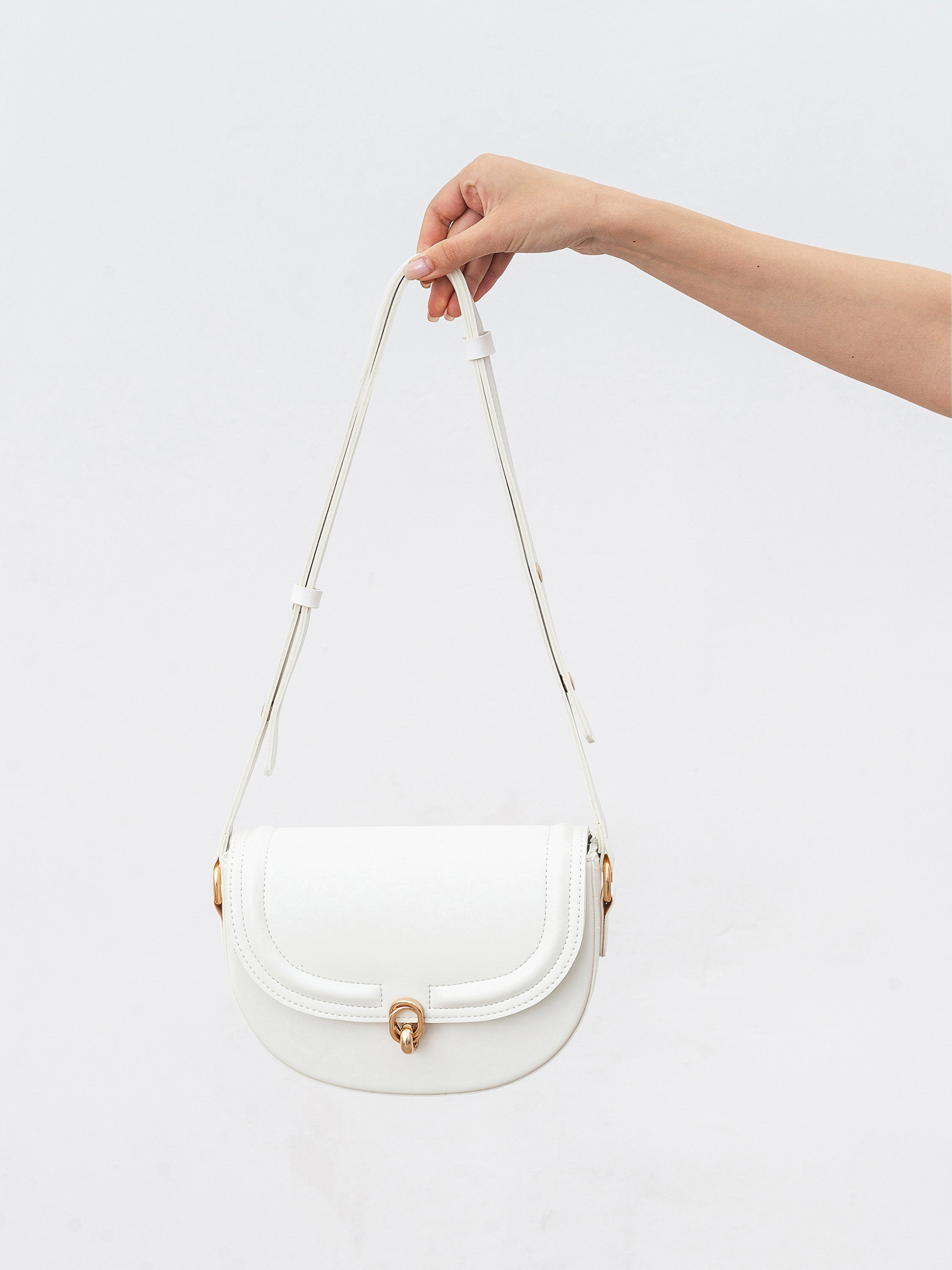 Полукруглая сумка с длинным ремешком. Закрывается на клапан. Фурнитура золотого цвета. Внутри есть тканевая подкладка и кармашки на молнии. Модель хорошо держит форму. В комплекте есть длинный ремешок для вариативности ношения. Замечательный повседневный вариант, который легко будет комбинироваться с чем угодно. Советуем сочетать со шляпками или очками. Высота аксессуара: 18 см, длина аксессуара: 23 см, ширина аксессуара: 6 см