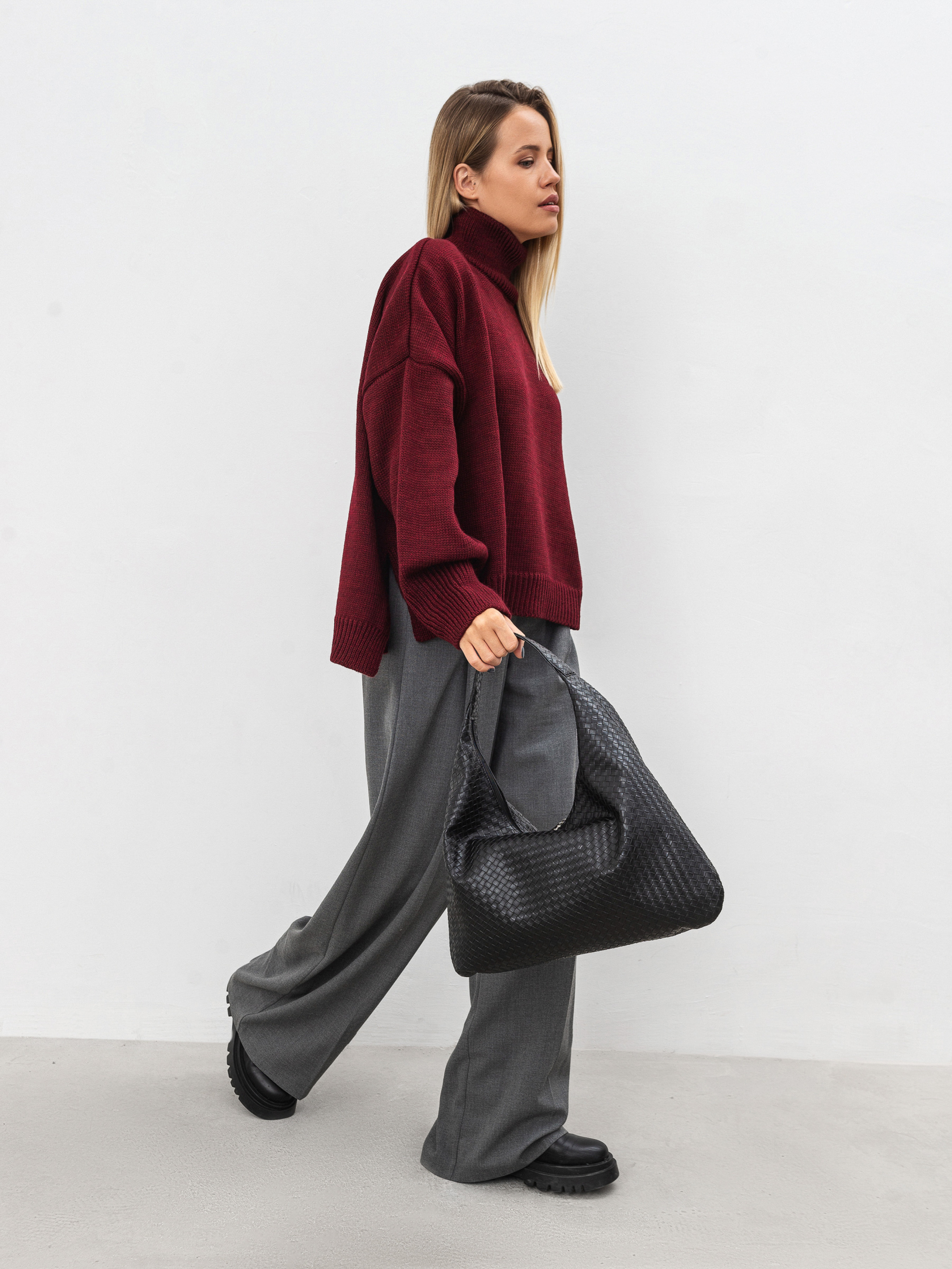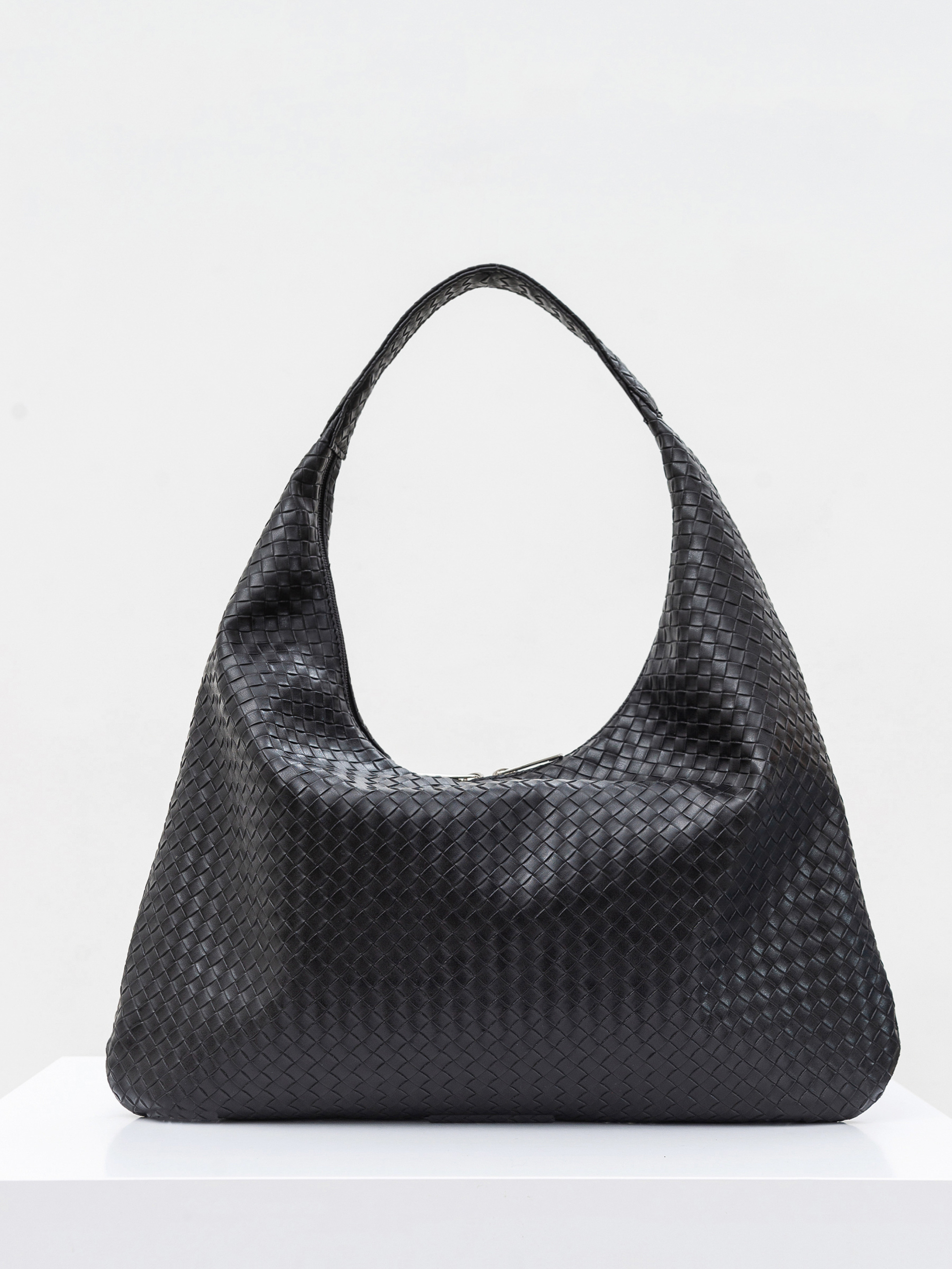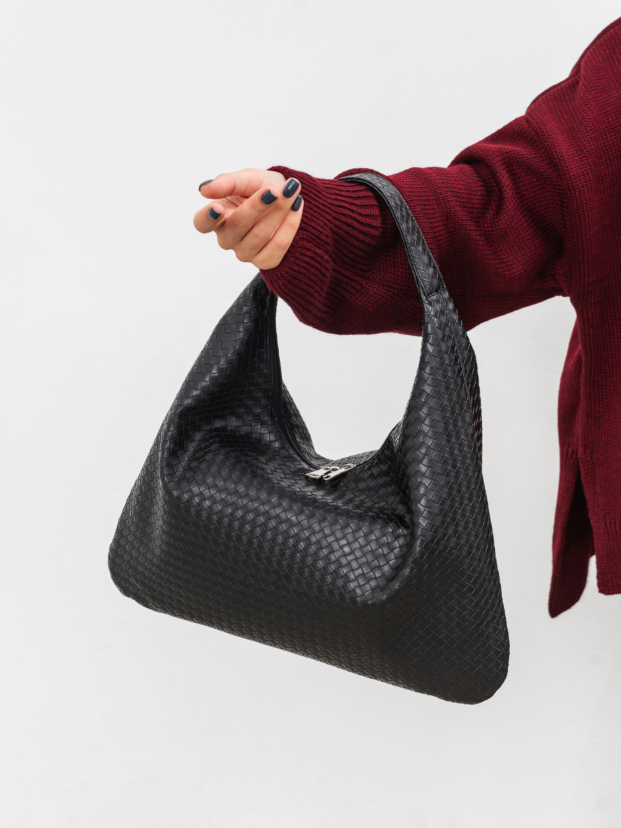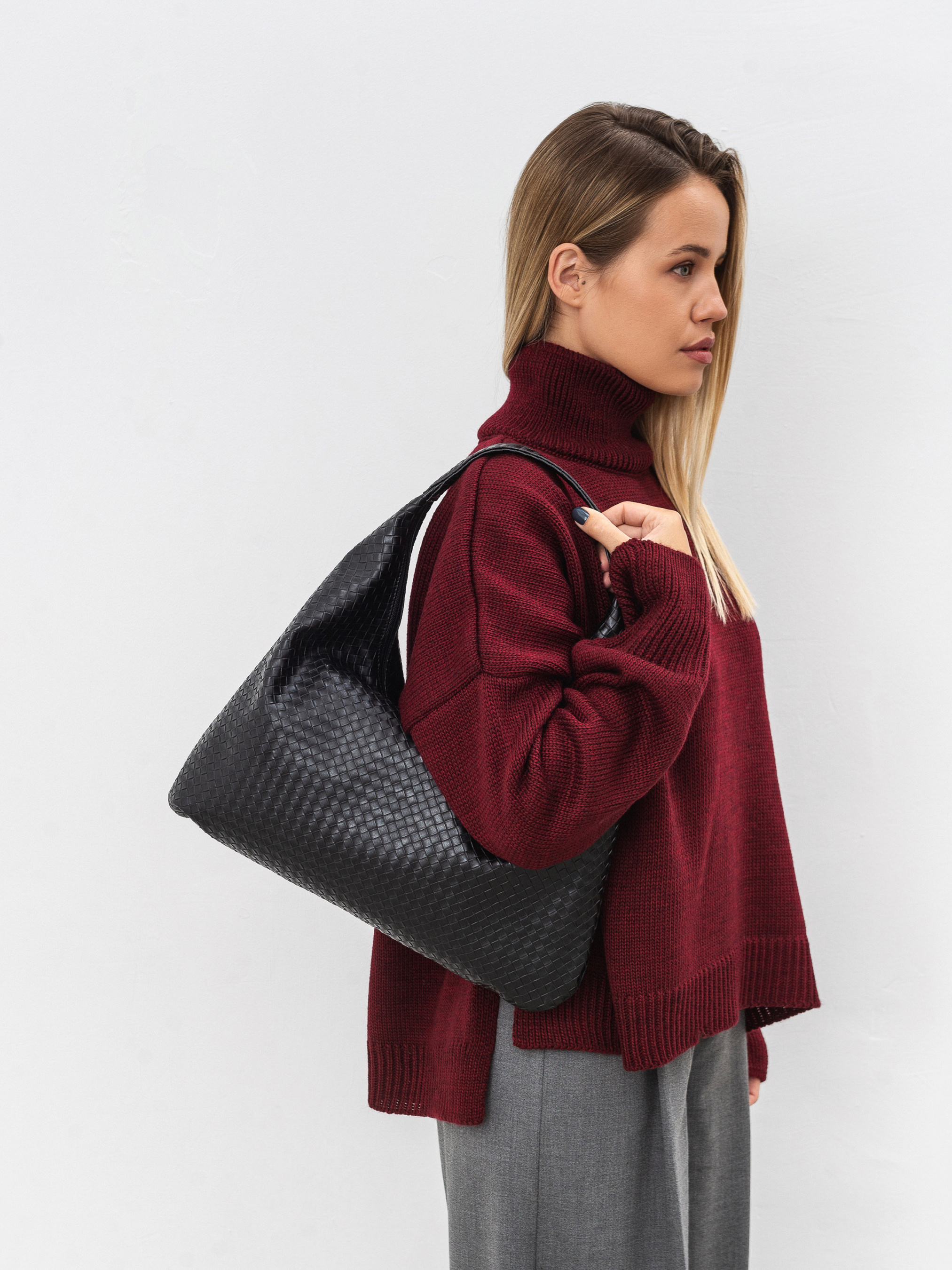 Стильная сумка фасона хобо из плетеного материала. Изготовлена из актуального плетеного заменителя кожи. Мягкая, бескаркасная модель - идеальна для женственных образов с платьями свободного кроя или оверсайз вещами. Внутри текстильная подкладка внутри. Комфортно носится на плече и дополняет луки. Комбинировать можно с темными очками и аксессуаром на голову. Высота аксессуара: 24 см Длина аксессуара: 40 см Высота ручки: 15 см