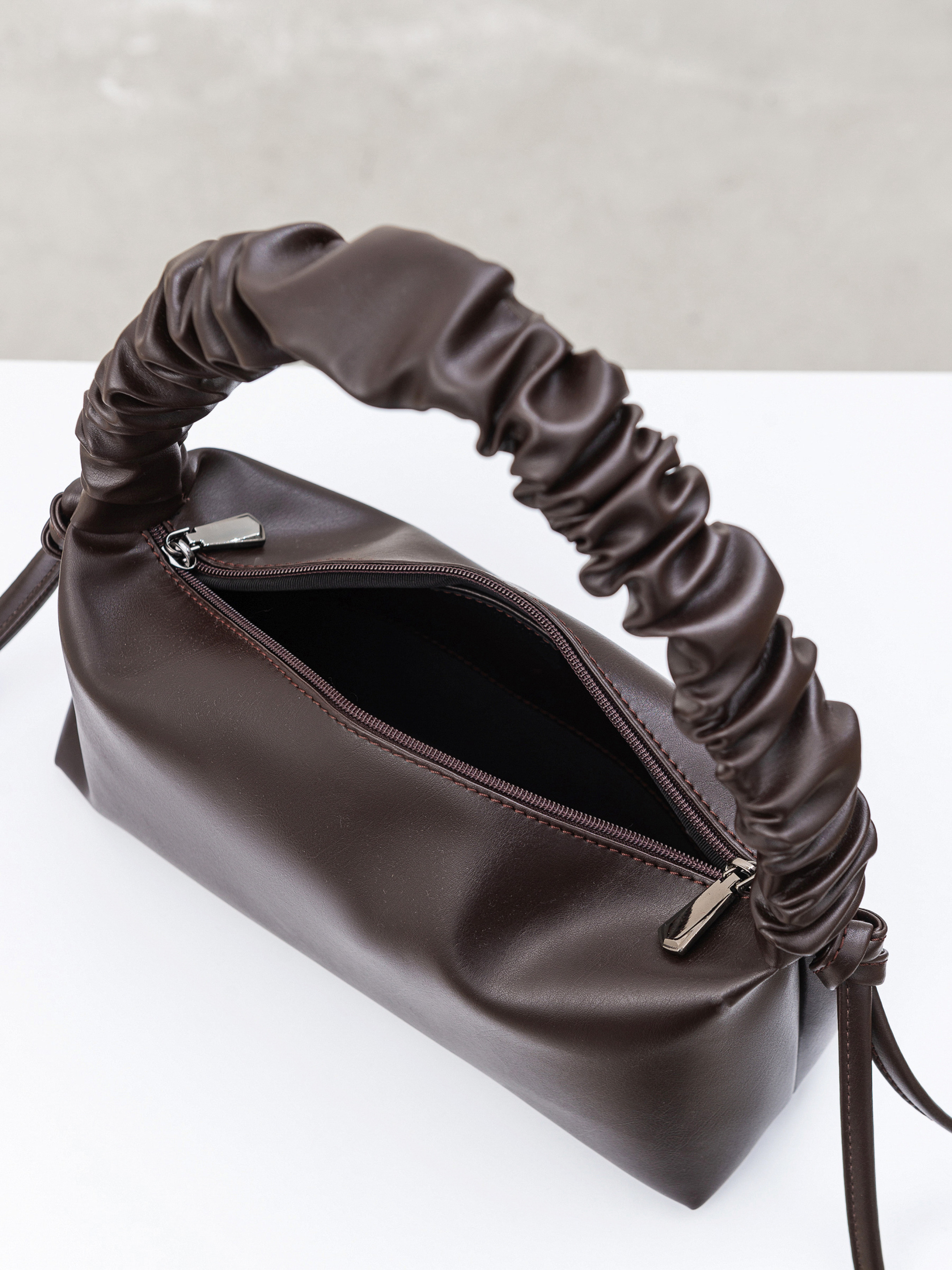 Трендовая сумка-хобо среднего размера. Модель имеет текстильную подкладку и кармашек внутри. Ручка оформлена в виде сжатого материала. Акцентный вариант сумки для casual образов. Идеально подойдет как для луков с брюками, так и с платьями. Ширина: 35см Высота: 15см