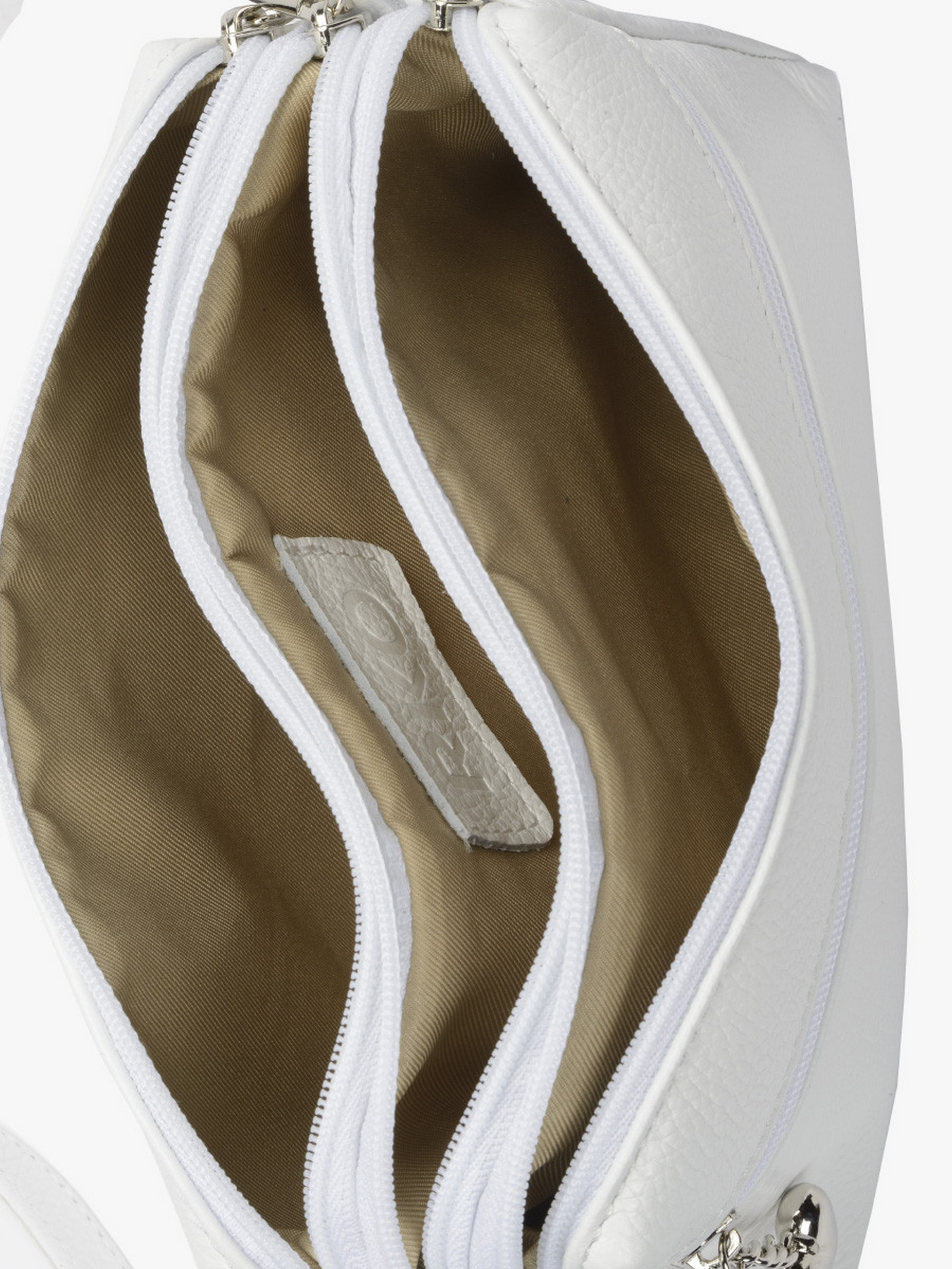 Молодежная кожаная сумочка белого цвета из серии #RKO. Выполнена из лицевой кожи. Застежка-замок. Сумка малая, не вмещает формат A4. Модель оснащена 1 внешним карманом (с красивой застежкой на молнии в форме сердечка), 3 внутренними карманами и прикольной съемной ручкой (как у барсетки), а также регулируемый ремень на плечо с брендовыми надписями длиной 125 см. Размеры: Высота: 15 см, Ширина: 23 см, Глубина: 7 см.