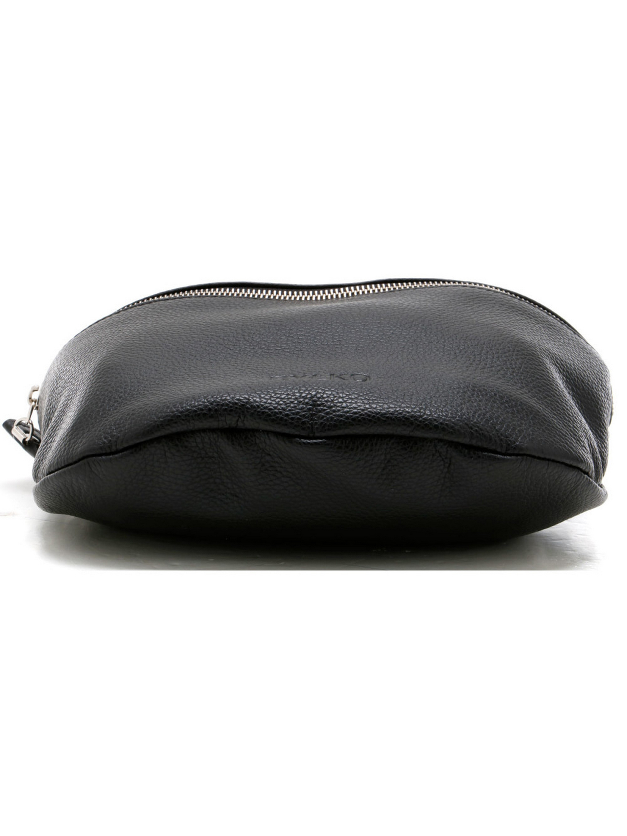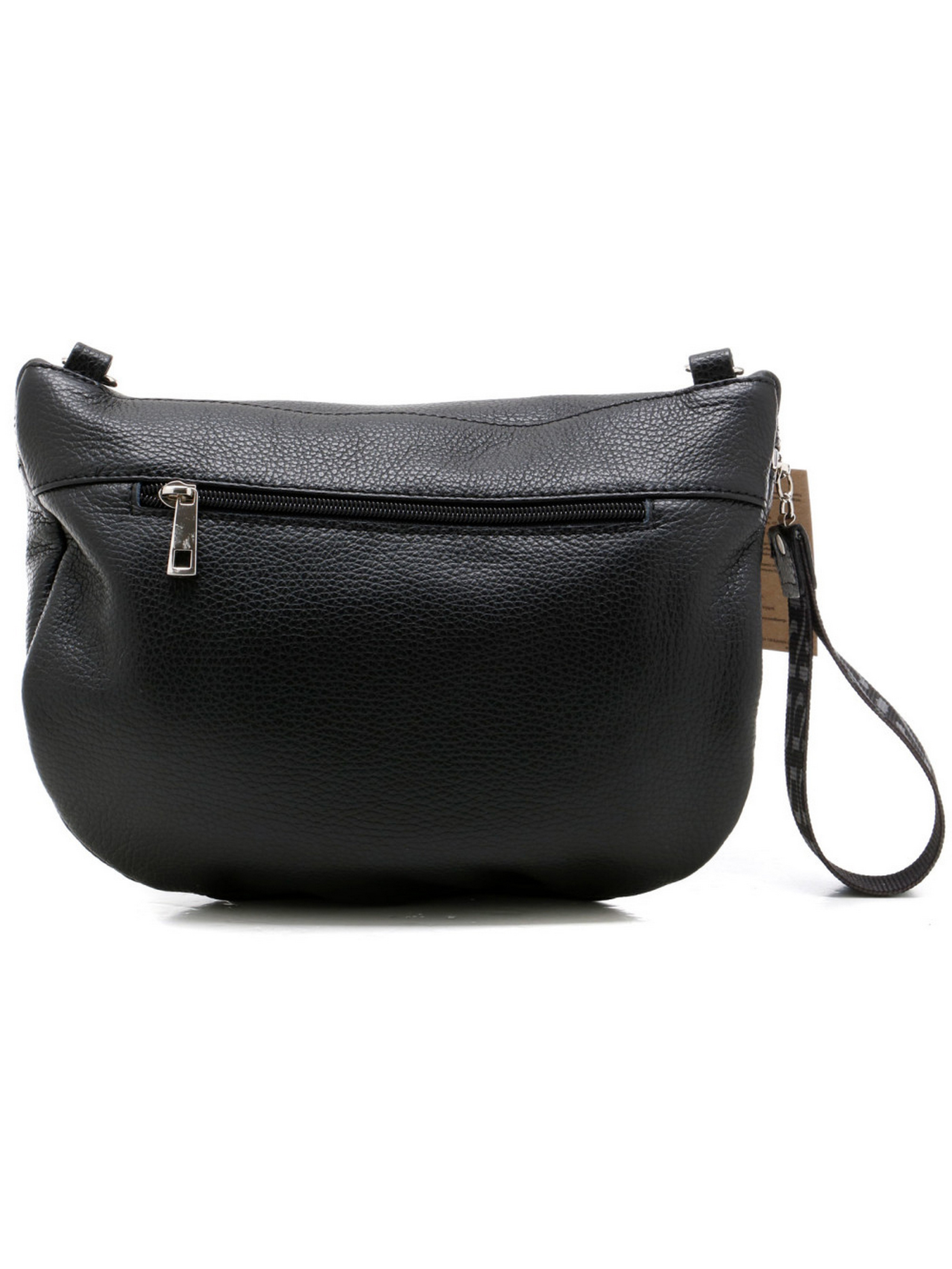 Черная кожаная сумочка RYŁKO через плечо из серии #RKO. Выполнена из натуральной, лицевой кожи высокого качества. Сумка небольшого размера, не вмещает в себя формат A4. Характеристики: Снаружи – 1 небольшой карман на молнии с тыльной стороны. Внутри - 2 отделения (1 небольшое на молнии для мелочи\телефона). В комплекте имеется съёмный регулируемый ремень через плечо, максимальной длиной - 130 см. Застежка – на молнии с прикольной на ней ручкой-петлей (как у борсетки). Размеры: Высота: 20 см, Ширина: 29 см, Глубина: 7 см. Вес: ~ 240 г.