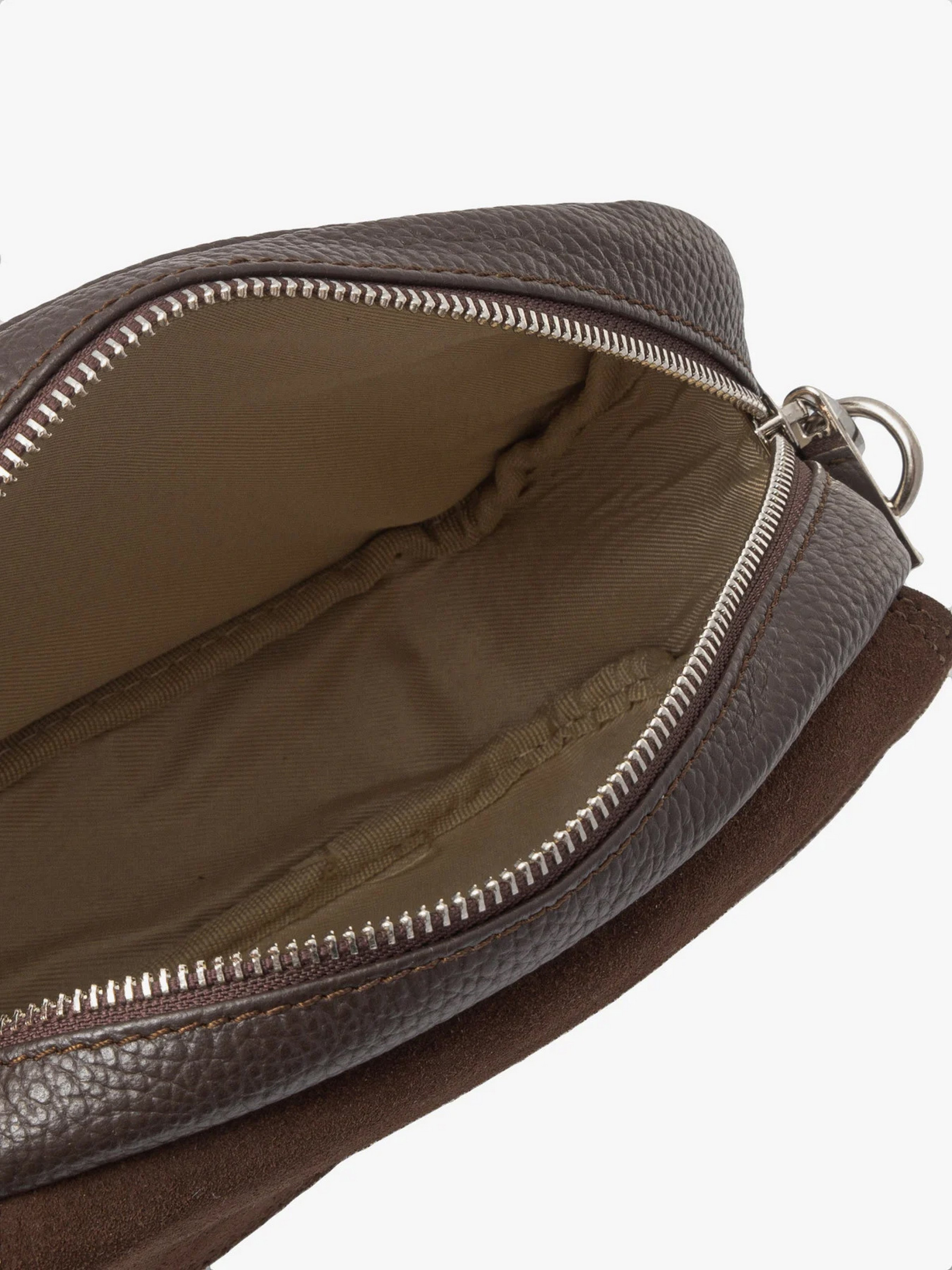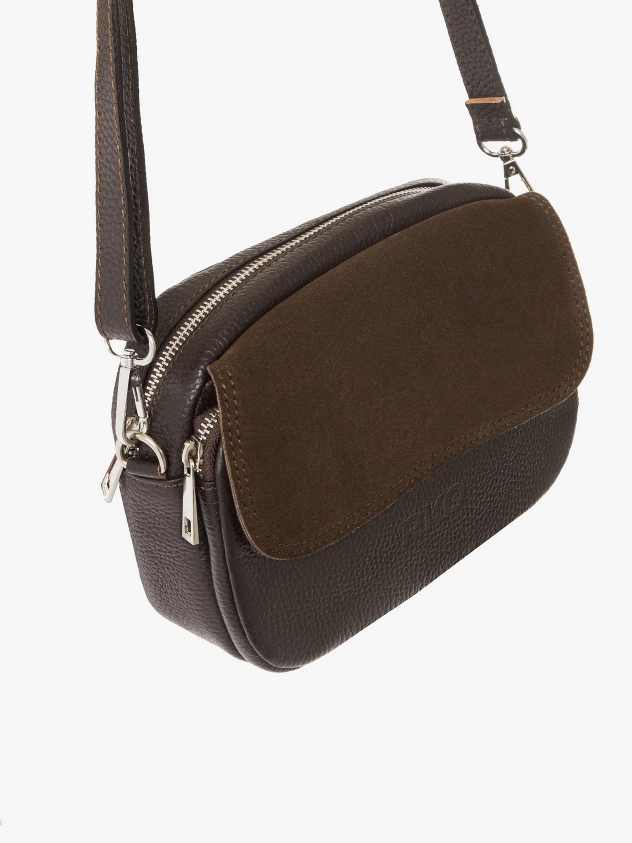 Кожаная сумка польского производителя RYLKO темно-коричневого. Выполнена из натуральной кожи и замши высокого качества. Сумка среднего размера не подходит для формата А4. Застежка – молния. Модель оснащена 1 основным отделением, 1 наружным карманом и регулируемым ремешком длиной 125 см. Фурнитура серебристого цвета.