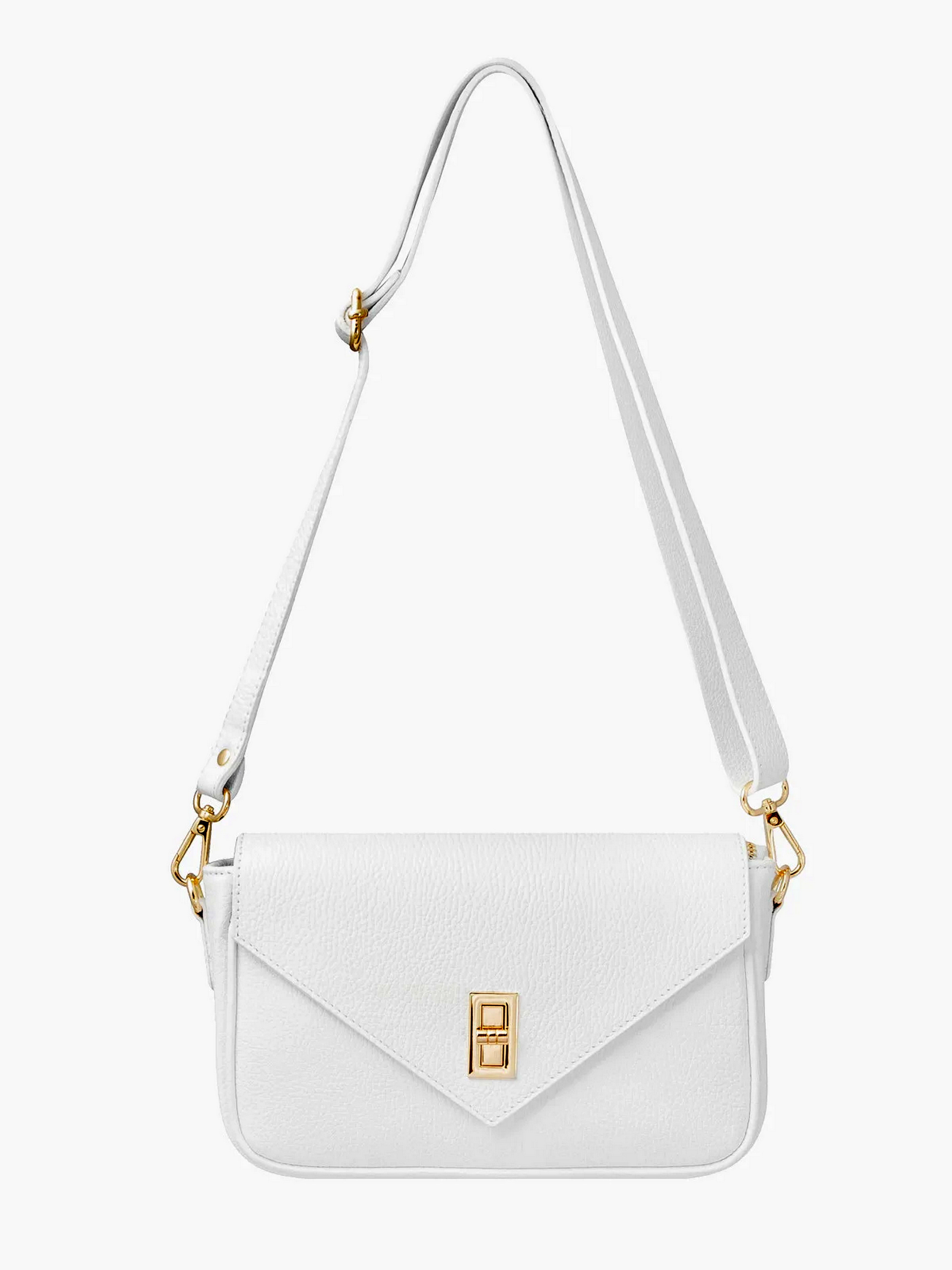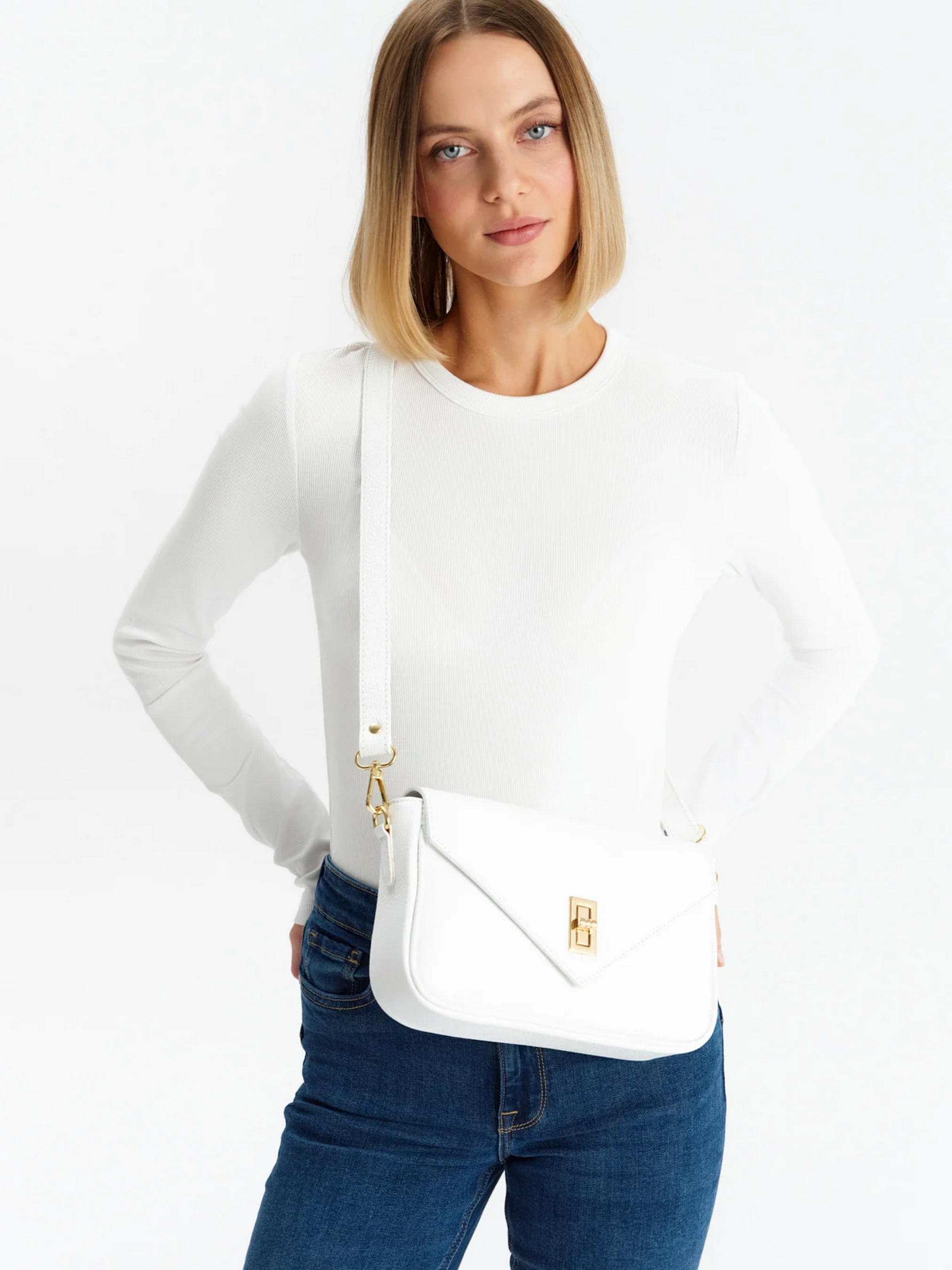 Кожаная женская сумка – кроссбоди белого цвета польского производителя RYLKO – это модный повседневный аксессуар, который прекрасно дополнит многие стили. Золотые металлические элементы идеально сочетаются с белым цветом сумки, придавая ей элегантность. Регулируемый ремешок позволяет регулировать длину в соответствии с вашими потребностями. Внутренние и внешние карманы помогут упорядочить самые важные вещи. Это практичное и стильное предложение для любого случая. Цвет: белый Состав верха: натуральная кожа Внутри: Текстиль Высота: 17 см Ширина: 27 см Глубина: 7 см Количество отделений: 1 Карман внутри: 1 Карман снаружи: 1 Замок: поворотный + молния Длина ремешка: 120 см Высота ручки: нет Производство: Италия