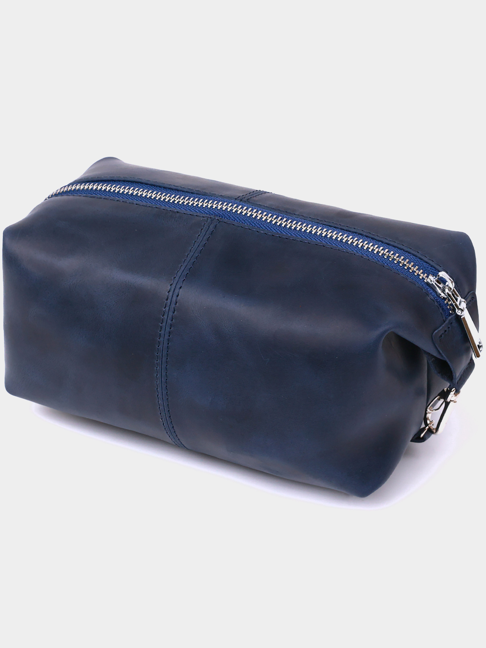 Материал: натуральная кожа. Цвет: синий. Размеры (ШхВхГ, см): 17х11х11 см. Страна производитель: Украина. Бренд: Shvigel. Описание: - закрывается на молнию; - внутри одно отделение; - 2 карабина для регулировки объёма. Превосходная мужская косметичка-органайзер для хранения самого ценного и, которая легко поместится в сумку или чемодан. Выполнена из натуральной высокопрочной кожи с улучшенными показателями стойкости к износу. Объем аксессуара может быть увеличен с помощью карабинов по бокам изделия. Цвет данной модели – темно-синий, фактура – гладкая и приятная на ощупь.