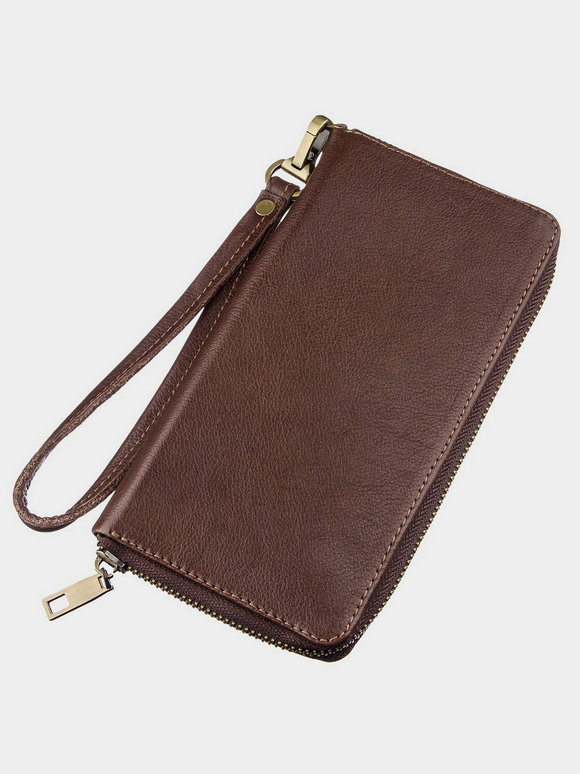 Материал: натуральная кожа; Размеры (ШхВхГ, см): 19х10х2,5; Цвет: коричневый; Страна производитель: Украина. Описание: - два больших открытых отделения; - отделение на молнии; - 6 слотов для кредиток; - съемный ремешок на запястье. Стильнейший кожаный клатч из натуральной кожи высочайшего качества. Дизайн клатча разработан специально с учетом всех пожеланий мужчин. Изделие имеет два вместительных кармана и карман на молнии для монет или банкнот. Клатч довольно вместительный. Вы можете носить его вместо барсетки. Такому аксессуару будет рад любой мужчина. На лицевой стороне аксессуара тисненый логотип бренда.