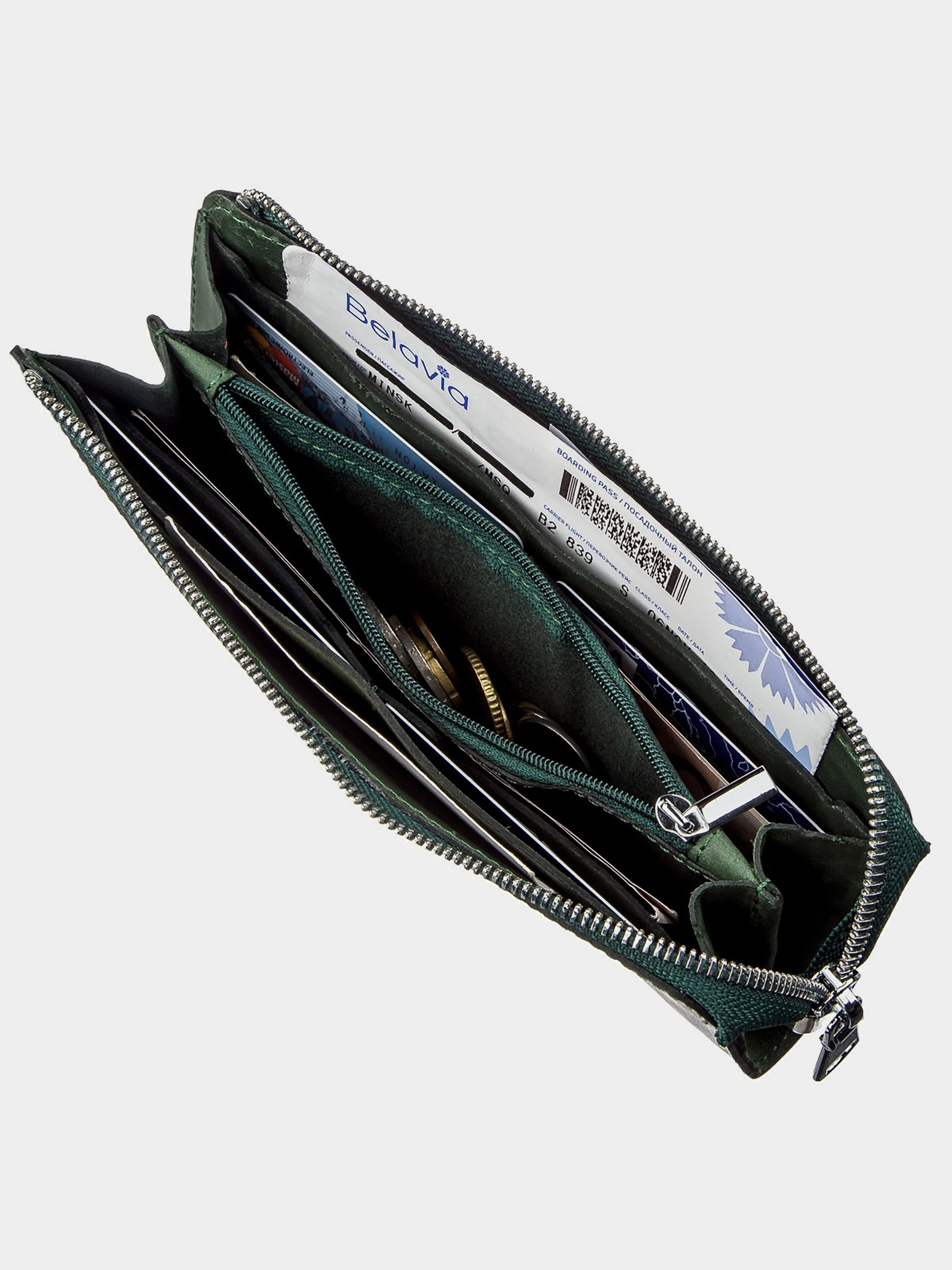 Цвет: зеленый; Материал: натуральная кожа высокого качества; Размеры (ШхВ, см): 20х10х2; Страна производитель: Украина. Внутри: - 2 отделения для купюр; - карман-перегородка на молнии; - 2 открытых кармана; - 8 слотов для пластиковых карточек. Качественный клатч из натуральной кожи. Плотная и приятная на ощупь матовая кожа и стильный дизайн подкупает многих клиентов. Аксессуар выглядит солидно и дорого. Вы можете заменить клатчем барсетку. Аксессуар спокойно вместит все ваши необходимые вещи и станет незаменимым помощником. Дополнено изделие крепкой фурнитурой серебристого цвета. Застегивается аксессуар на молнию. Такой клатч станет желанным подарком для его обладателя. Изделие подойдет как для мужчины, так и женщины.