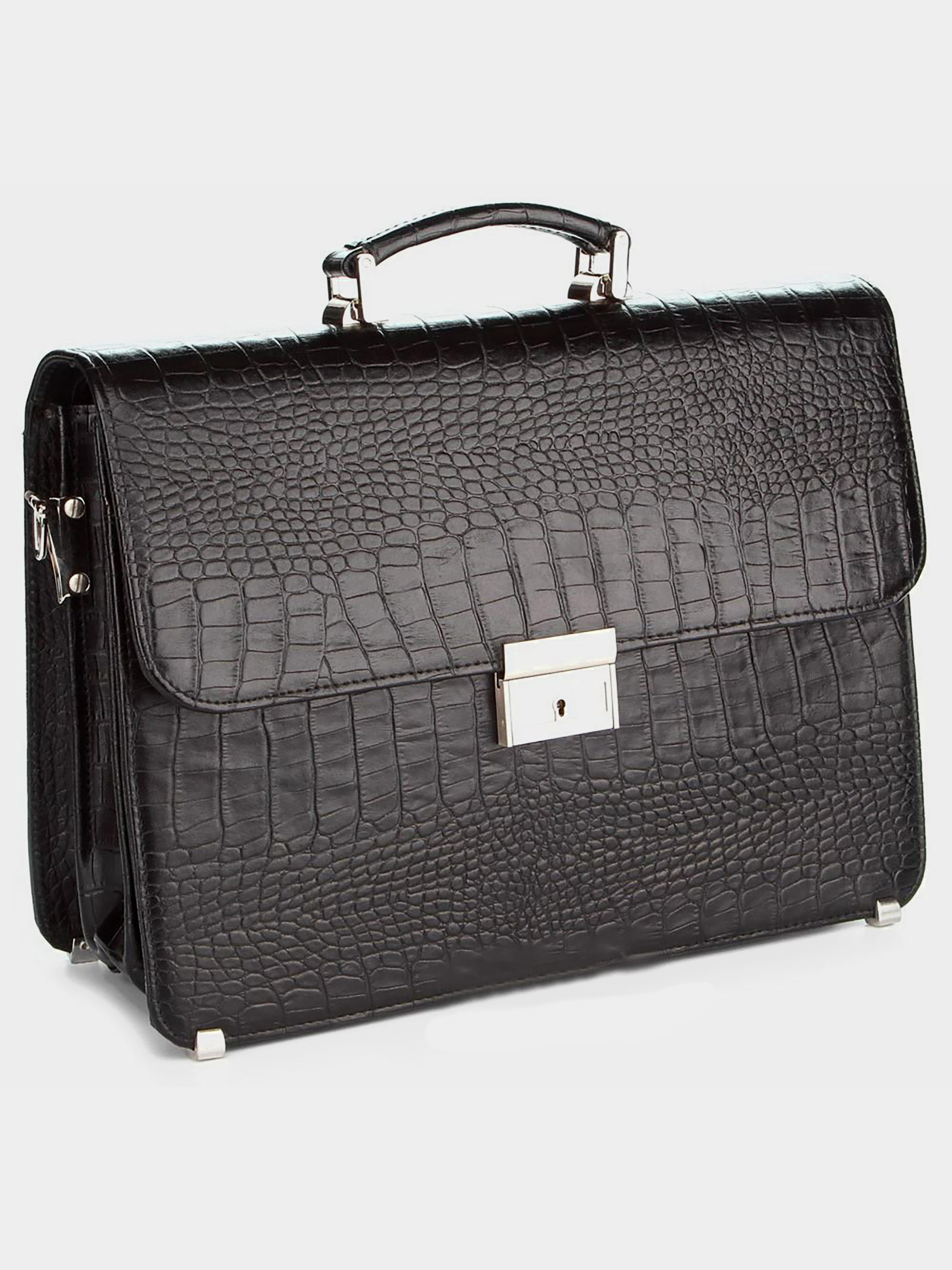 Материал: натуральная кожа высокого качества (фактура под крокодила). Цвет: черный. Размеры: высота – 25см; ширина – 35см; глубина – 8-14см. Страна производитель: Украина. Портфель имеет изысканный вид и подходит для человека, который ведет деловой образ жизни. Держит отлично форму благодаря крепкой натуральной кожи. Портфель комфортный при ношении. Хорошо подойдет в качестве подарка близкому человеку. Характеристики: - данный портфель имеет три внутренних отделения; - одно внутреннее отделения закрывается на молнии; - на задней стенке с внешней стороны имеется отделение на молнии, во внутренней стороне 4 отделения для карточек или визиток; - на передней стенке имеется отделения где легко помещается бумага формата А4; - удобная кожаная ручка для носки в руке; - имеет тканевый плечевой ремень; - внутрипортфельобшиттканью.