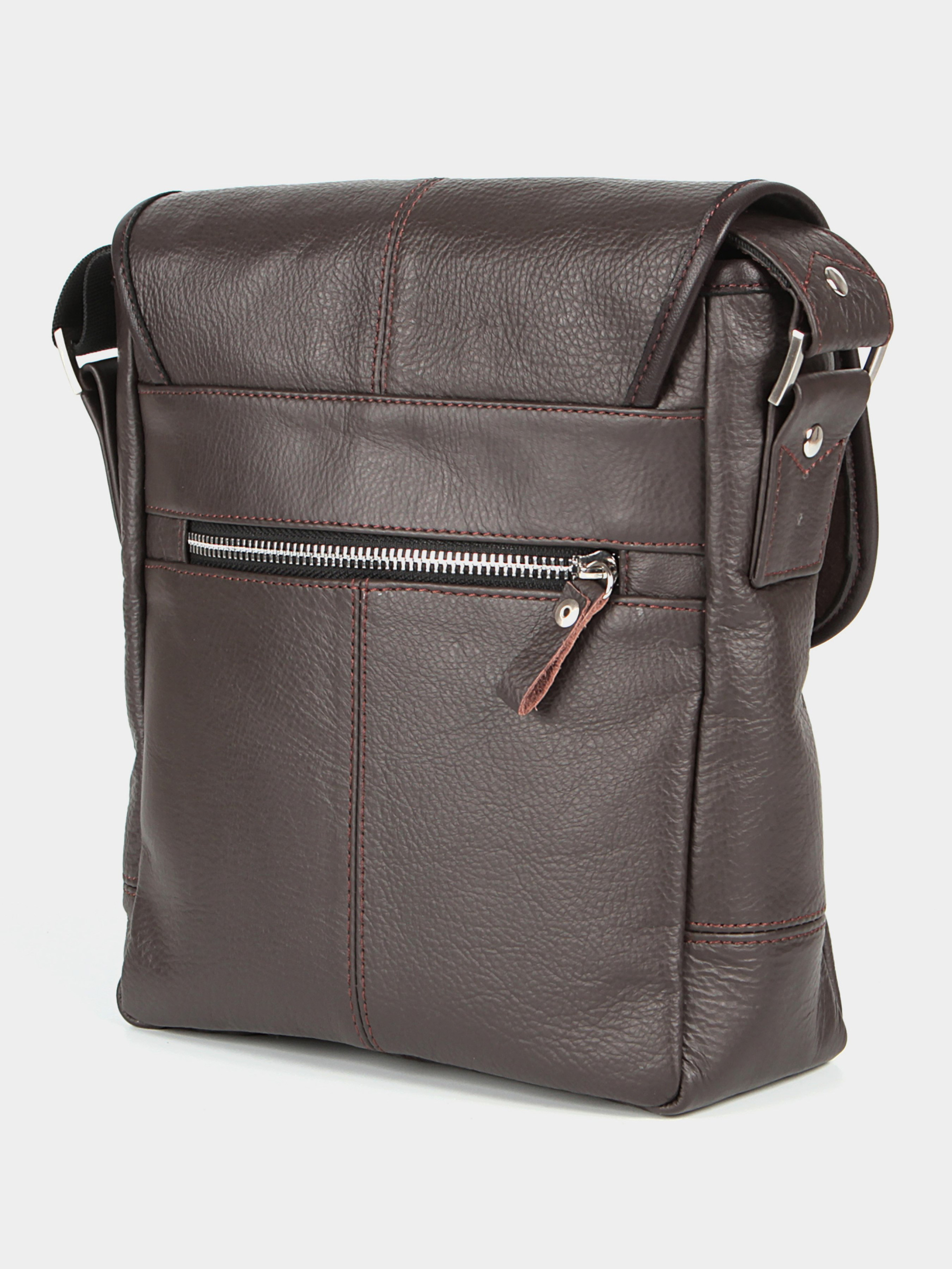 Материал: натуральная кожа; Цвет: коричневый; Размеры (ШхВхГ, см): 22х23х7; Страна производства: Украина. Элегантная коричневая сумка на каждый день непременно станет Вашим любимым аксессуаром за счет своей практичности, износостойкоти и стильного дизайна. Аксессуар выглядит элегантно и очень добротно. Особенности: - закрывается молнией и клапаном с магнитной кнопкой; - декоративная пряжка на клапане; - одно основное отделение с прорезным карманом на молнии и накладным кармашком; - с передней стороны под клапаном накладной карман; - задний карман на молнии; - текстильный регулируемый плечевой ремень; - подкладка из черной ткани. Благодаря высокопрочной натуральной коже, Вы будете наслаждаться этой сумкой не один сезон, каждый раз создавая с ней новые образы и поражаясь ее замечательному качеству.