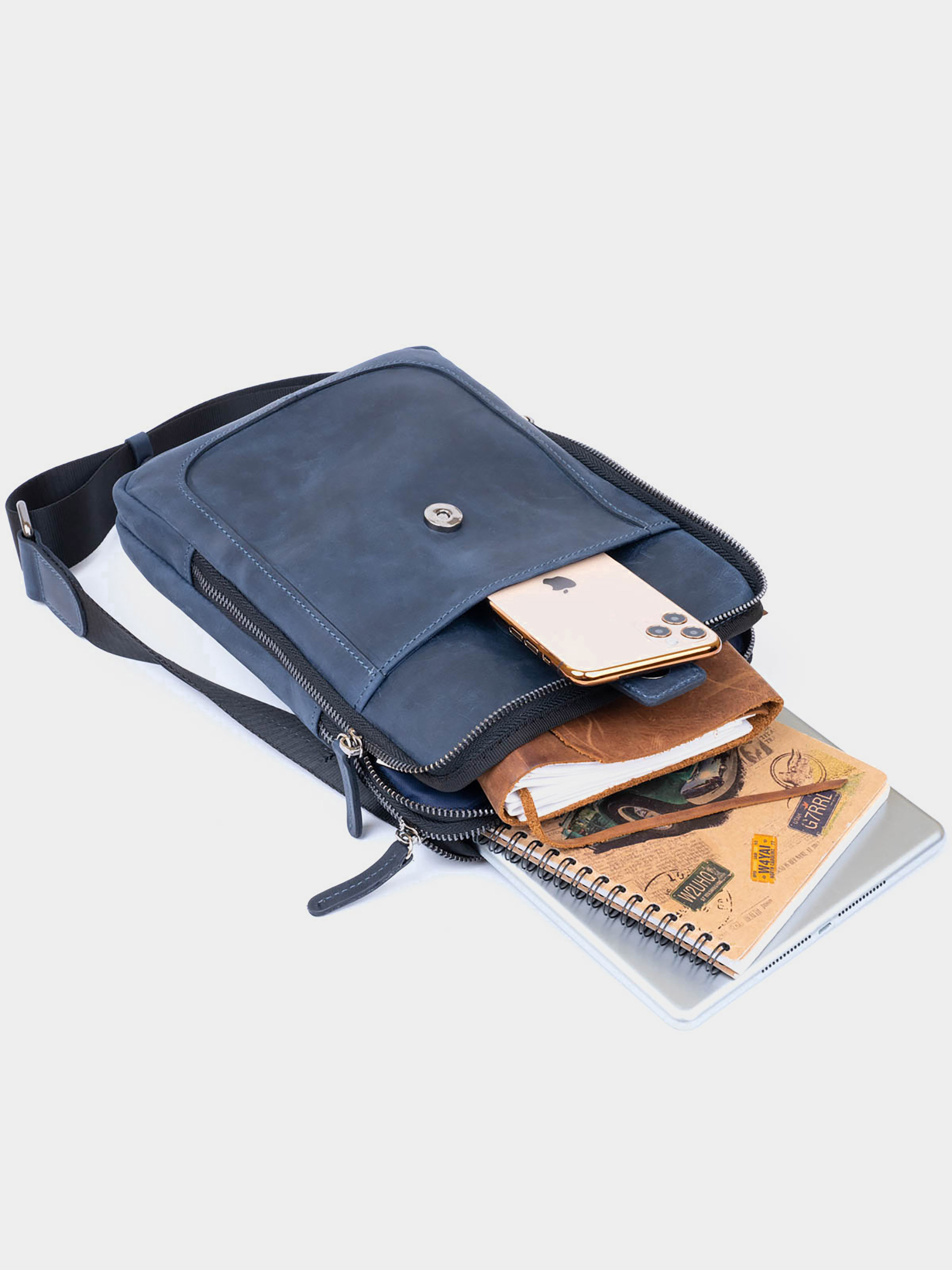 Цвет: синий; Материал: натуральная кожа высокого качества; Размер (ШхВхГ, см): 20х26,5х4,5. Страна производитель: Украина. Внутри: - два основных отделения на молниях; - в дальнем: уплотненный карман для планшета высотой 23 см на 18,5; - в ближнем: потайной карман на молнии и накладной карман открытого типа на ближней стенке; - накладной карман на лицевой стороне (закрывается на кожаный хлястик с кнопкой); - карман на молнии на тыльной стороне аксессуара; - несъемный текстильный ремешок. Практичная сумка в матовой винтажной коже на два отделения. Модель в оригинальном синем цвете. Для мужчин, которые всегда стремятся быть в тренде. Производство - Украина. Винтажная кожа имеет очень роскошный дизайн и пользуется особой популярностью за свой эффект старины. Со временем на данной коже появляются царапины и потертости, что смотрится очень винтажно. Мужской планшет - идеальный вариант сумки на каждый день по дизайну, функциональности и размерам. В дизайне модели нет никаких лишних деталей при этом сумка выглядит очень модно и стильно. Сумка выполнена с учетом всех модных тенденций. На лицевой стороне модели тиснение в виде логотипа бренда. Аксессуар дополнен текстильной несъемным ремешком. Кожаная сумка - лучший подарок для любого мужчины. Заказывайте данную модель как для себя, так и на подарок.