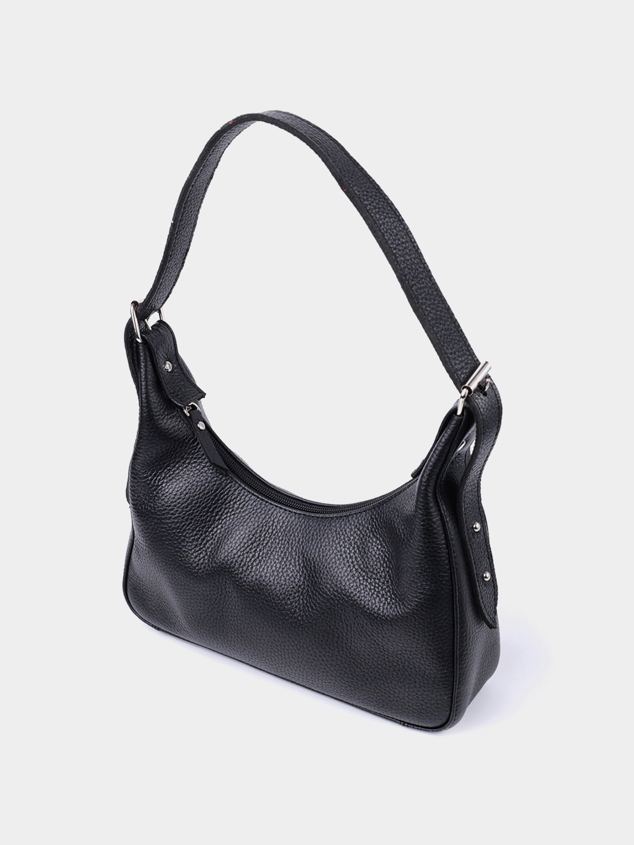 Материал: натуральная кожа; Цвет: черный; Размеры (ШхВхГ, см): 26х13х6,5 см; Страна производитель: Украина; Бренд: Shvigel. Описание: - закрывается на молнию; - внутри карман открытого типа; - регулируемая кожаная ручка. Стильная женская сумка для тех, кто любит красивый дизайн без лишних деталей. Это небольшая сумка с коротким ремнем, которую удобно носить под рукой, она обрела свою популярность благодаря своему универсальному дизайну и необычной форме. Такая сумка в модном мире имеет название - сумка багет. Цвет изделия классический черный, фактура зернистая. Материал исполнения натуральная мягкая кожа с высокими показателями качества. Отличный вариант сумки на каждый день, ведь она не только привлекательна снаружи, но и оснащена разумной системой внутренних отделений, что позволит продуманно и органично организовать пространство внутри. Модель изготовлена из качественных материалов и хорошо держит форму.