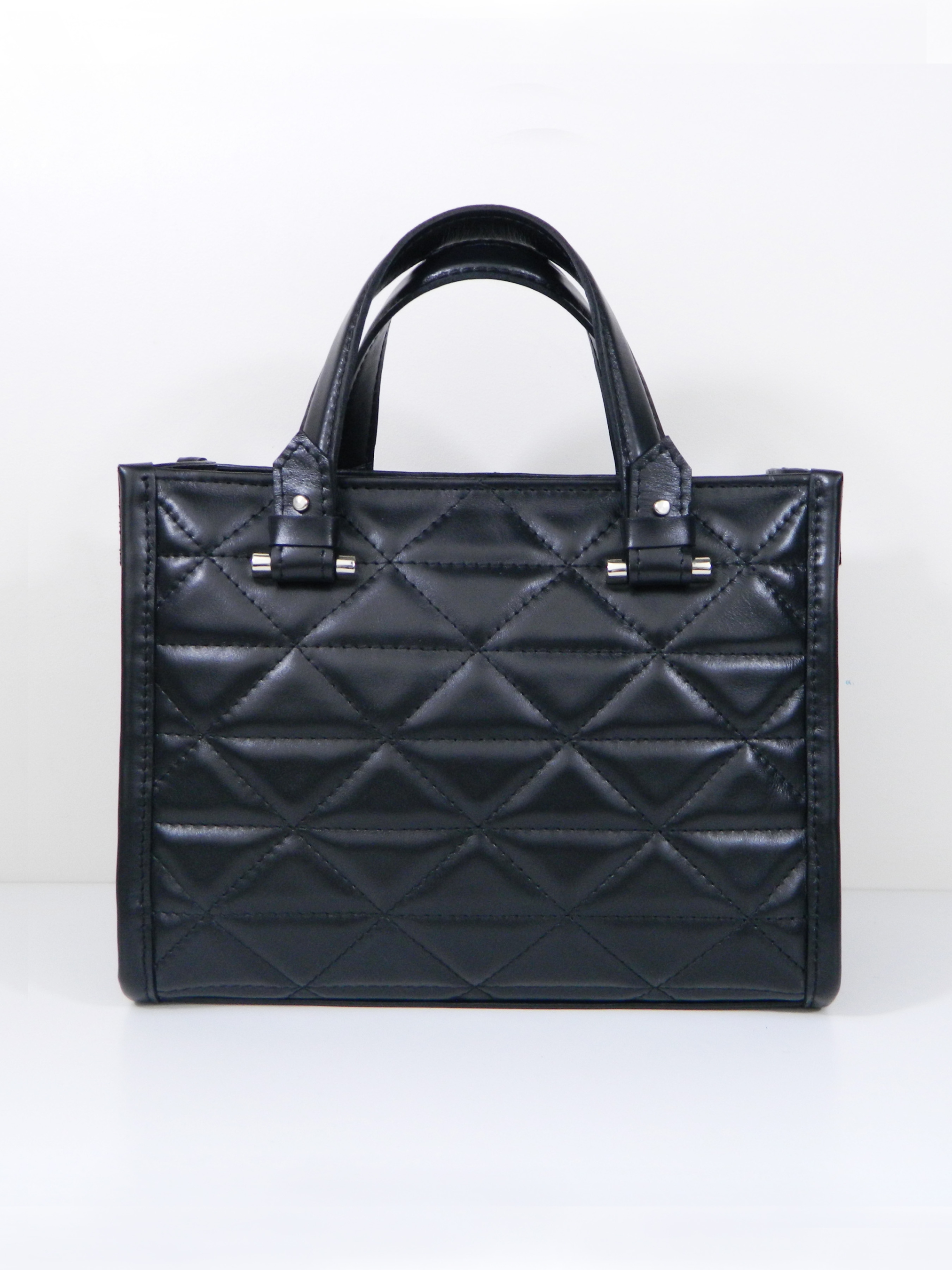 Сумка Cas – элегантная минималистичная кожаная сумка. Имеет две ручки, застегивается на молнию с треугольным подвесом. Внутри сумки подкладка, карман на молнии и открытый кожаный карман. Можно носить за ручки или через плечо на длинном узком ремне, который регулируется по длине. Пронизана современной привлекательностью и простегана геометрическим рисунком. Никелированная фурнитура, натуральная кожа, современный дизайн – идеальная сумка на каждый день. Такая модель может стать главным упором в вашем образе!