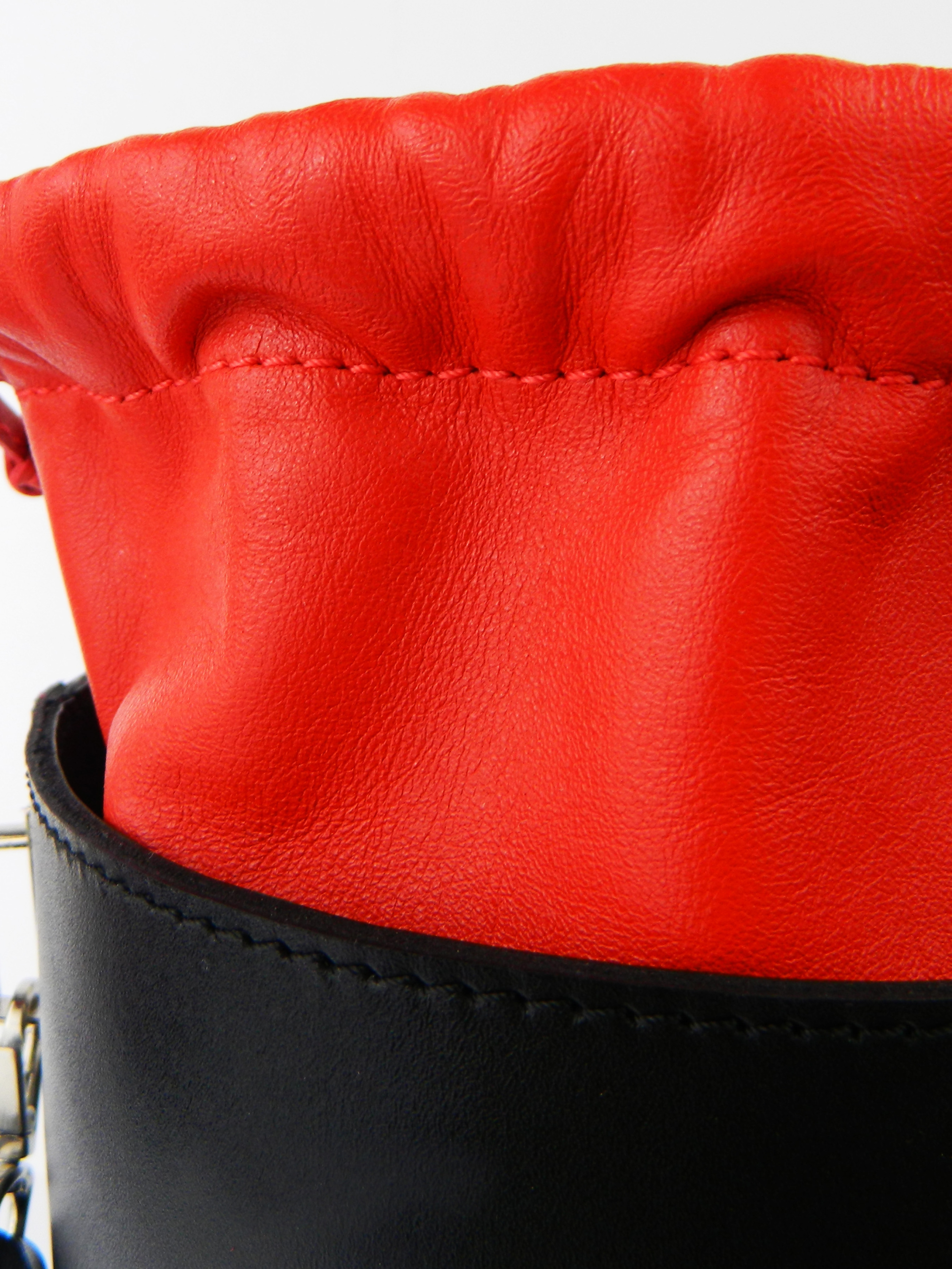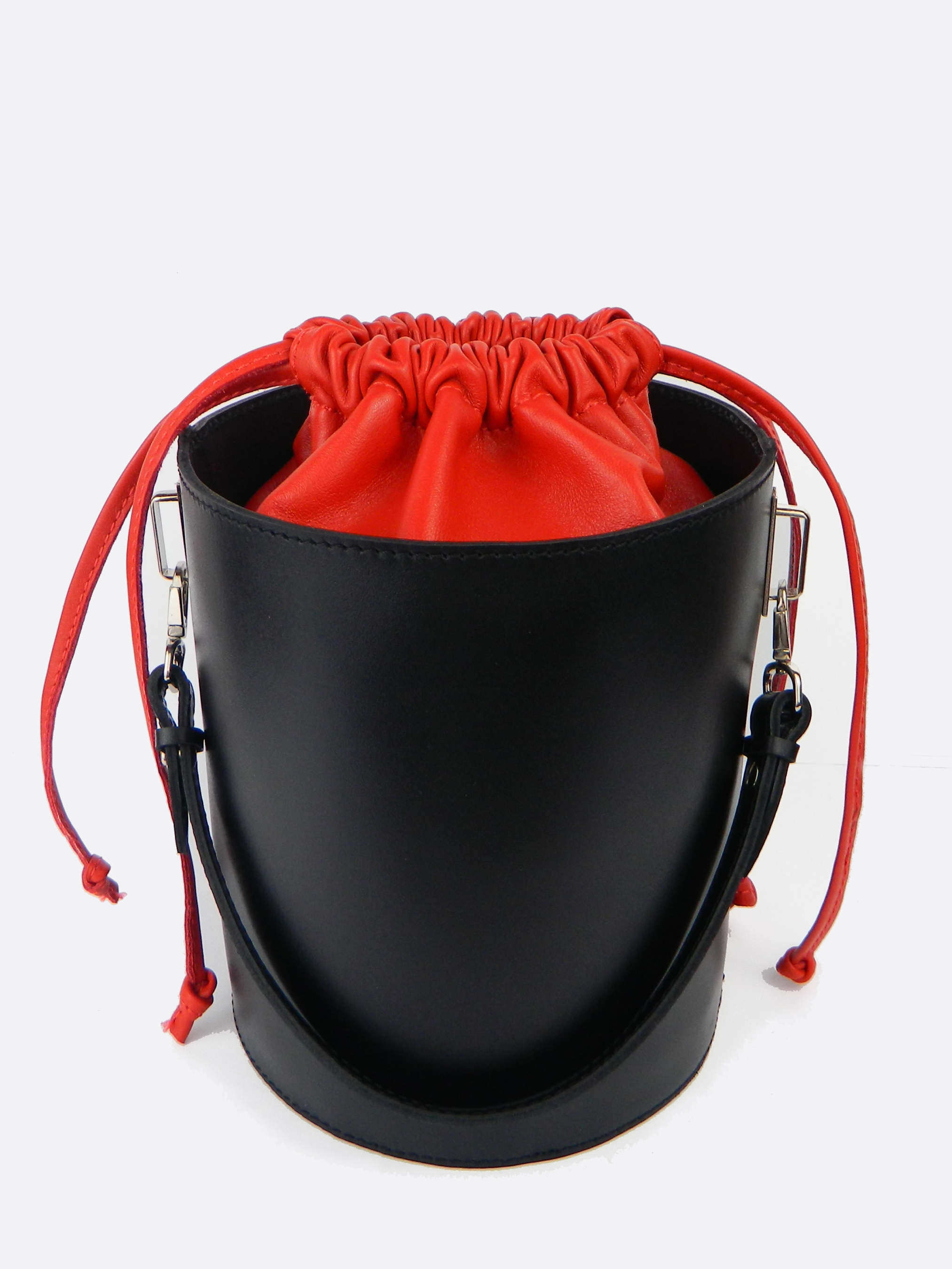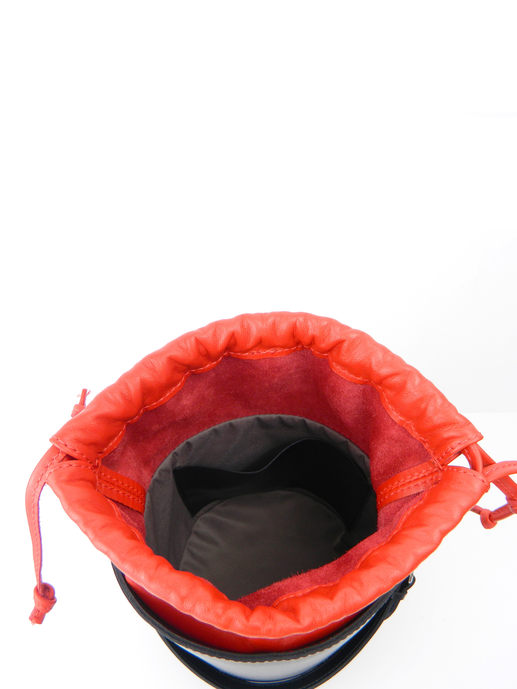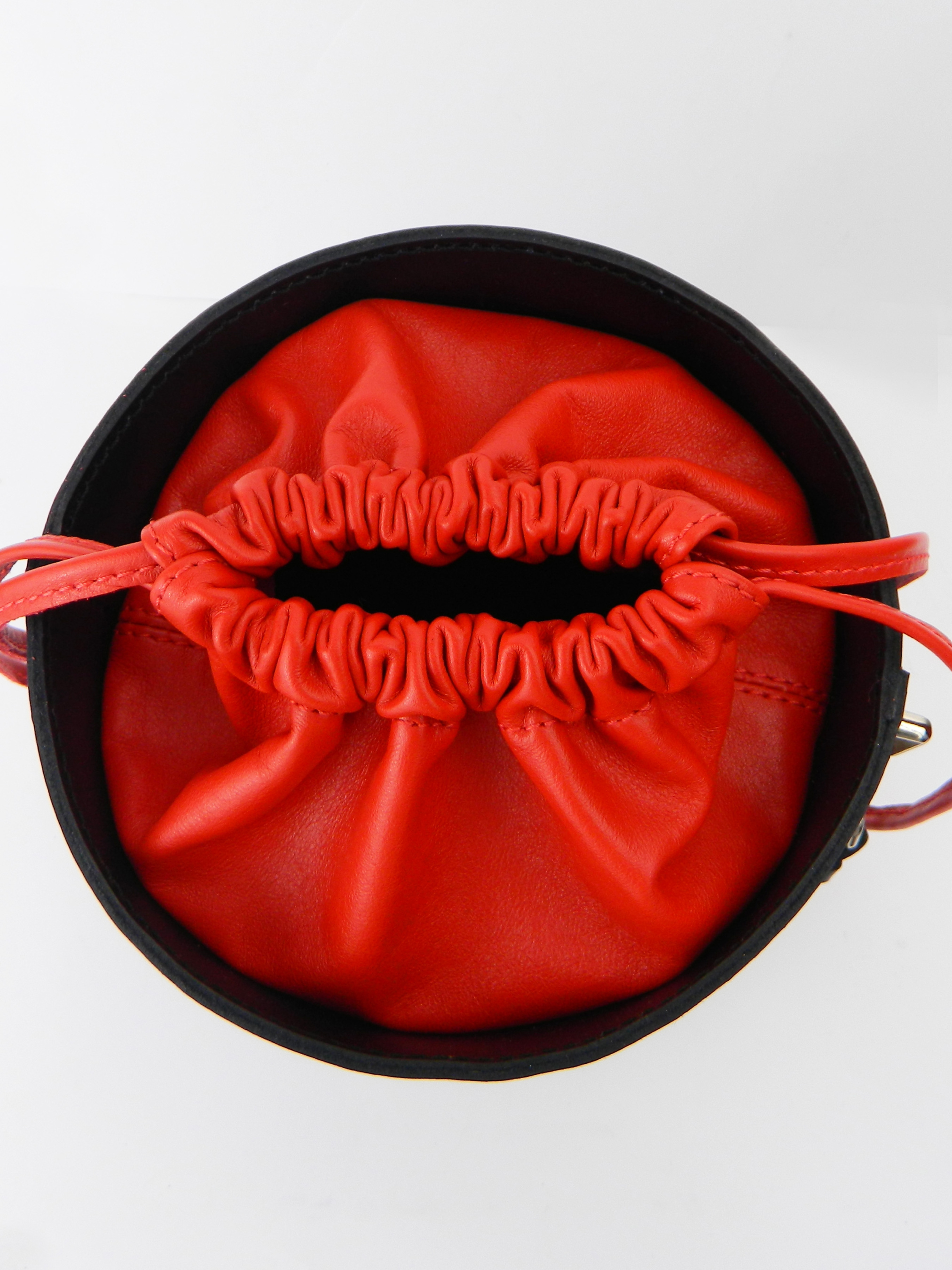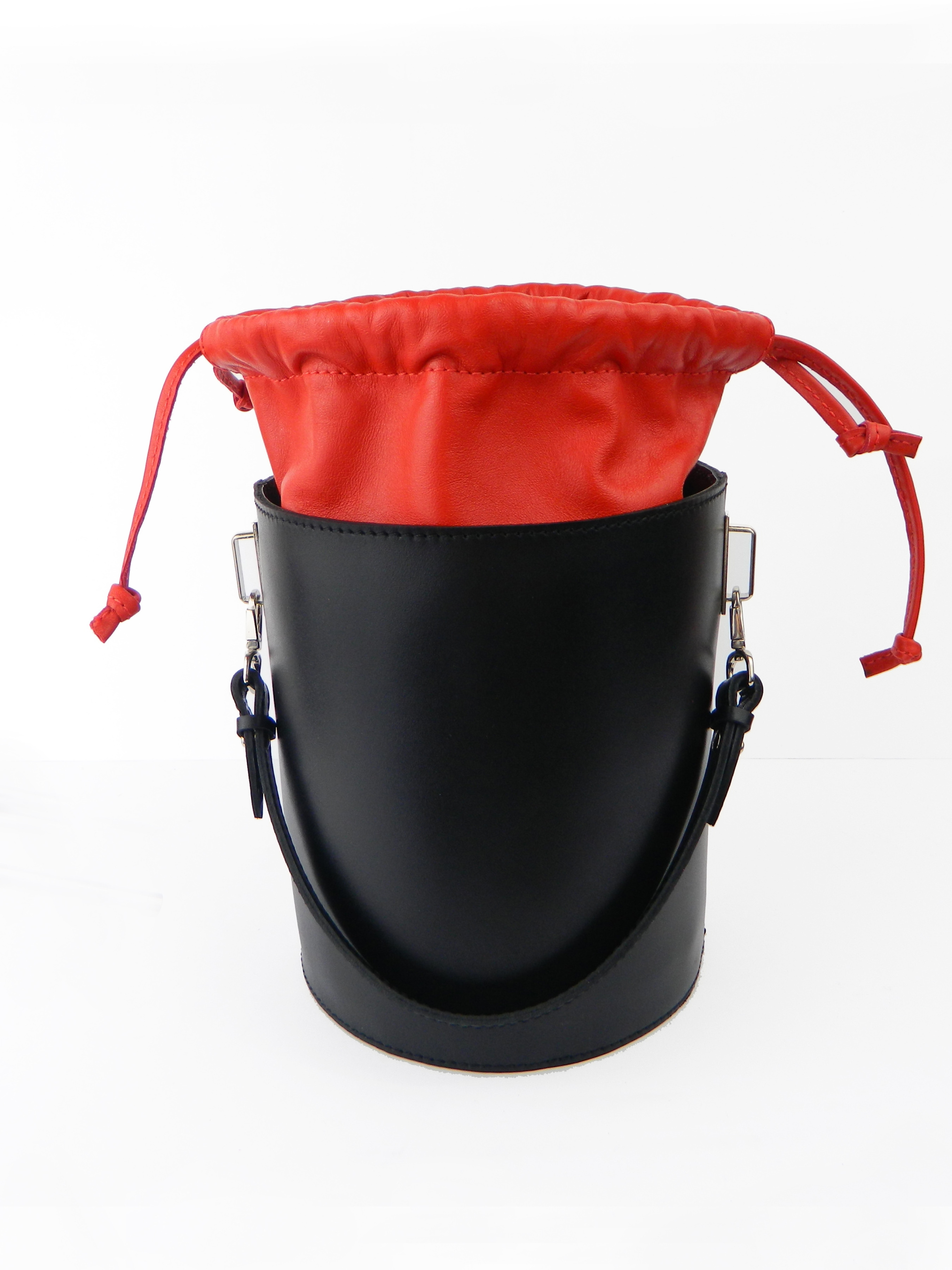 Модель Fiole – это сумка – цилиндр из натуральной кожи. Выполнена в сочетании двух цветов: черный и красный. Декорирована никелированием фурнитурой. Внутри сумки подкладка, два удобных кармана. В комплекте съемный ремешок, легко регулируемый по длине и отстегивающийся. Сумка закрывается кожаными шнурками-затяжками. Изделие упаковано в мешочек. Сумка Fiole вполне может стать самым ярким и акцентирующим элементом вашего образа. Модель разработана с учетом последних модных тенденций!
