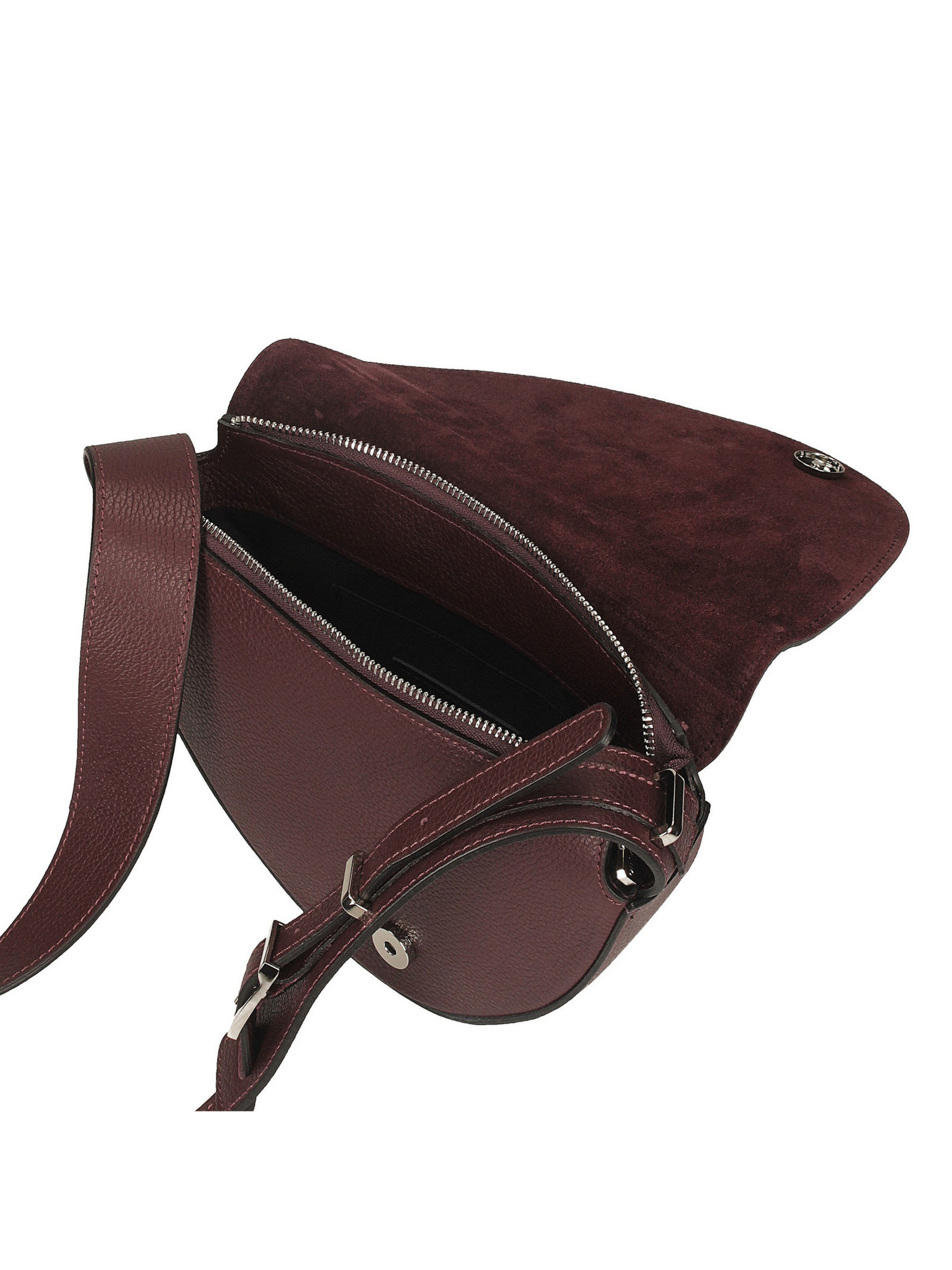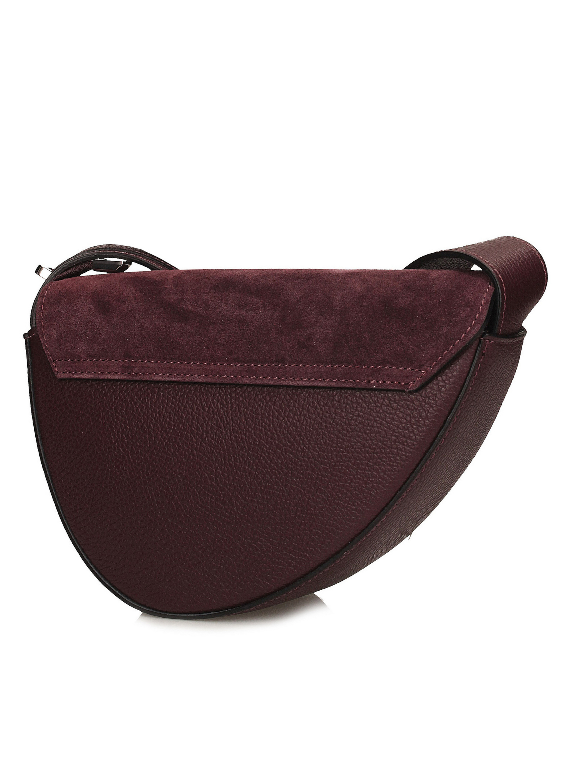 Сумка итальянского производителя Toscanio насыщенного бордового оттенка – это элегантная модель с уникальной, утонченной V-образной формой, сочетающая утонченный дизайн с практичностью. Клапан изготовлен из мягкой натуральной замши, придает нотку изысканности и прекрасно сочетается с корпусом из зернистой натуральной кожи. Она закрывается на серебристую молнию, дополнительно защищенную клапаном, обеспечивающую безопасное хранение. Сумка имеет одно отделение и практичный карман для мелких предметов. Длинный ремень из натуральной кожи (100 см) позволяет удобно носить сумку на плече или через плечо. Насыщенный бордовый оттенок придает этой сумке шикарный осенне-зимний вид, идеальный для классического и элегантного стиля. ВЫСОТА 16 см ШИРИНА 25 см Глубина 8 см ДЛИНА РЕМЕШКА 100 см