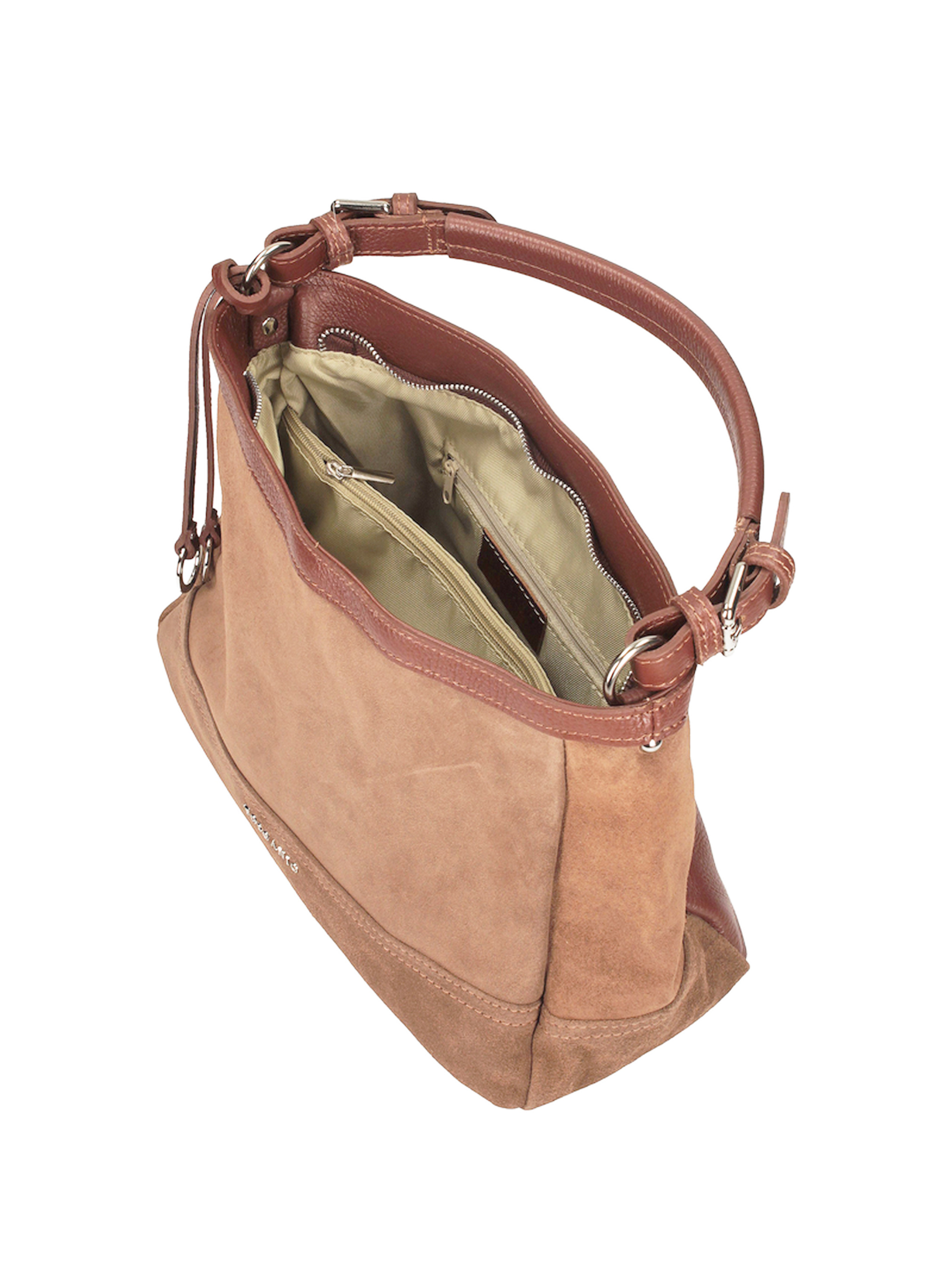 Светло-коричневая сумка итальянского бренда TOSCANIO – уникальная сумка-тоут, сочетающая классическую элегантность и практичность. Изготовленная из высококачественной натуральной замши, она имеет мягкую текстуру и изящную отделку, идеально подходящую как для ежедневного ношения, так и для более изысканных образов. Размеры сумки составляют 22 см х 32 см х 12 см, что обеспечивает достаточное место для всех ваших необходимых вещей. Внутри есть одно основное отделение и три кармана. Сумка закрывается на серебристую металлическую молнию, обеспечивающую безопасность ее содержимого. Она имеет длинный ремешок из натуральной кожи, что позволяет удобно носить ее как на плече, так и через плечо.