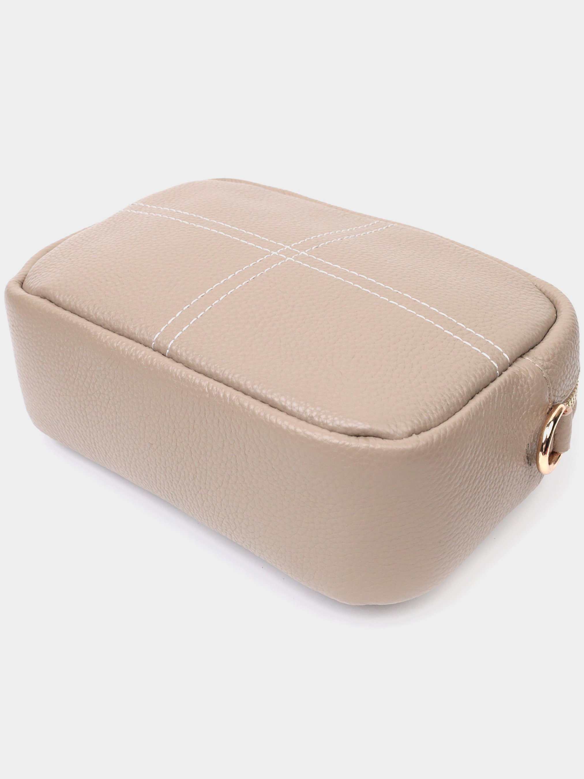 Цвет: бежевый; Материал: натуральная кожа; Размер (ШхВхГ, см): 20х13,5х7 см; Страна производитель: Китай. Бренд: Vintage. Особенности: - закрывается на молнию; - основноеотделения, внутри которого потайной карман на молнии и карман открытого типа; - карман на молнии, на тыльной стороне; - съемный текстильный ремень. Прямоугольная сумка на плечо из натуральной кожи с высоким показателем качества и износостойкости. На лицевой стороне сумки присутствует декоративная двойная крестообразная строчка, что придает изделию свою изюминку и неповторимый стиль. Аксессуар состоит из основного отделения, что закрывается на молнию, внутри которого находится потайной карман на молнии и карман открытого типа, а также внешнего кармана на молнии на тыльной стороне. Носить сумку можно на плече и через плечо, для этого имеется текстильный съемный ремень. В изделии использована качественная фурнитура цвета желтого золота. Универсальный вариант сумки как на вечер, так и в качестве сумочки на каждый день.