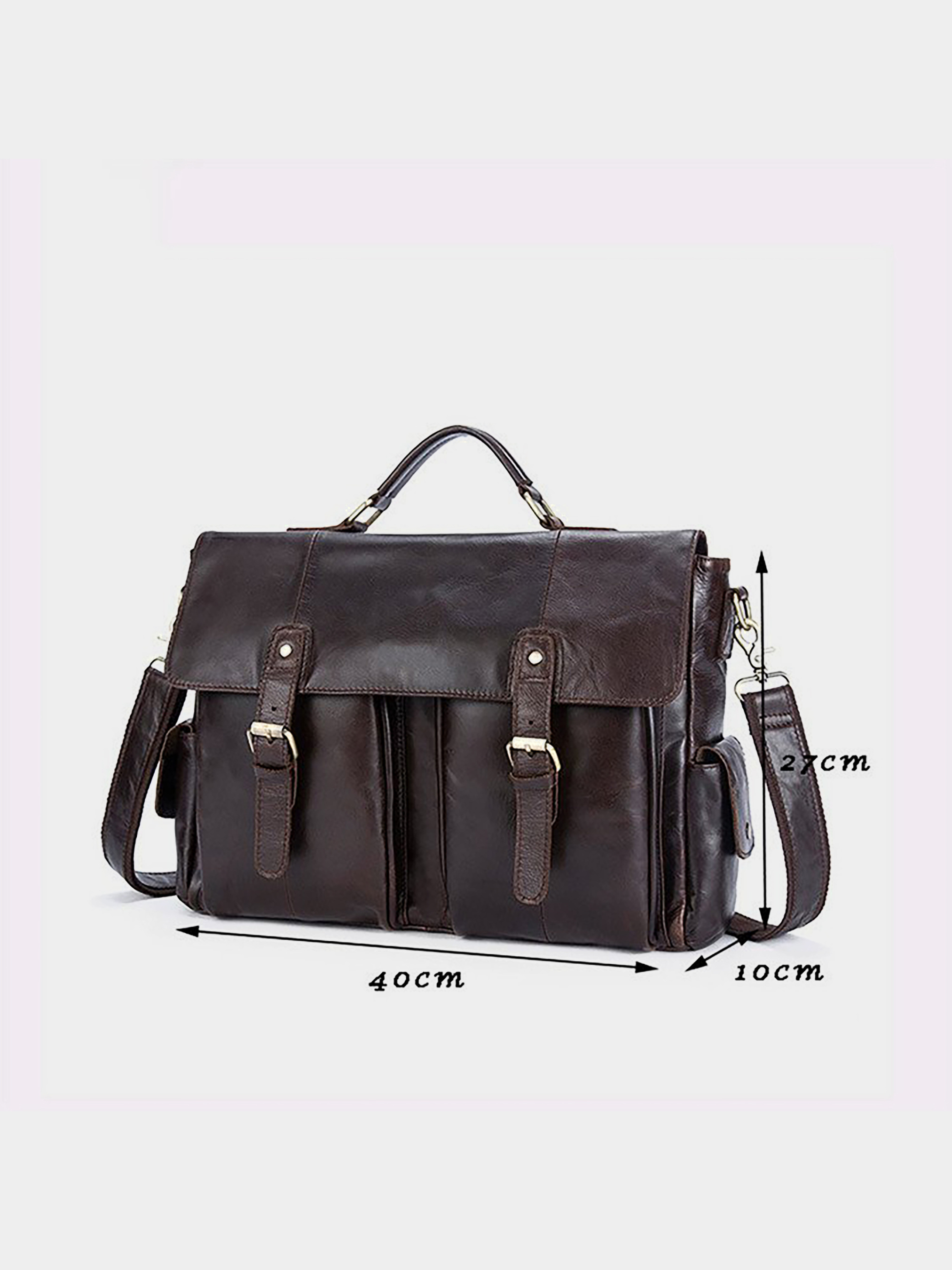Материал: натуральная кожа высокого качества. Цвет: коричневый. Размеры (ШхВхГ, см): 38х28х9 см. Страна производитель: Китай. Бренд: Vintage. Описание: - основное отделение на молнии и под клапаном; - потайной карман на молнии; - карман на липучке для ноутбука; - два открытых накладных кармана; - две петли для ручек; - 4 слота для карточек; - на тыльной стороне карман на молнии; - 2 кармана на лицевой стороне открытого типа; - 2 кармана по бокам под клапаном с магнитной кнопкой; - текстильный ремешок с кожаной вставкой на плечо (съемный); Солидная сумка - портфель для деловых мужчин. Подчеркнет ваш статус в обществе и чувство стиля. Модель акцентирует внимание на ваш деловой стиль. В сумке спокойно можно носить ноутбук и документы. Удобно носится как в руках, так и на плече с помощью текстильной ручки с кожаной вставкой. Светлый цвет аксессуара значительно выделит вас из толпы среди других мужчин. Будет отличным подарком для любого мужчины. Покупая такую сумку-портфель, вы будете удивлены, как она приятно носится. Аксессуар упакован в тканевой чехол.
