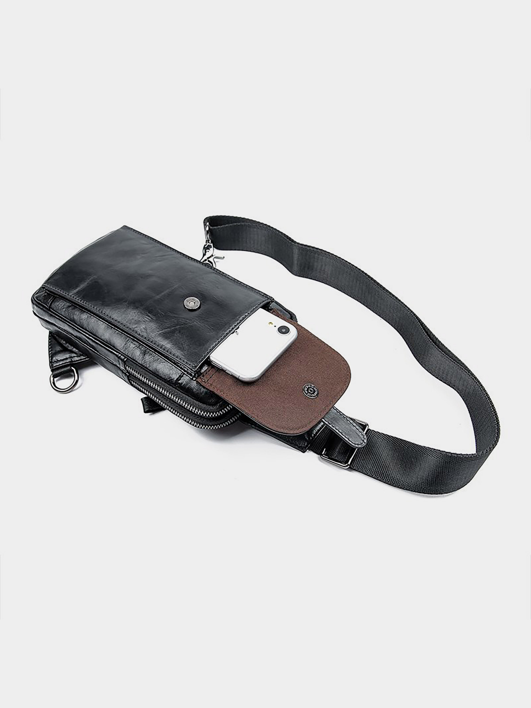 Цвет: черный; Материал: натуральная кожа; Размер (ШхВхГ, см): 14х24х3. Страна производитель: Китай. Бренд: Vintage. Особенности: - 2 основных отделения на молниях; - в дальнем отделении открытый карман; - карман на молнии на тыльной стороне; - карман с клапаном на магнитной кнопке на лицевой стороне; - регулируемая ручка на правое или левое плечо. Сумка из натуральной кожи приятной на ощупь. Модель имеет очень удобный функционал. По краям сумка прошита ровной черной строчкой в дизайн изделия. Сумка дополнена качественной фурнитурой, имеет текстильный ремешок. Такая сумка станет незаменимой на каждый день. Также с ней вам будет удобно в поездках, положив в нее все самое необходимое. Изделие упаковано в тканевый чехол. Будет идеальным подарком для близкого человека.