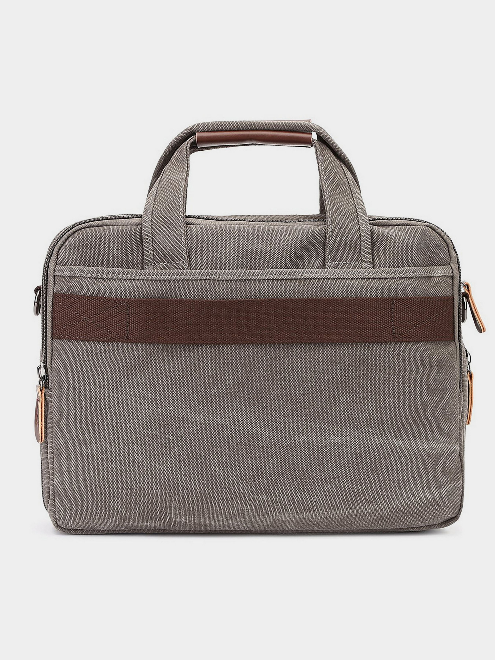 Материал: текстиль; Цвет: серый; Размеры (ШхВхГ, см): 40х28х5. Страна производитель: Китай. Особенности: - закрывается молниями; - два основных отделения, одно с уплотненным карманом на липучке для ноутбука и двумя накладными открытыми карманами, одно с потайным карманом на молнии; - с передней стороны накладной (внутри:3 петли для ручек и два открытых накладных кармашка) и прорезной карман на молнии и карман на липучке; - задний карман на молнии на тыльной стороне; - съемный регулируемый плечевой ремень; - ремешок на чемодан сзади; - подкладка из коричневой ткани. Универсальная сумка для ноутбука и других личных вещей. Модель можно сочетать как с деловым, так и с повседневным стилем одежды. Аксессуар изготовлен из плотной ткани – полиэстера. Модель легко стирается и является очень практичной в использовании. Вы можете носить сумку, как в руках, так и на плече с помощью съемного ремешка. Вы также сможете отрегулировать объем сумки с помощью молнии снизу. Если сумка полностью наполнена - вы можете расстегнуть молнию и появится место еще для нескольких вещей. Сумка будет отличным помощником для любого мужчины. Хороший вариант для ручной клади в самолет.