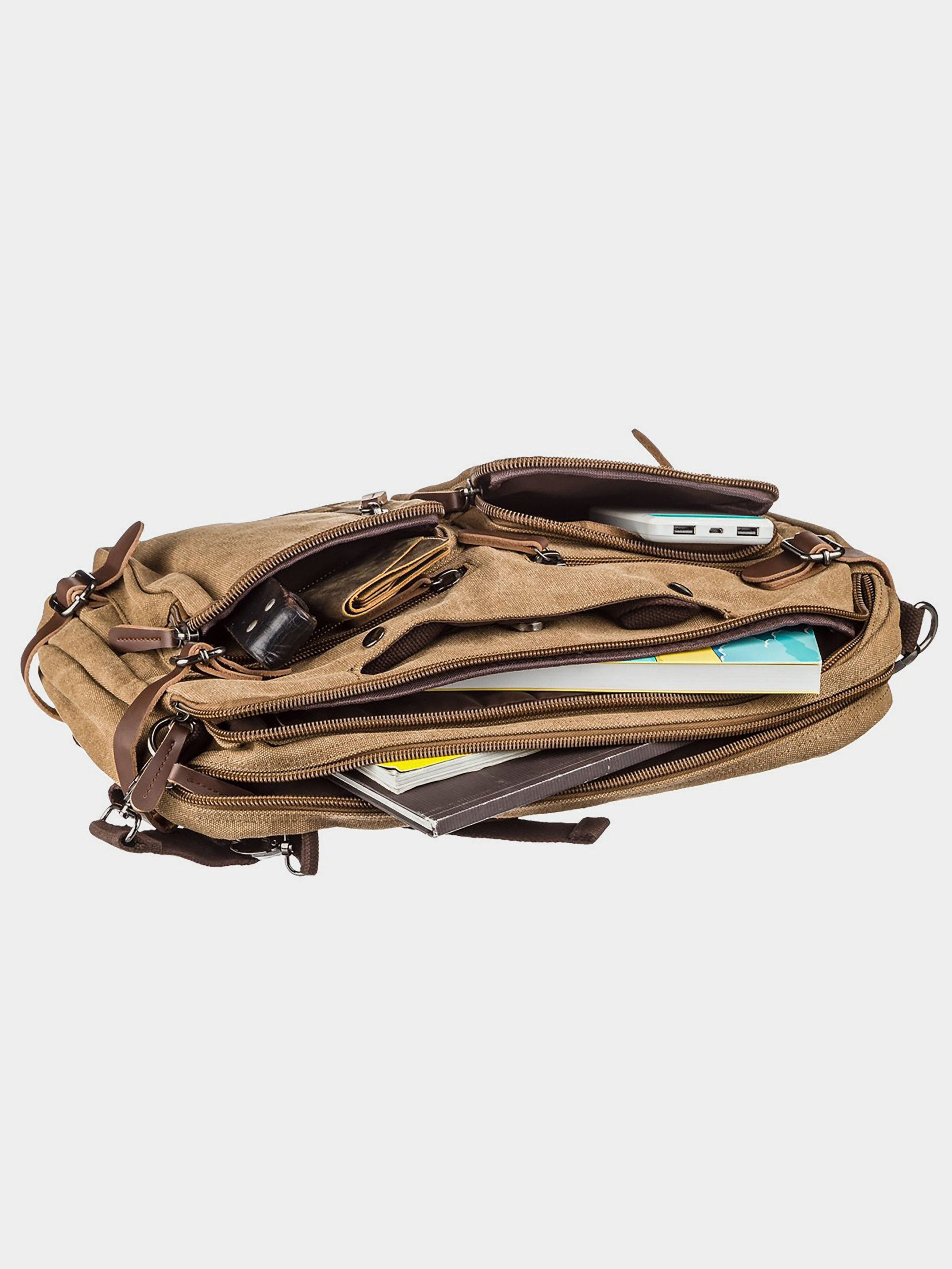 Материал: текстиль; Цвет: песочный; Размеры (ШхВхГ, см): 40х30х6. Страна производитель: Китай. Особенности: - закрывается молниями; - два основных отделения, одно с уплотненным карманом на липучке для ноутбука, одно с двумя накладными кармашками; - с передней стороны два накладных и четыре прорезных кармана; - кармашки на кнопках на тыльной и лицевой стороне, куда можно спрятатать ручки сумки; - задний карман на молнии, в который помещаются лямки для рюкзака; - три удобные ручки для переноса в руке; - съемный регулируемый плечевой ремень; - уплотненное дно; - подкладка из темной ткани. Легкая, текстильная сумка на два отделения. Модель можно носить как сумку, так и рюкзак. Аксессуар имеет боковые регуляторы и может расширяться в объем в зависимости от забитости сумки. Изделие имеет достаточный объем кармашков, и вы с легкостью вместите все свои личные вещи. Сумка выполнена из качественного и прочного текстиля. Изделие станет достойной заменой, если вы не хотите переплачивать за модели из натуральной кожи.