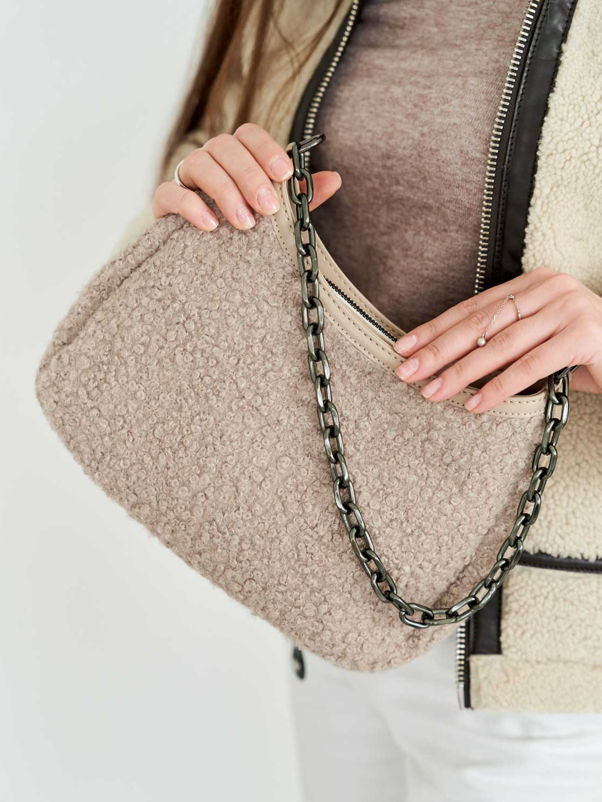 Жіноча сумка Агнес від українського виробника Welassie — це поєднання елегантності, сучасного дизайну та практичності. Модель виконана з м’якого штучного хутра в поєднанні з якісною екошкірою, що надає аксесуару вишуканого вигляду та приємної на дотик текстури. Основні характеристики: Розмір: середній — зручний формат для щоденного використання. Стиль: молодіжний — сучасний і трендовий дизайн. Матеріал: штучне хутро та екошкіра високої якості. Колір: бежевий — універсальний відтінок, який пасує до будь-якого образу. Жорсткість: м’яка — легко зберігає форму, залишаючись при цьому гнучкою. Тип застібки: блискавка — забезпечує надійне закривання. Відділення: одне основне відділення, всередині дві кишені (відкрита та на блискавці), зовні — додаткова кишенька для дрібниць. Плечовий ремінь: регульований, довжина 135 см — дозволяє зручно носити сумку на плечі або через плече. Як носити: Сумка Агнес чудово поєднується як із повсякденними луками, так і з більш елегантними аутфітами. Її можна носити з пальто, пуховиком чи плащем — хутряна фактура додає м’якості та шарму образу. Ідеальний вибір для осінньо-зимового сезону, коли хочеться виглядати стильно та почуватися комфортно.