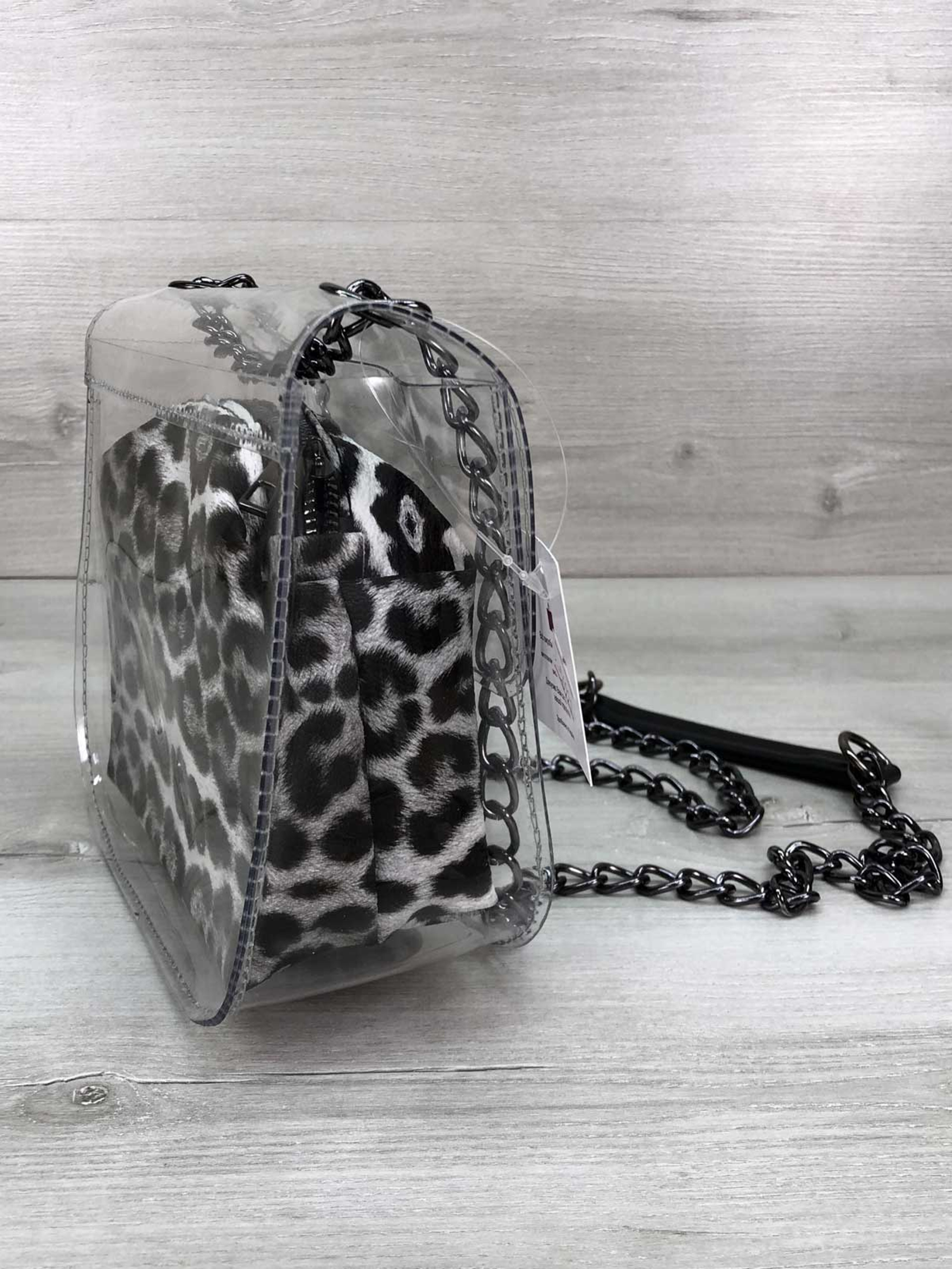 Сумка WeLassie модель sumka-selena-prozorij-kosmetichka-chorno-blij-leopard