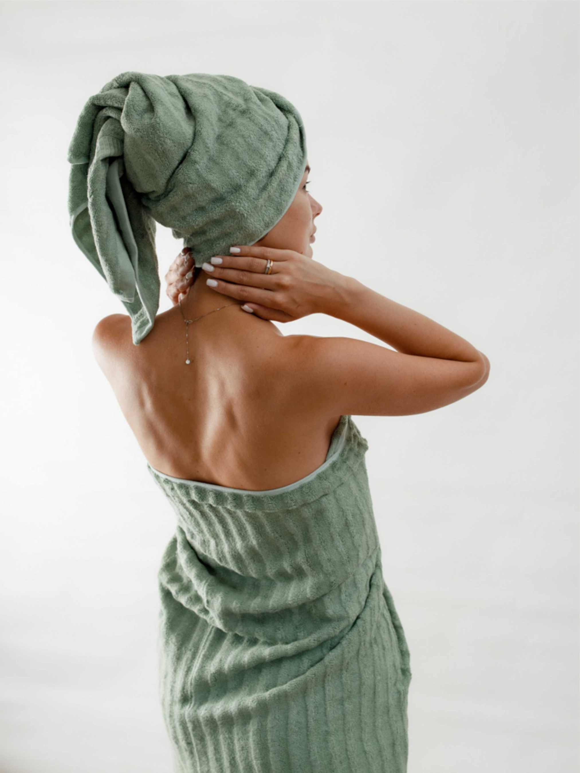 Набор 3 бамбук / хлопок полотенец для ванной, отелей, SPA, саун зеленый Lovely Svi модель 701404