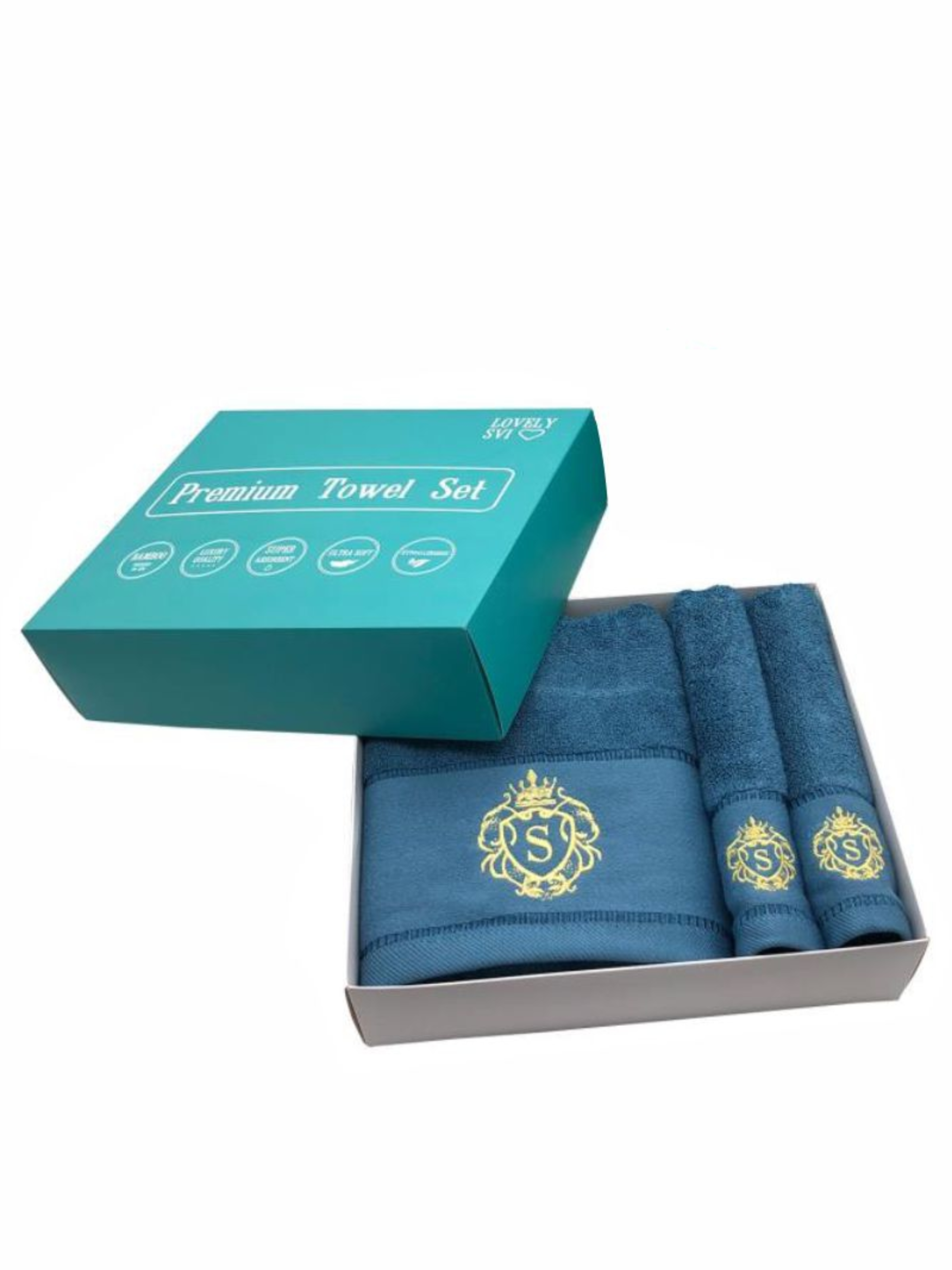 Lovely Svi Набор 3 бамбук / хлопок полотенец в подарочной коробке Изумруд